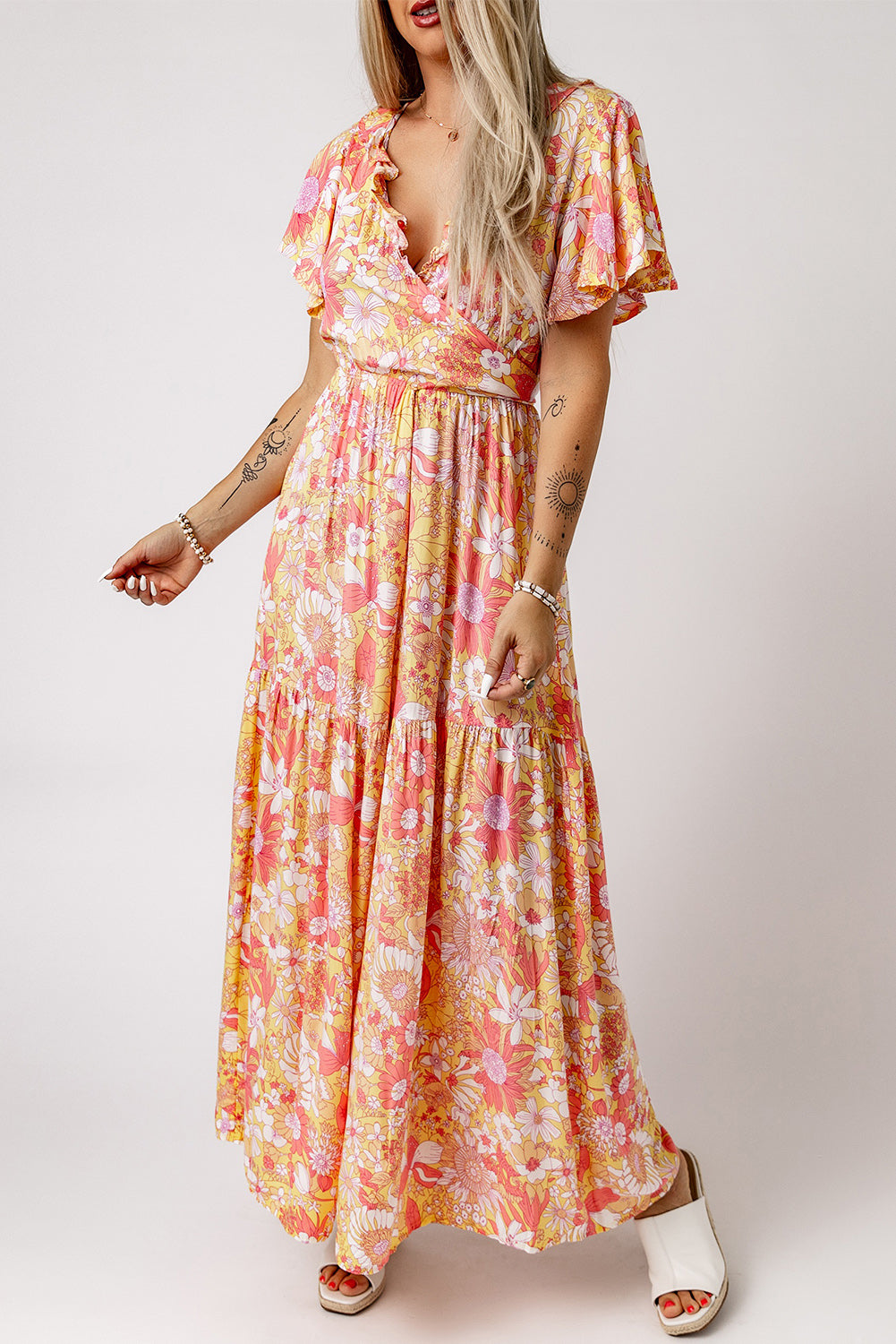 �span style="font-size:1em;">Floral print jumpsuit is very elegant. chicand eye-catching