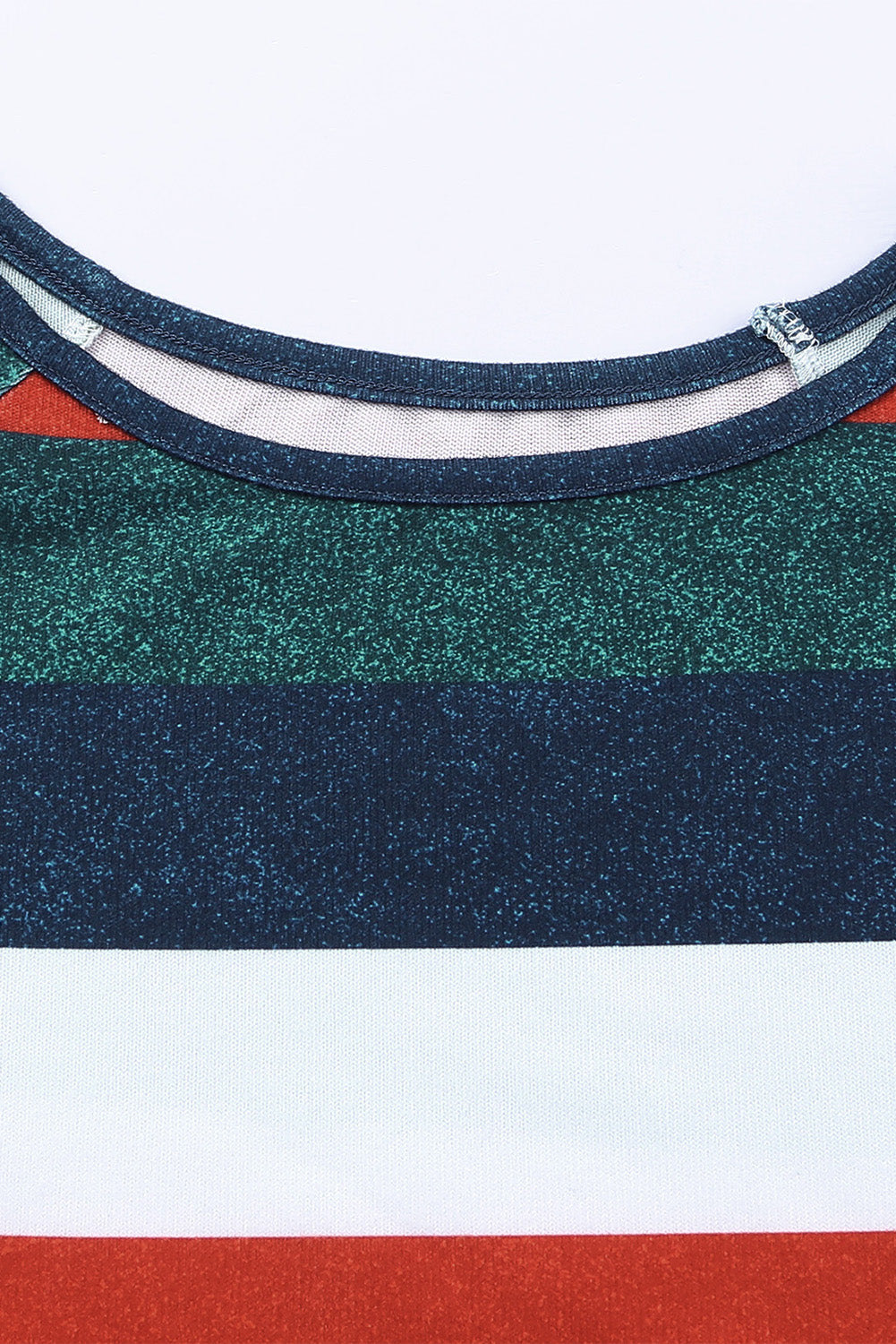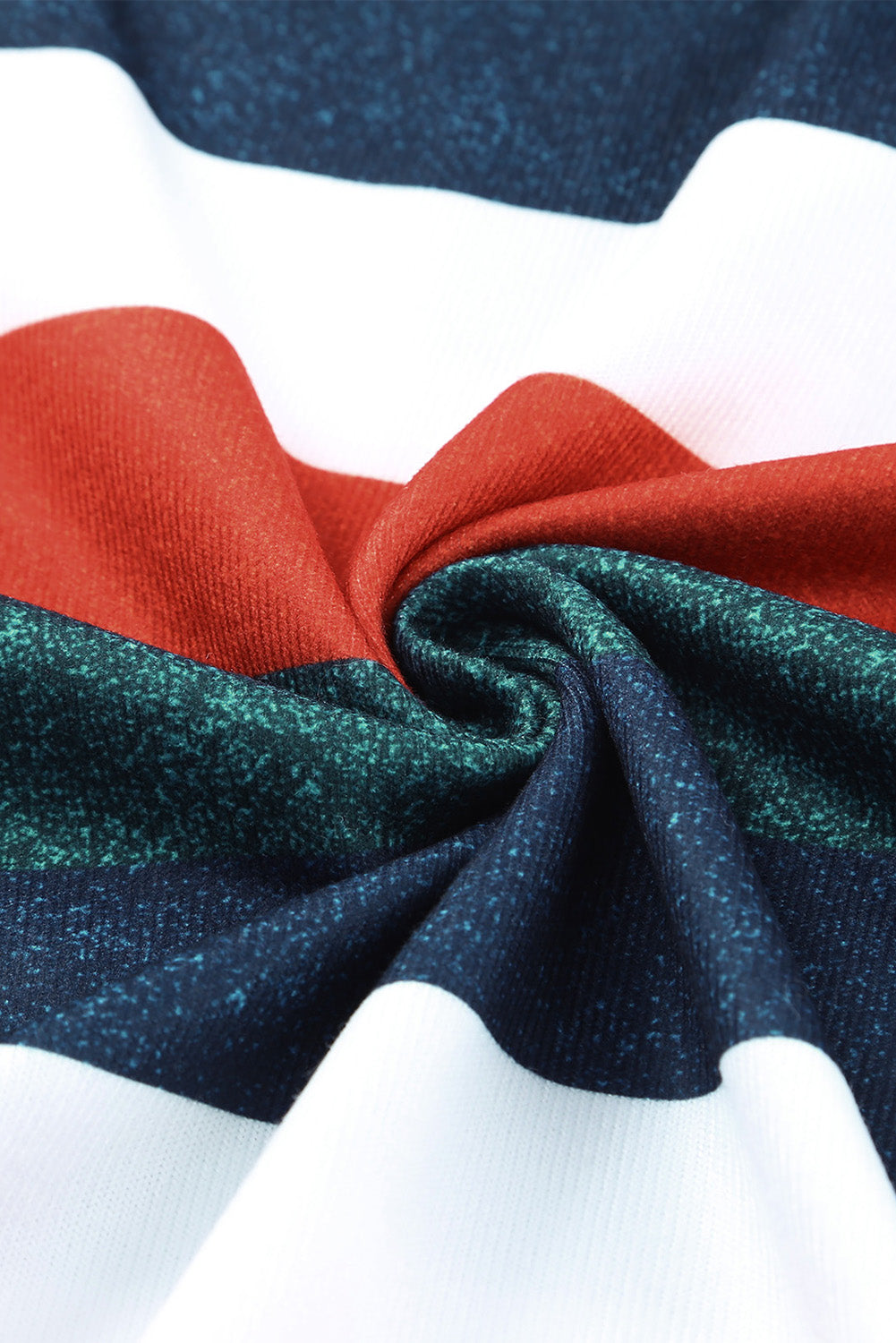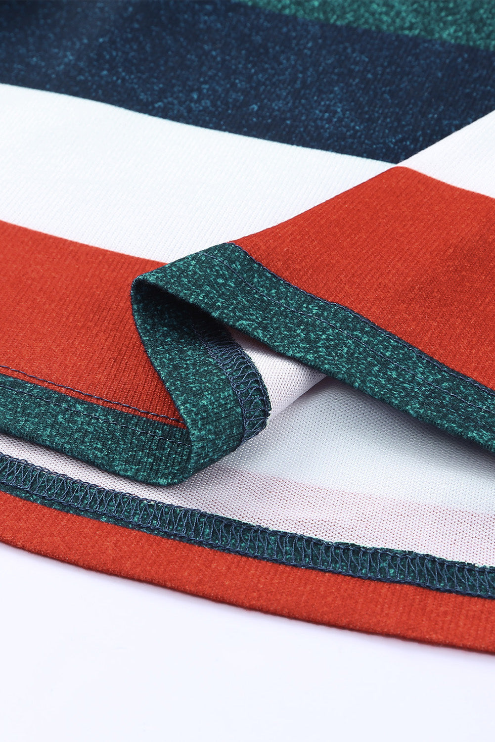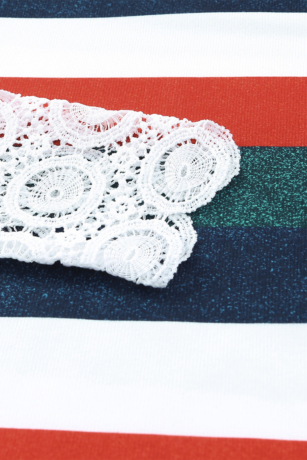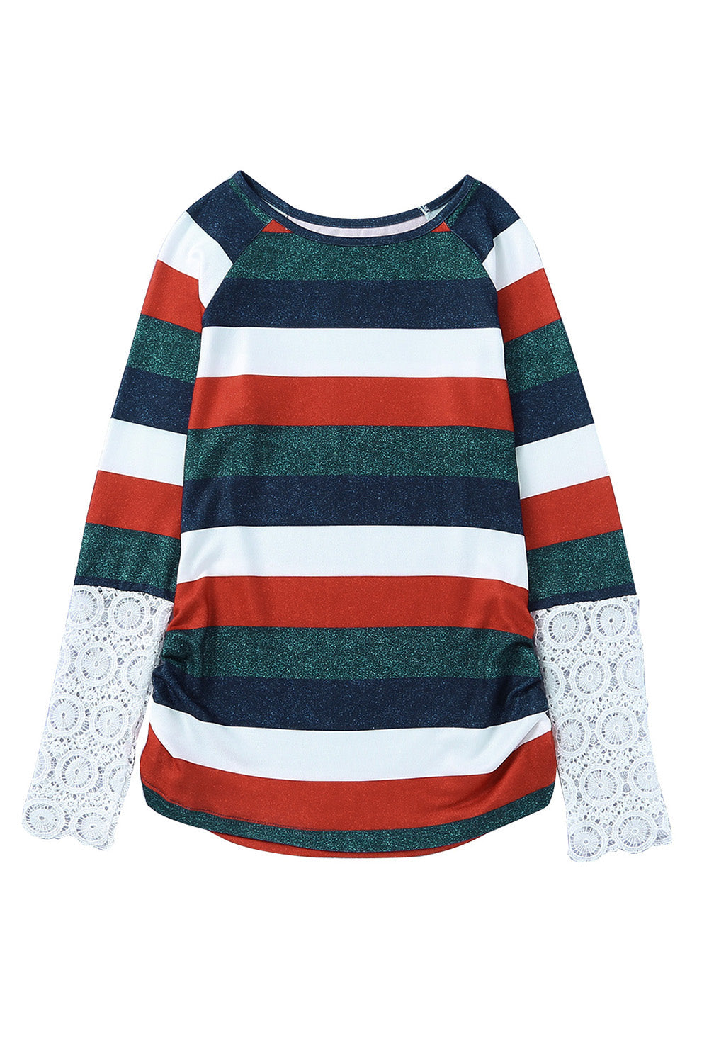 Orange Green Striped Lace Splicing Long Sleeve Top
