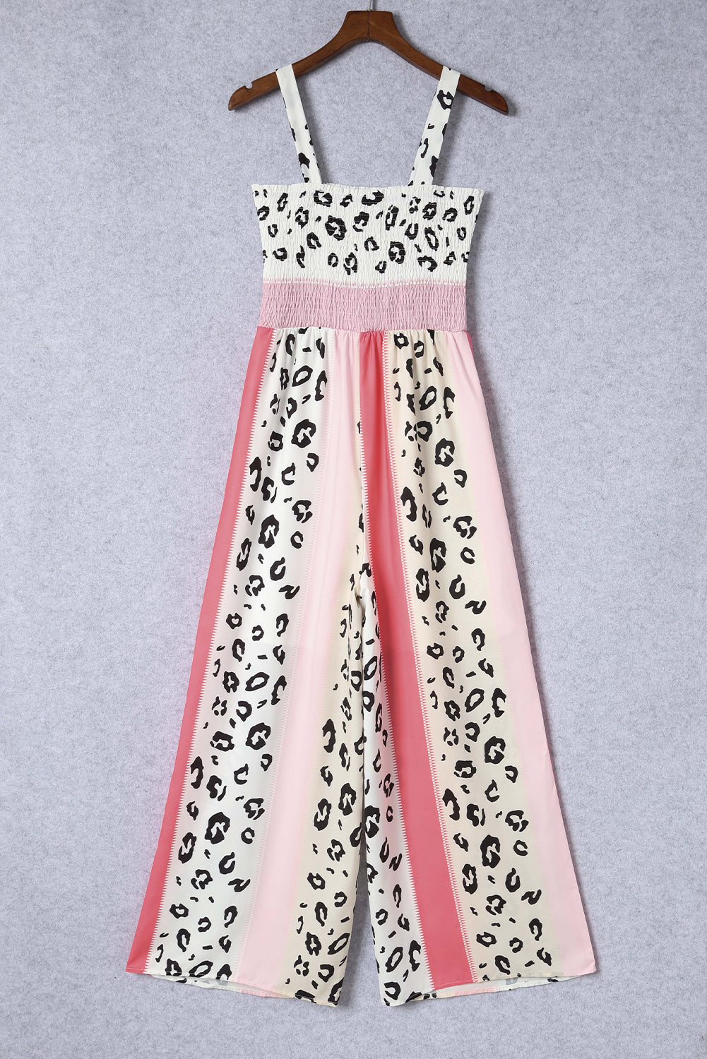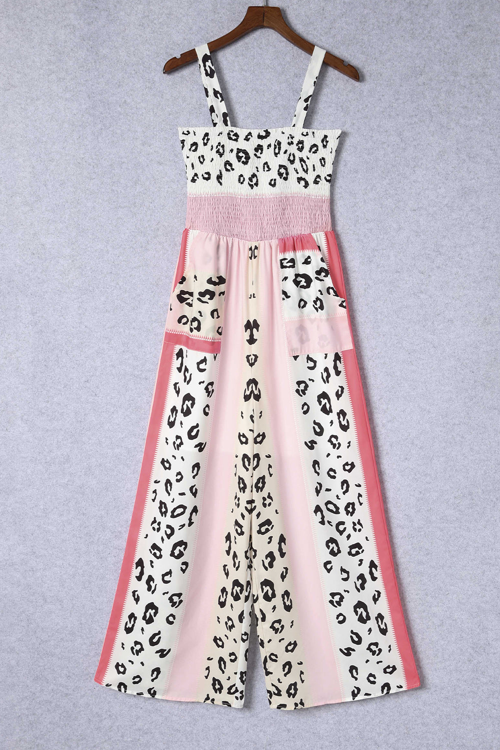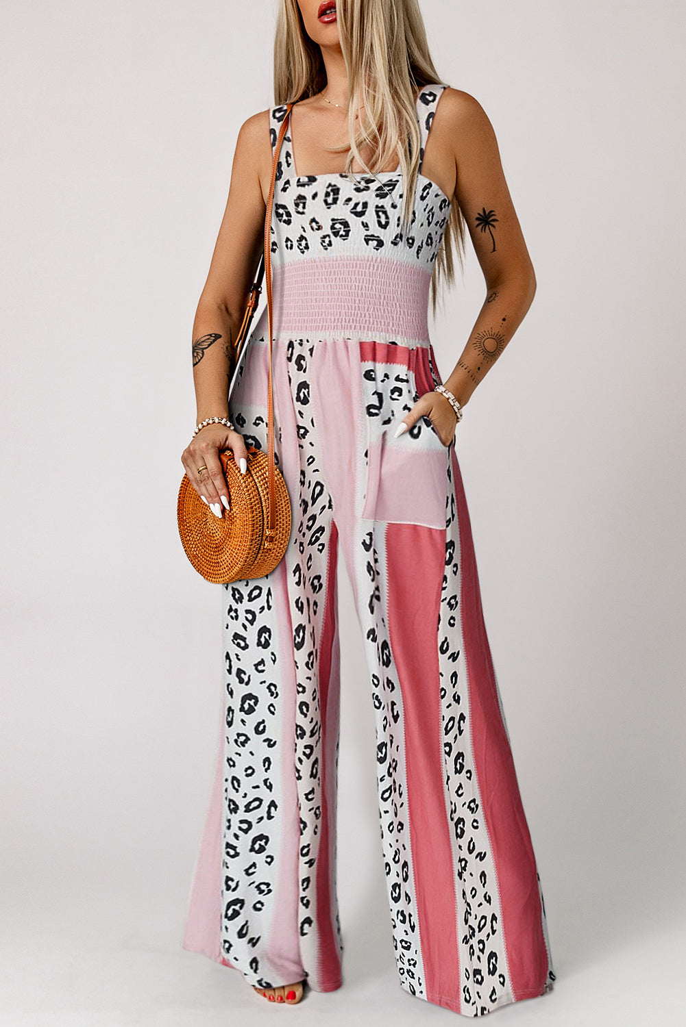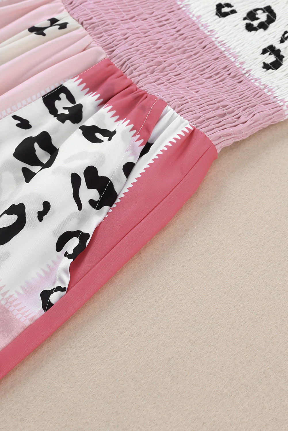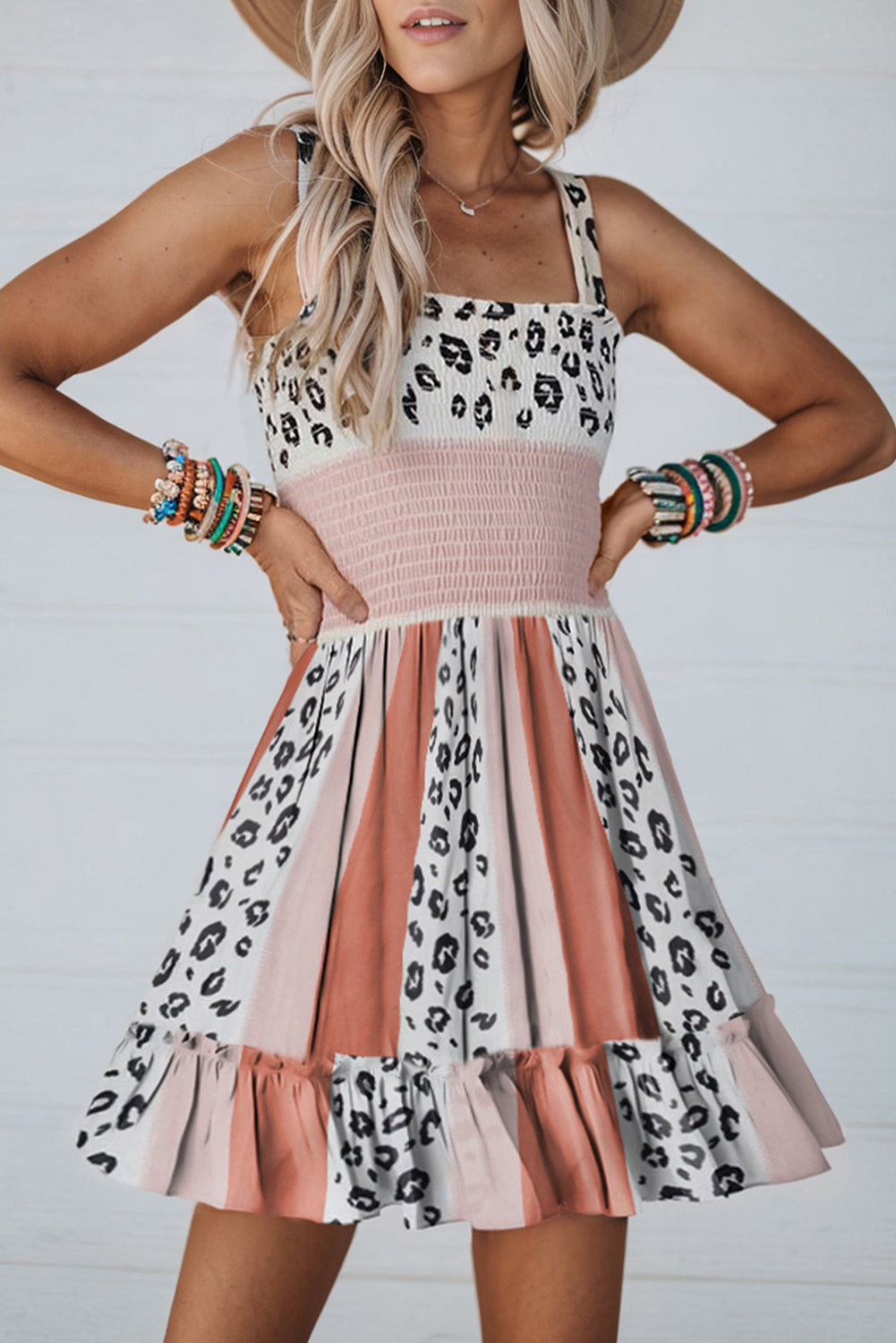 Orange Leopard Color Block Sleeveless Smocked Fit Flare Dress
