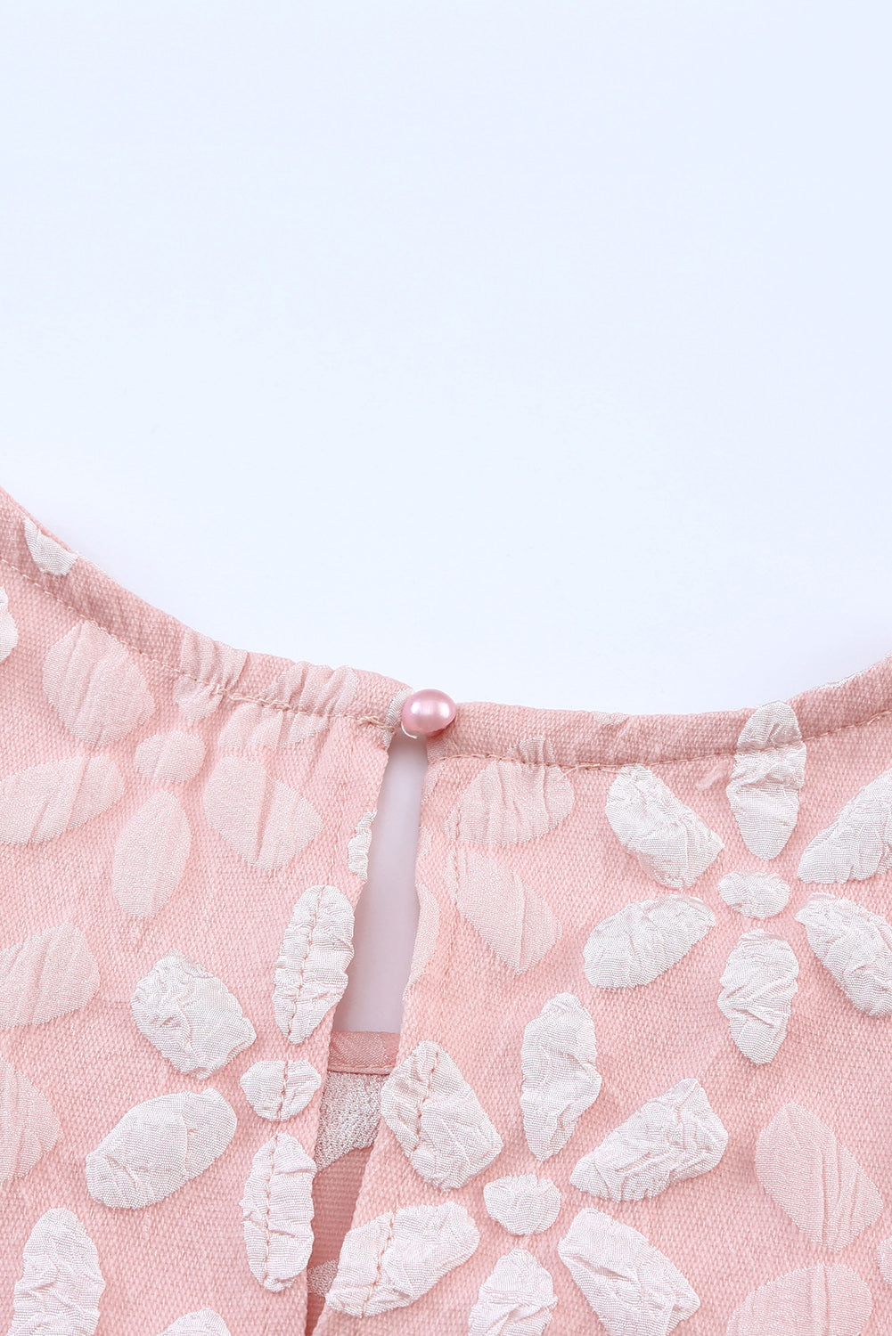 Pink Floral Jacquard Sleeveless Mini Dress with Waist Tie
