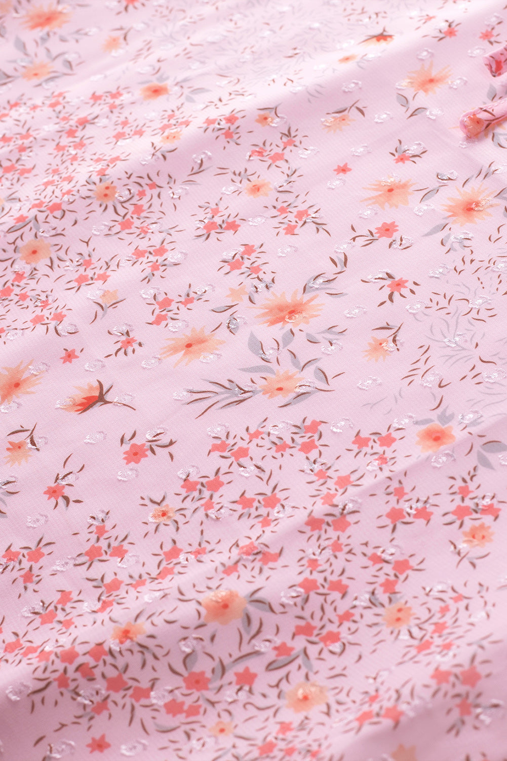 Pink Floral Print Drawstring Frill Trim Sleeveless Top