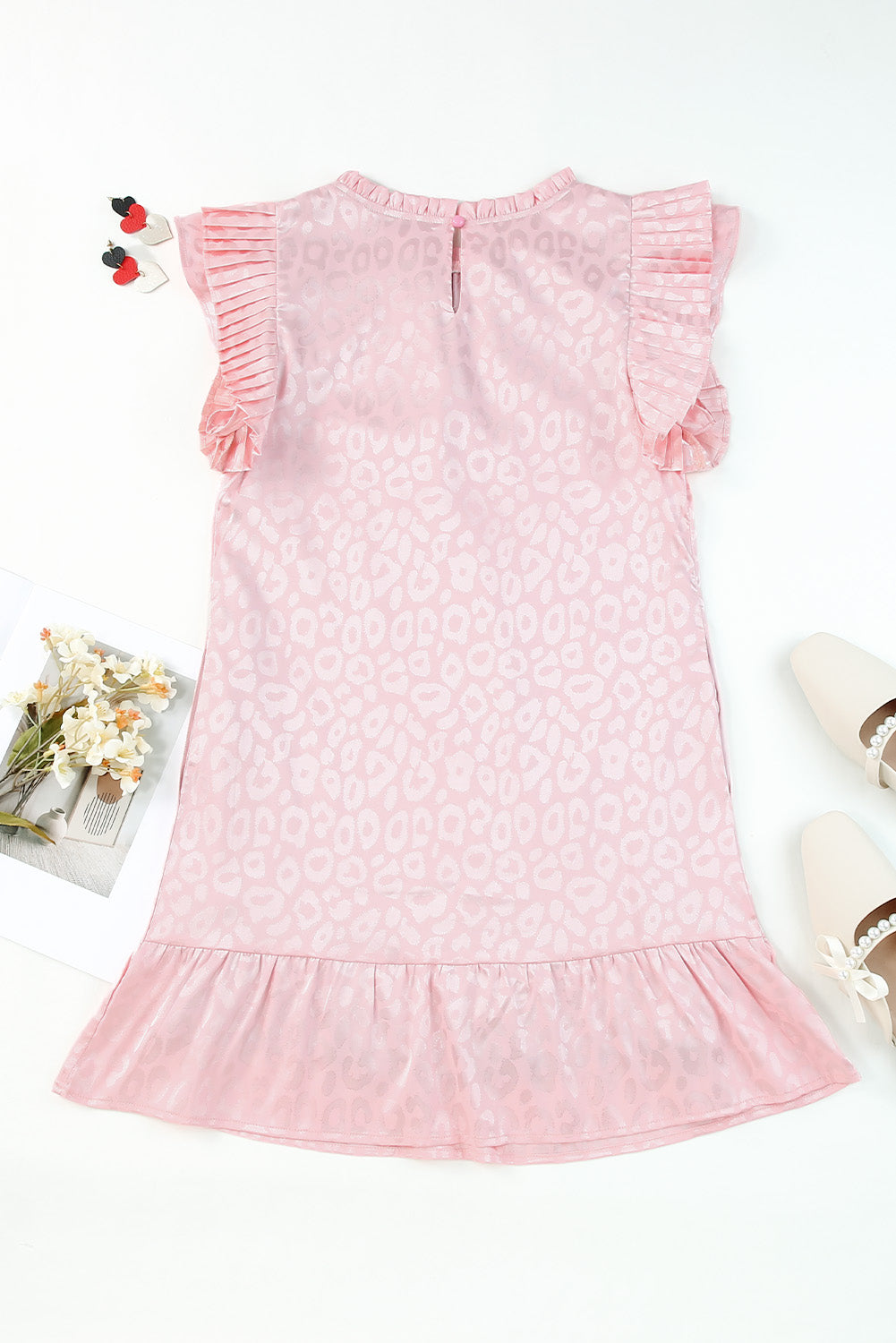 Pink Leopard Satin Ruffled Mini Dress