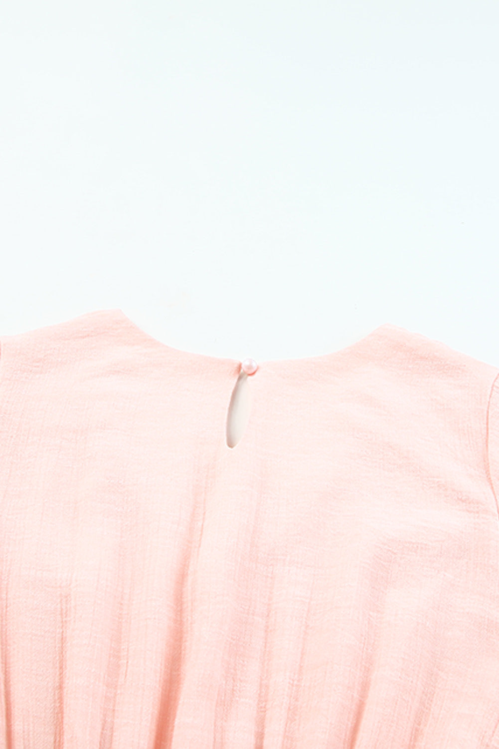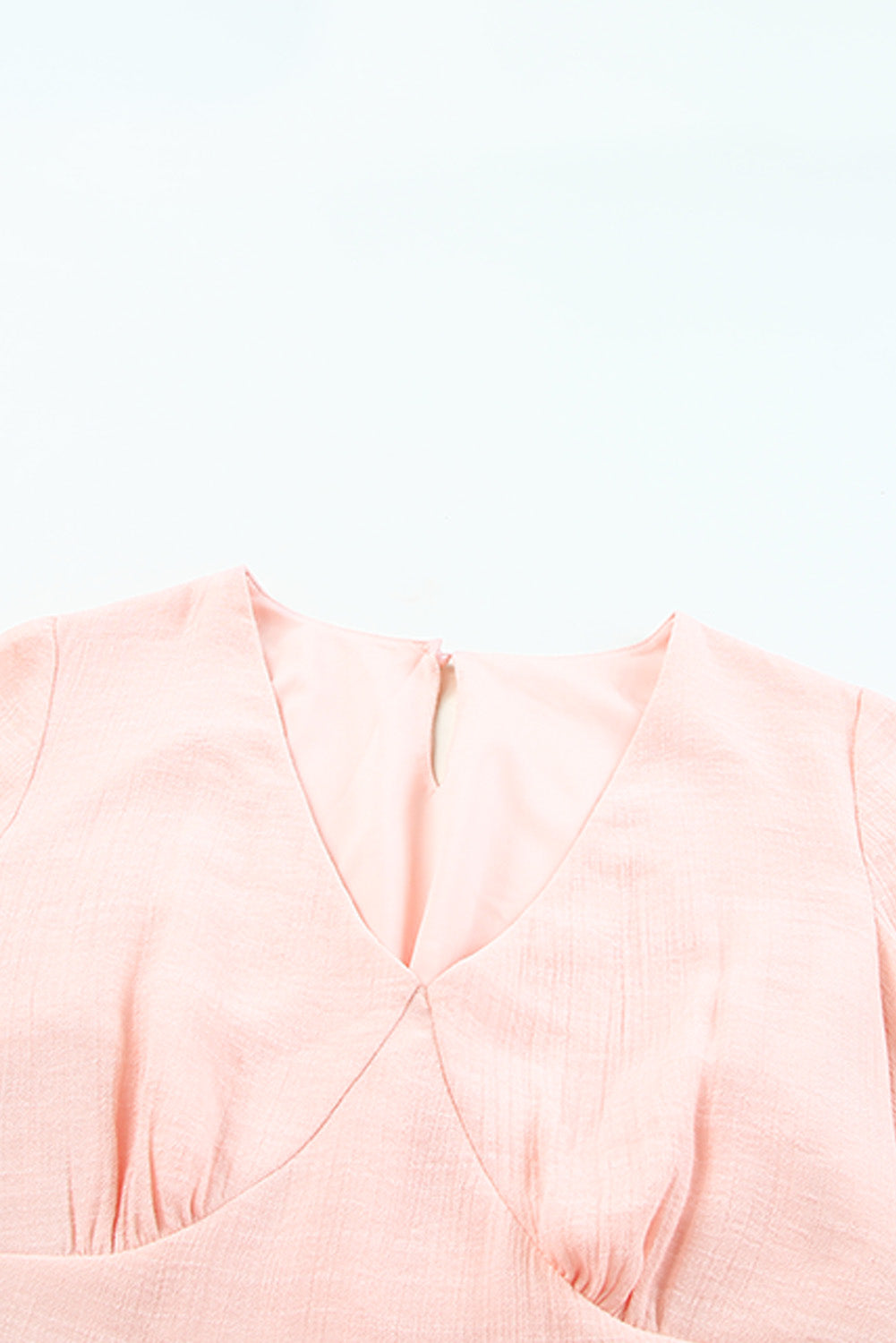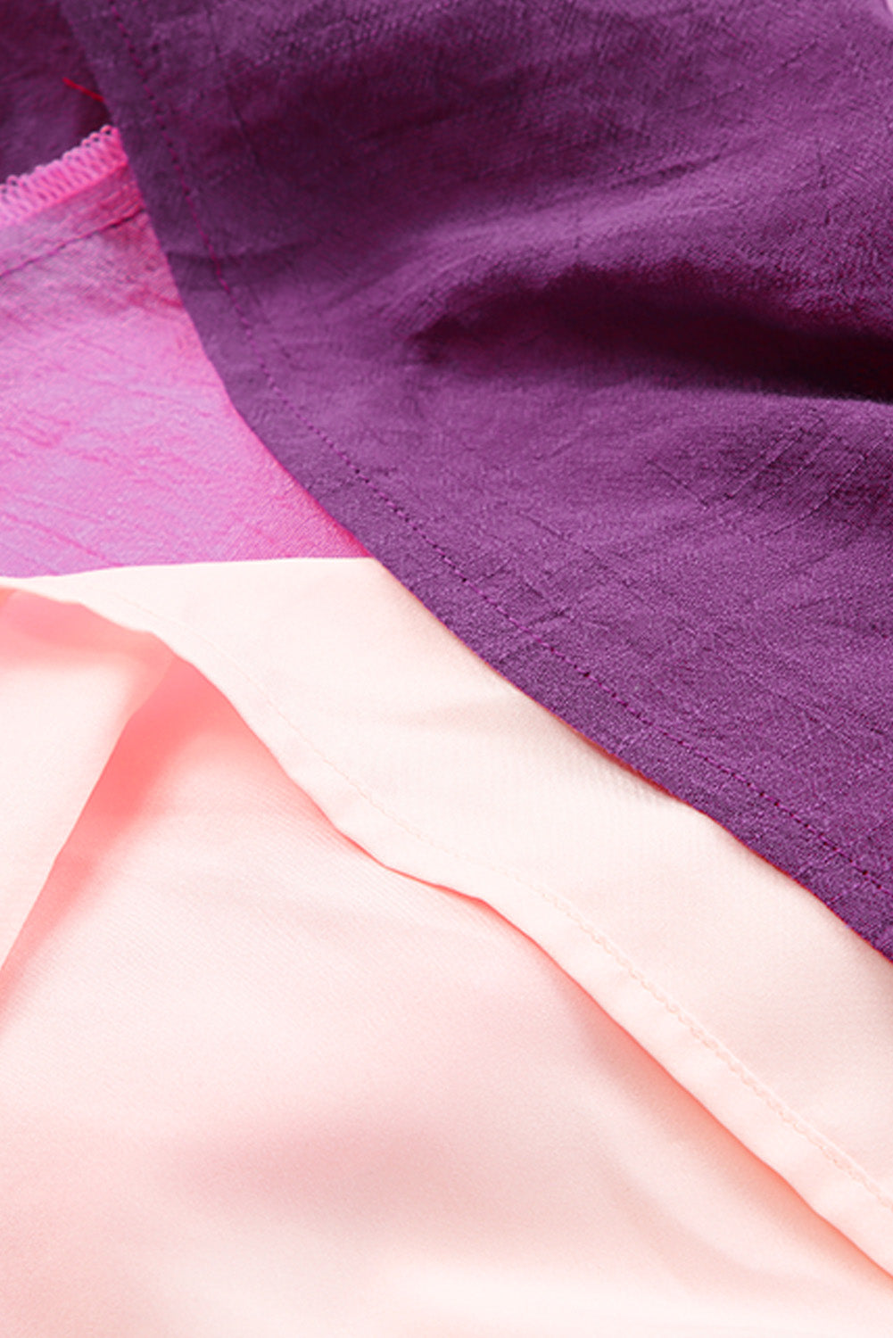 • Features a sexy v neck. split short sleeves. and a flared skirt with tiered color block