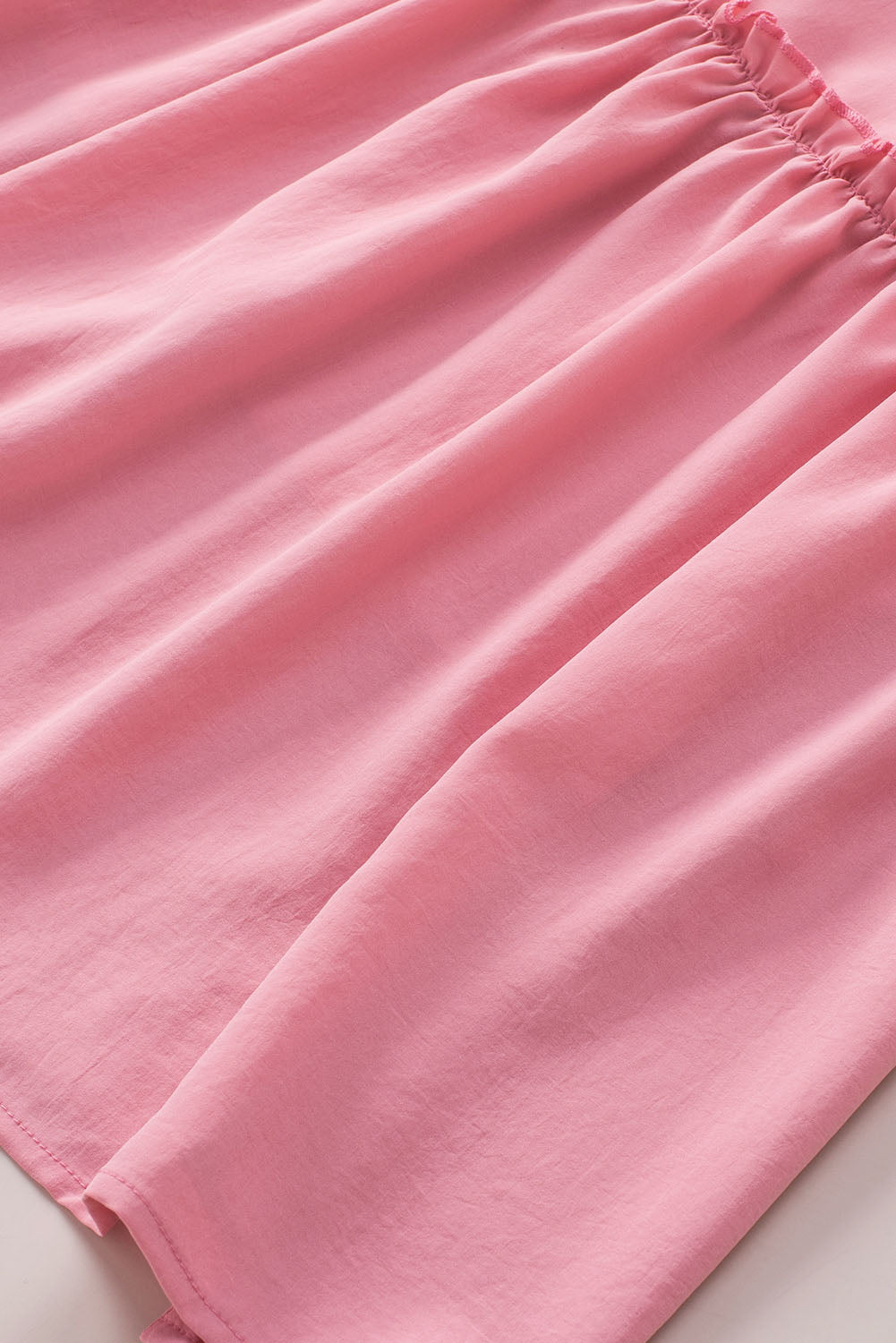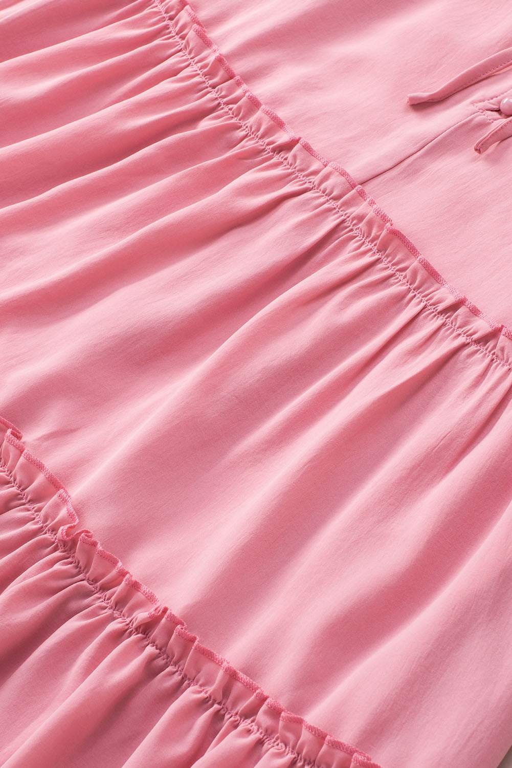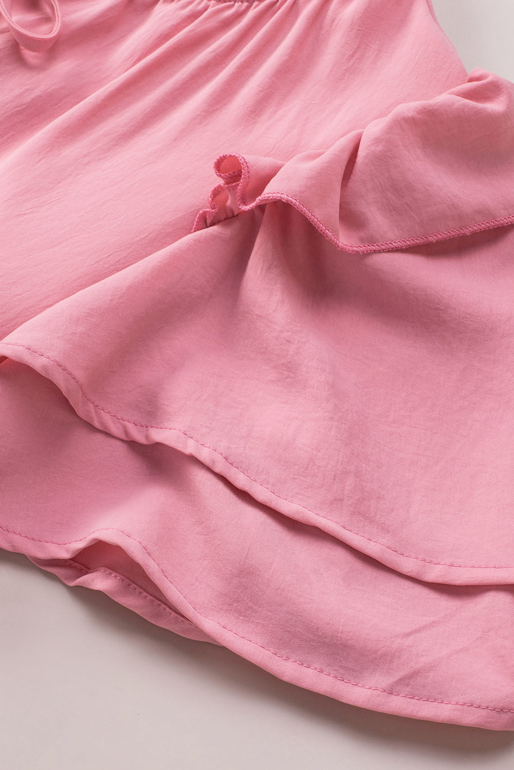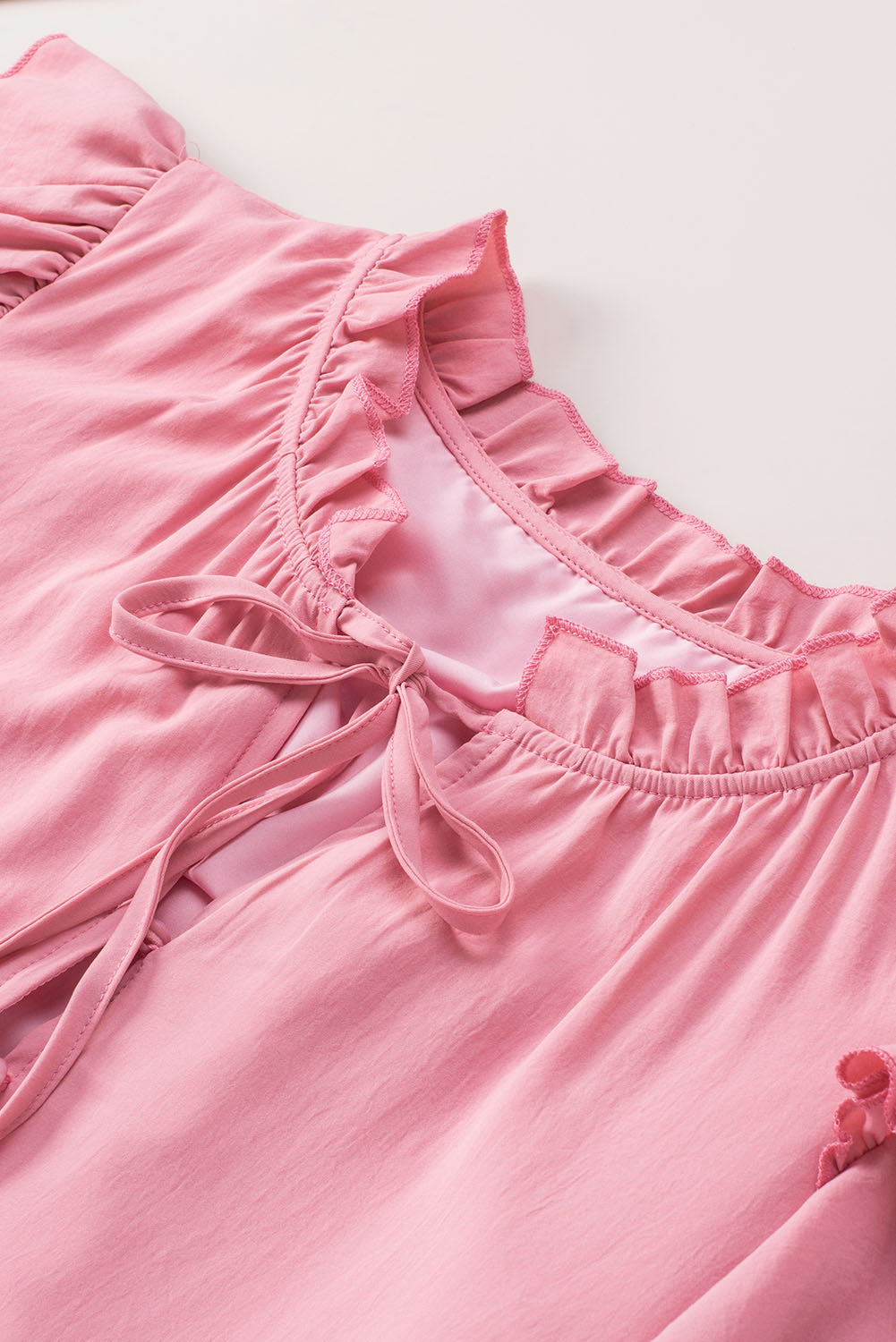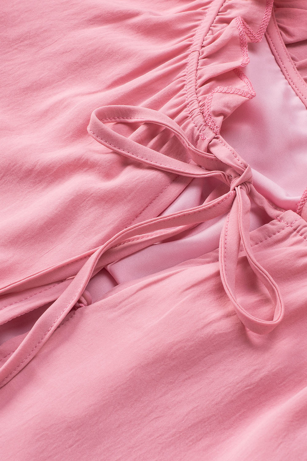 Pink V Neck Layered Ruffled Sleeves Mini Dress
