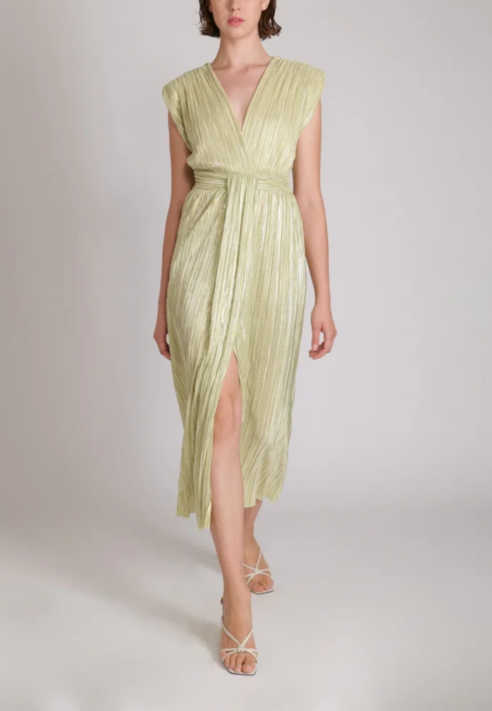 Pleated V-Neck Midi Dress