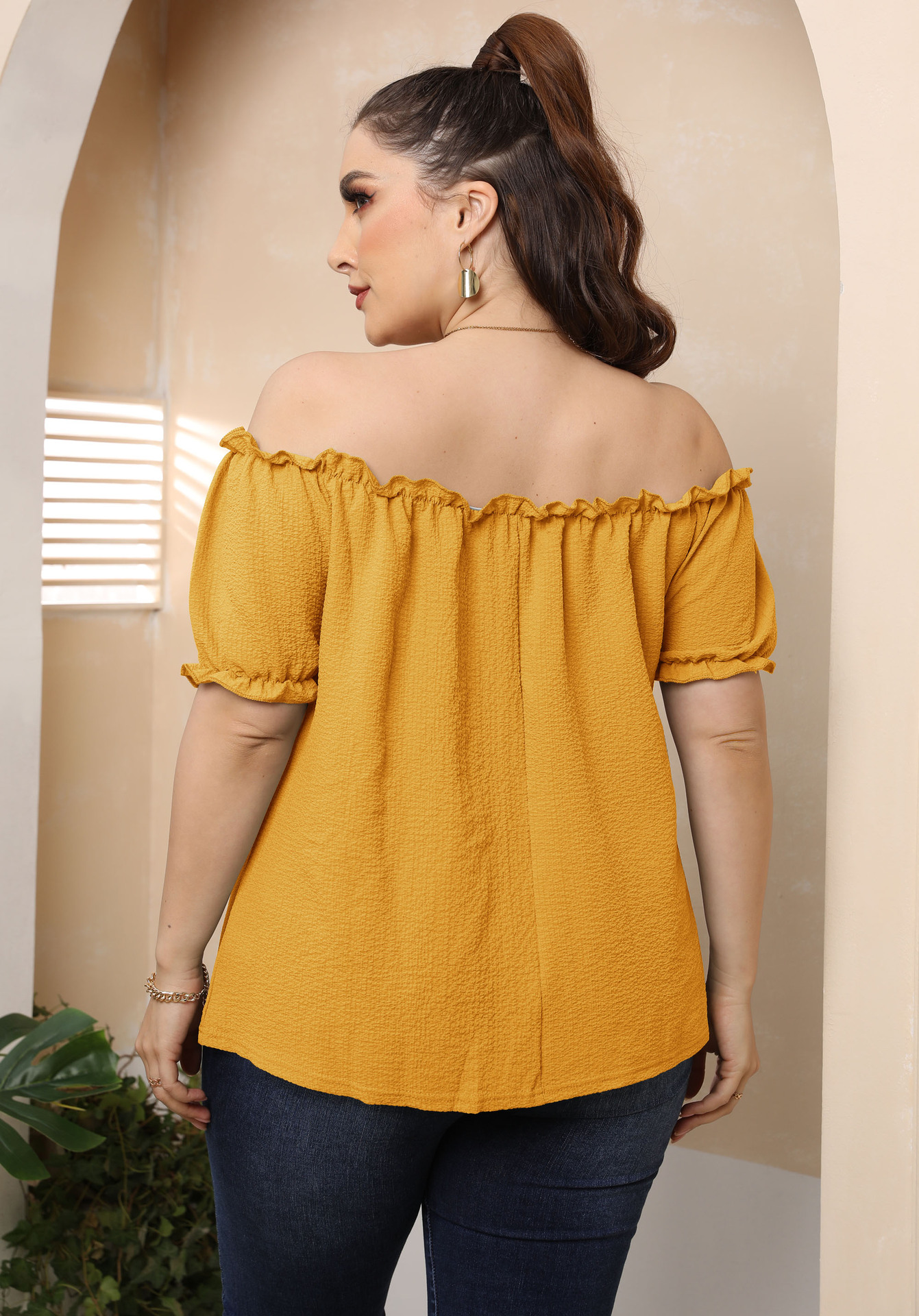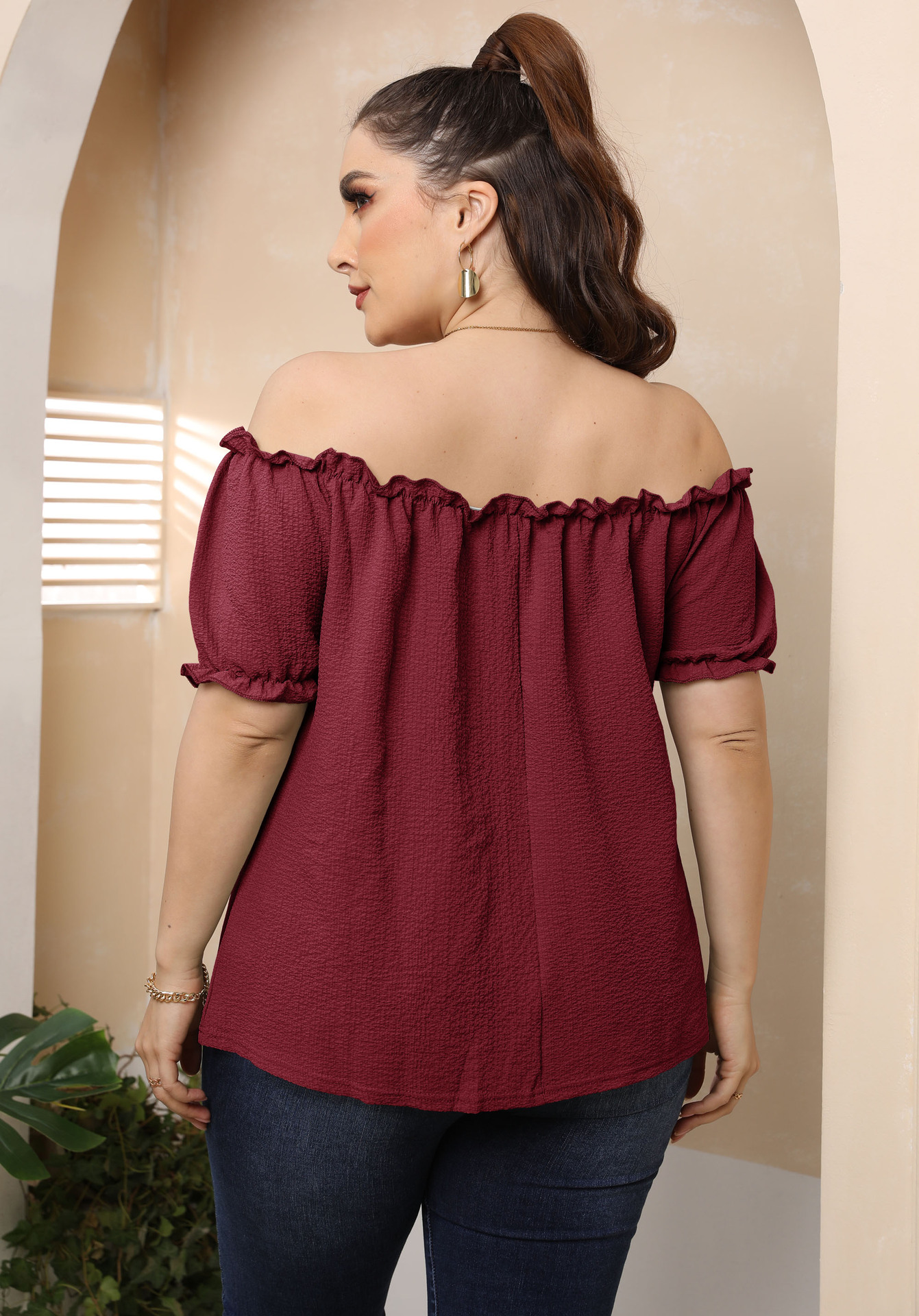 Increase quantity for Plus Size Women Ruffled off-Shoulder Sexy Casual Sweet Short-Sleeved T-shirt