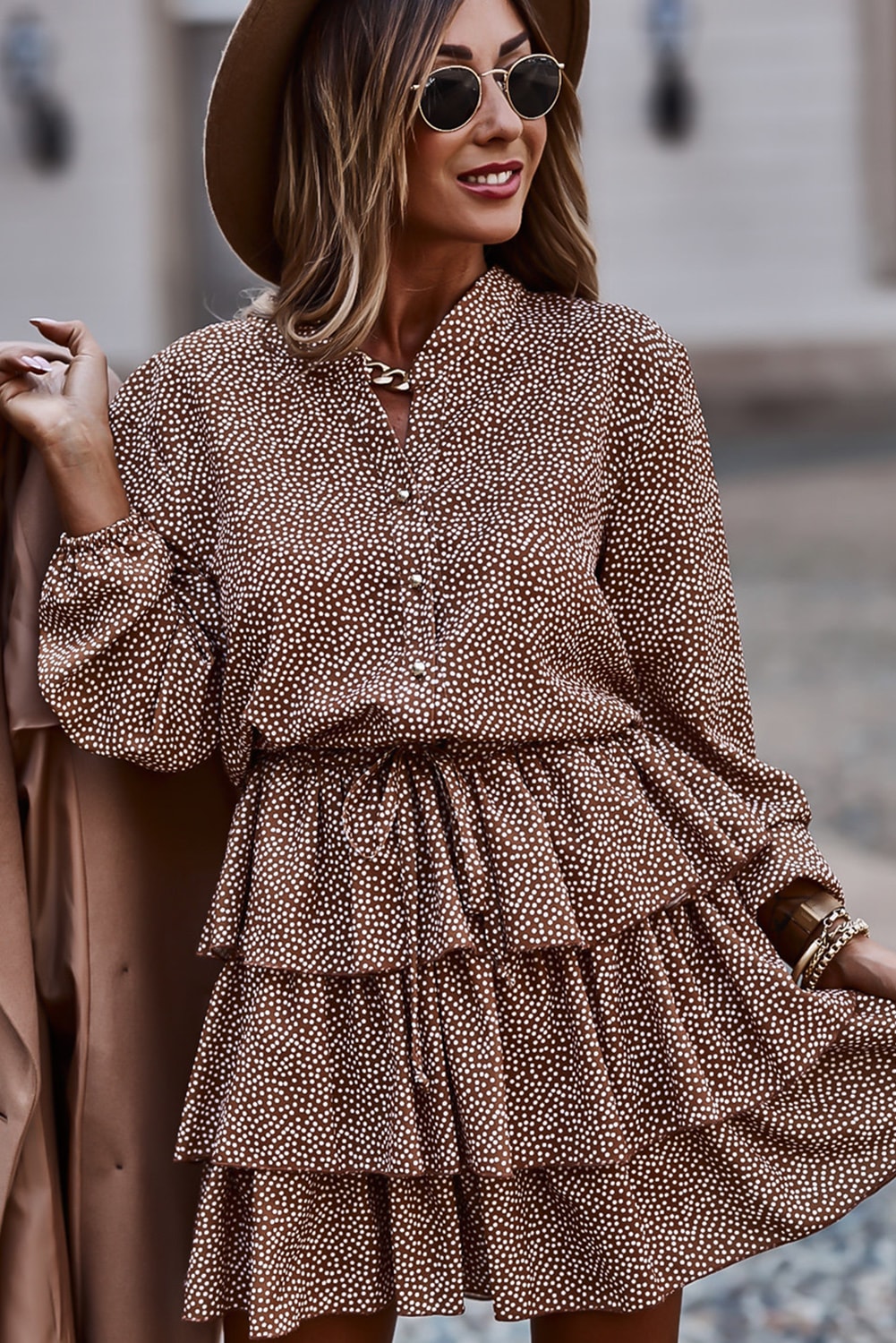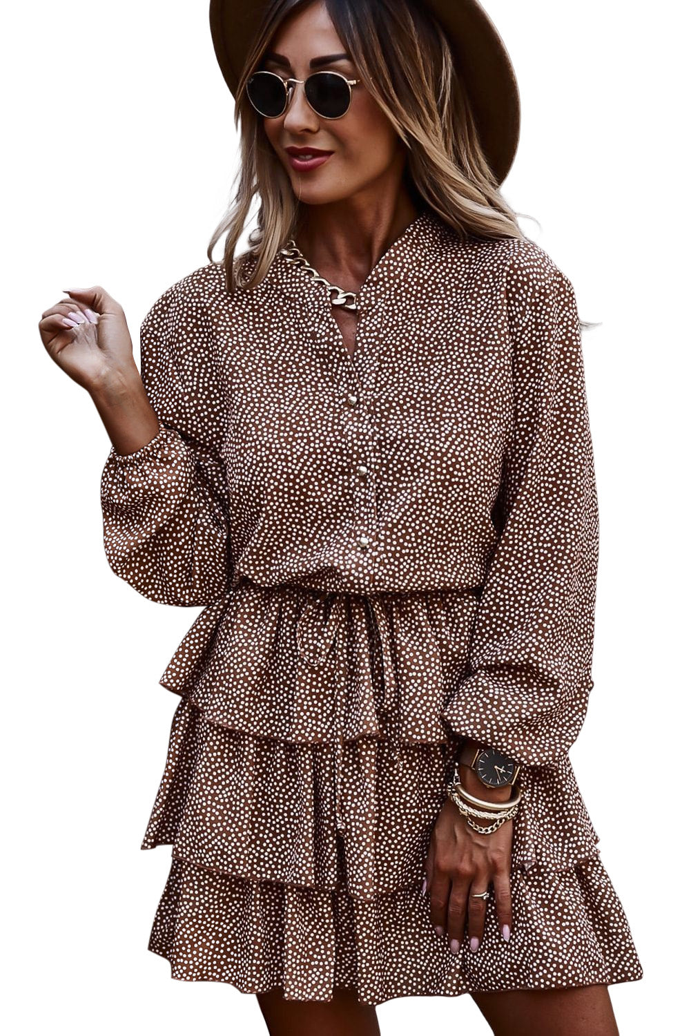 Polka Dot Print Tiered Ruffled High Waist Mini Dress