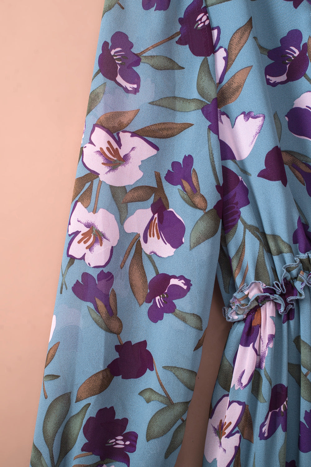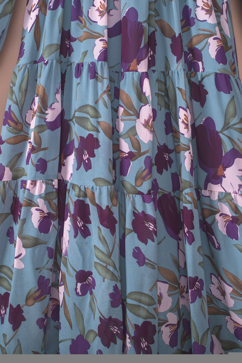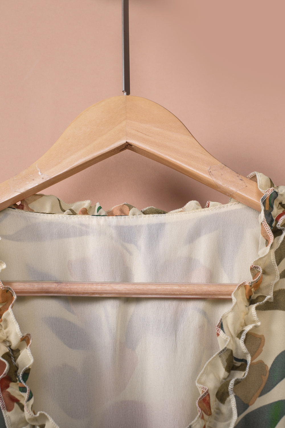 • It includes a v-neckline. sleeveless. high waist. ruffles. and mini length