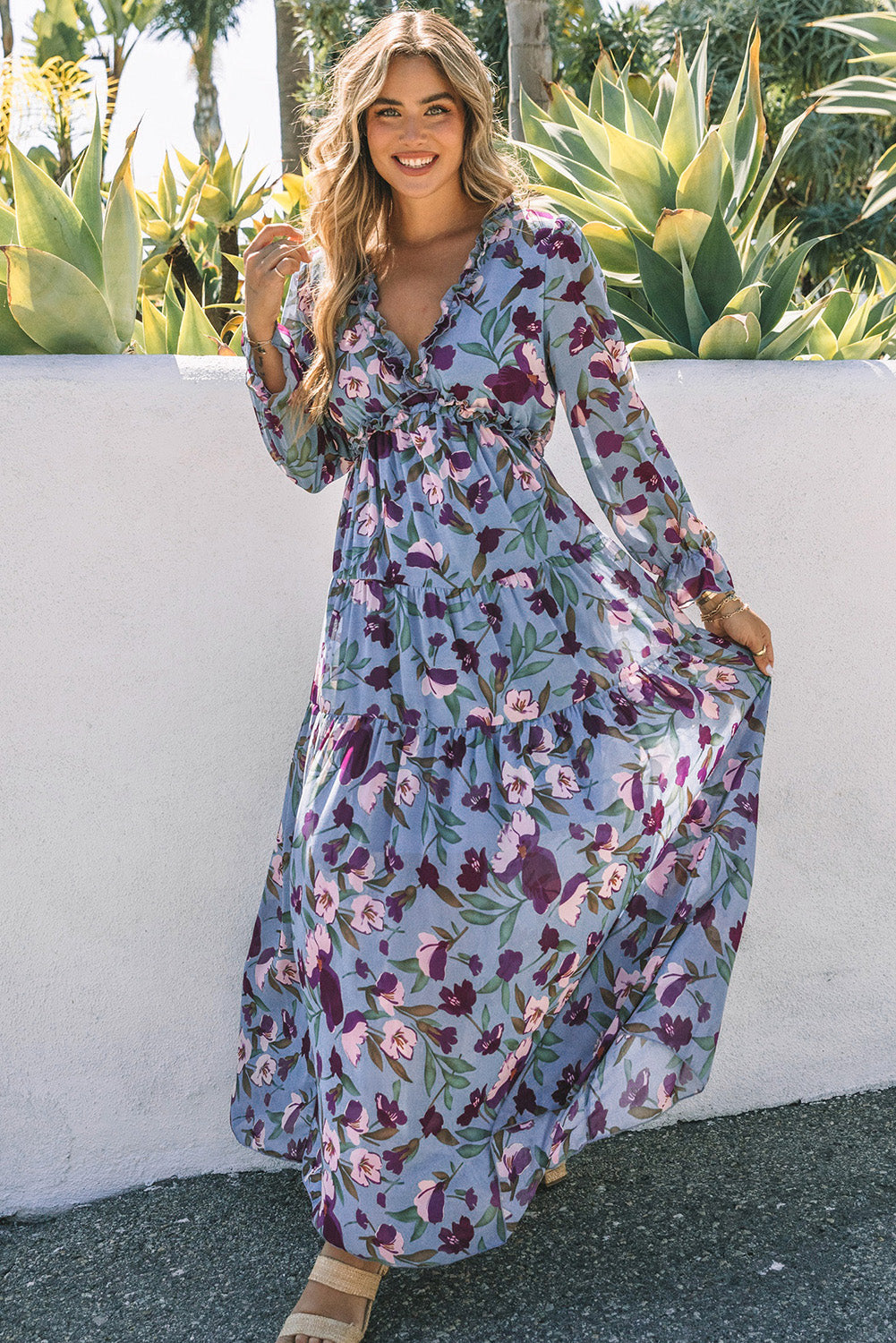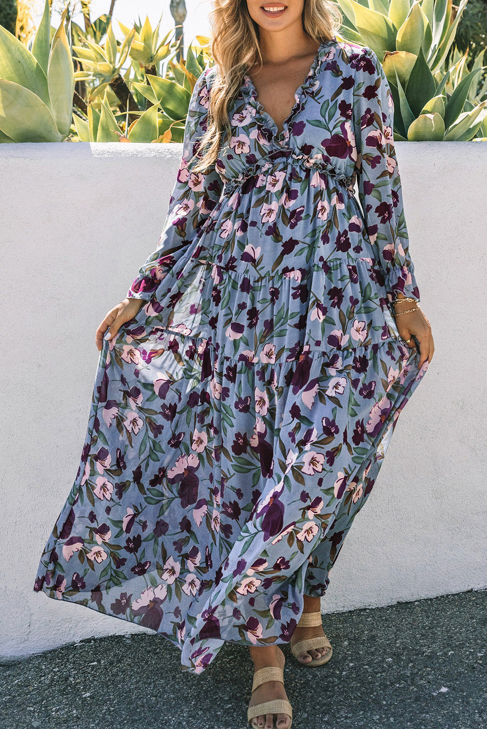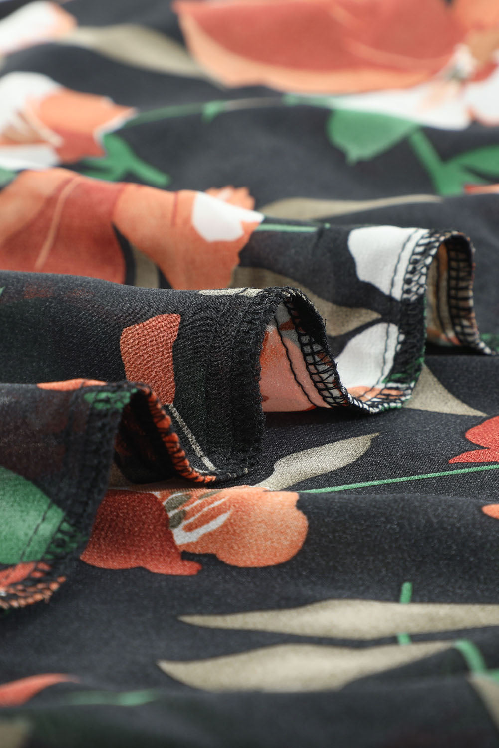 Red Boho Floral Print Frill V Neck Sleeveless Dress