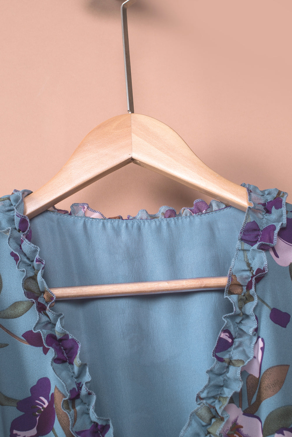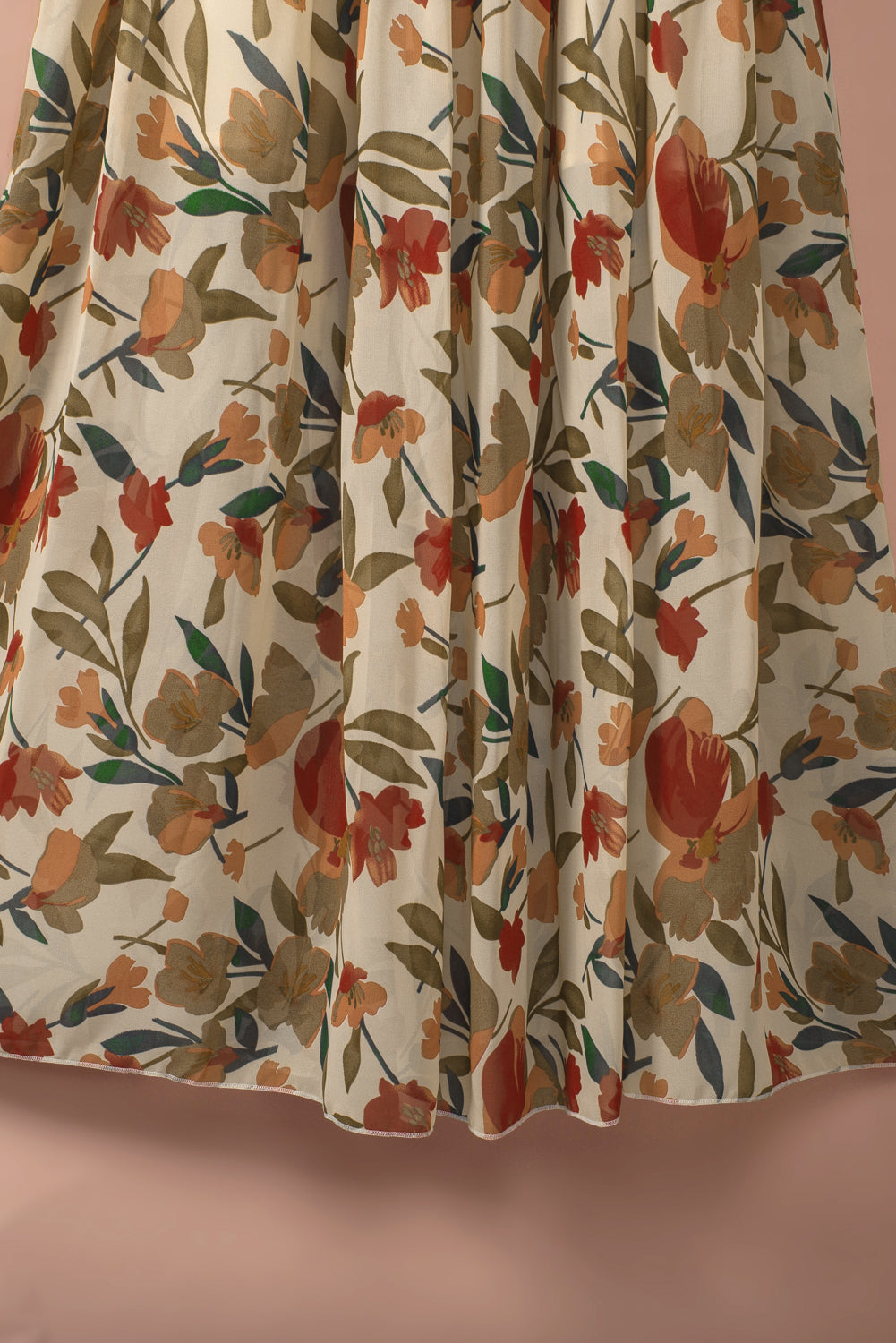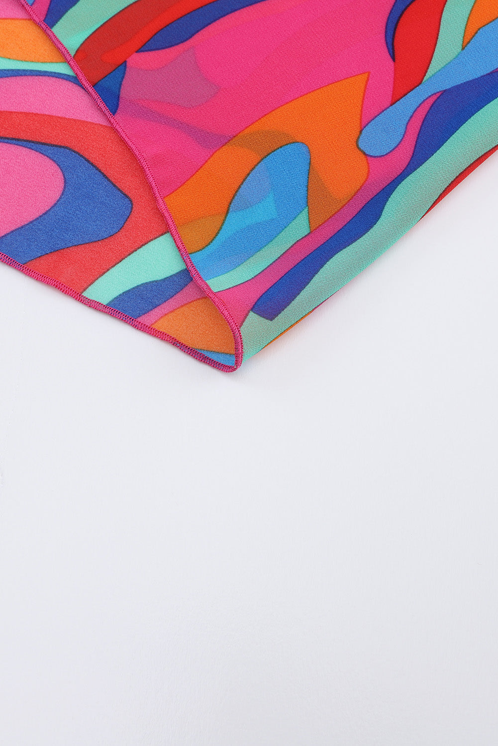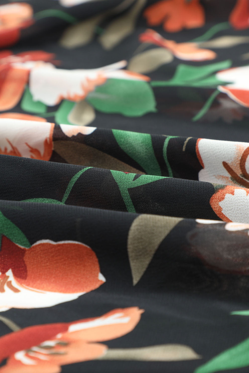 Red Boho Floral Print Frill V Neck Sleeveless Dress