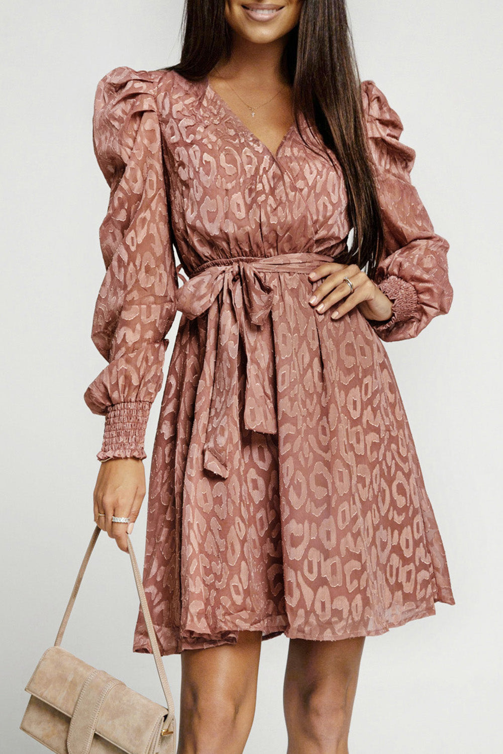 Rhae Jacquard Animal Print Surplice Dress - FINAL SALE
