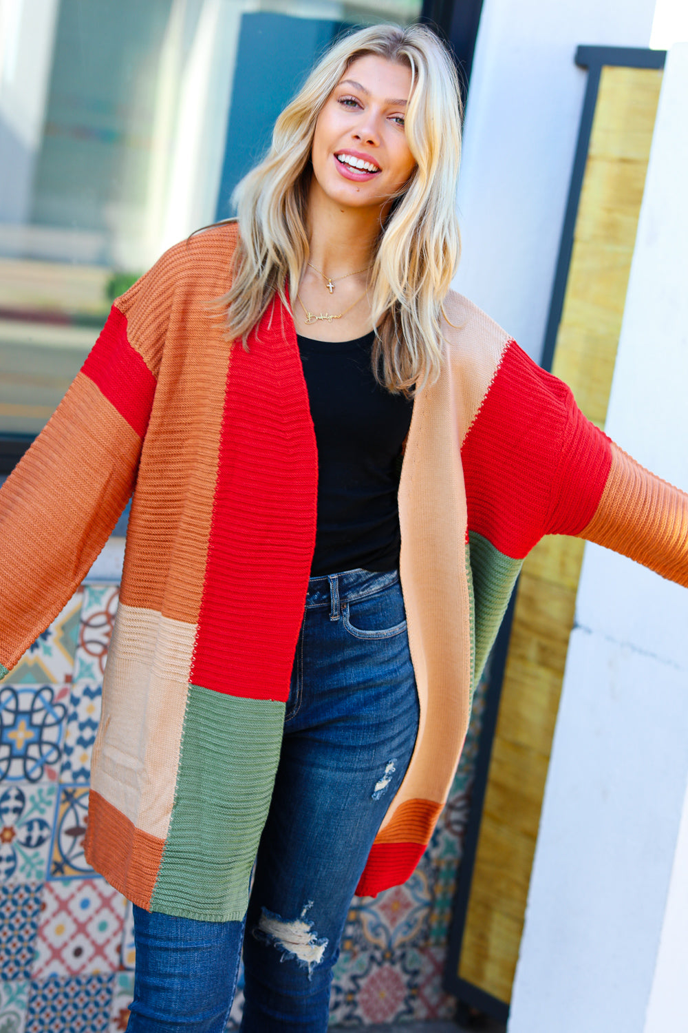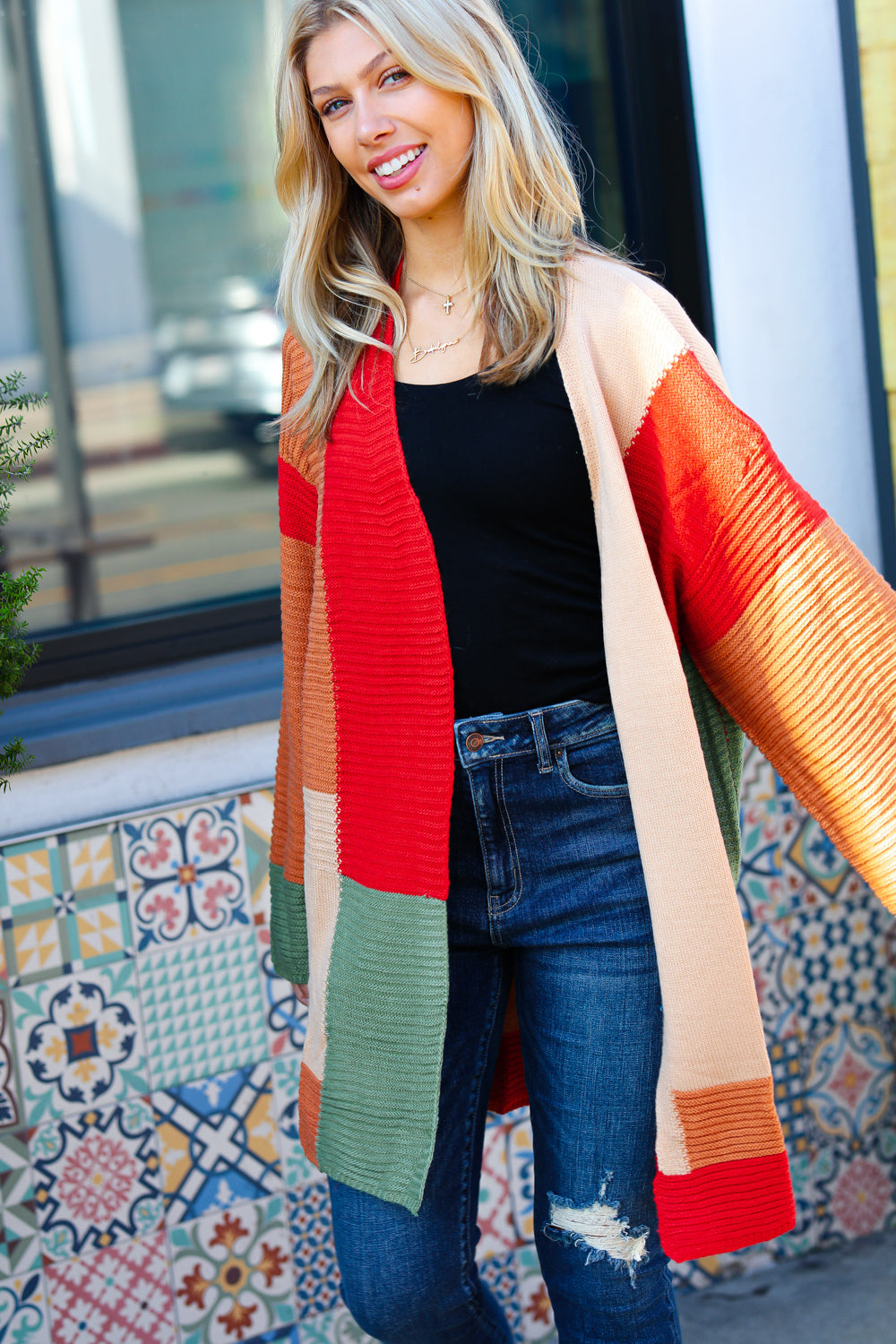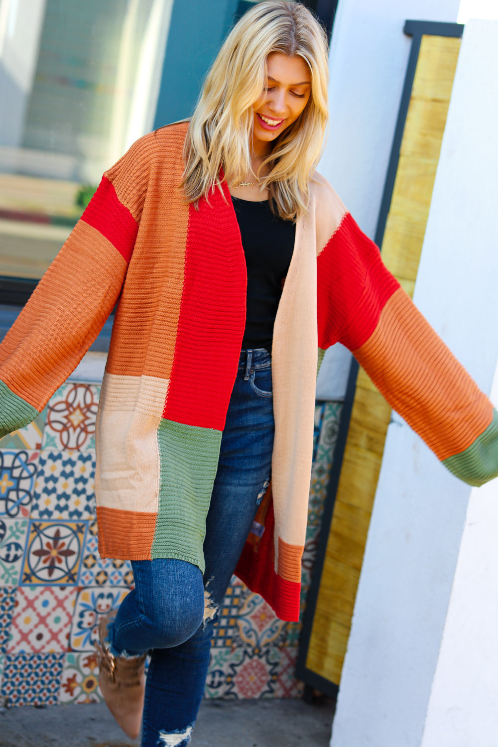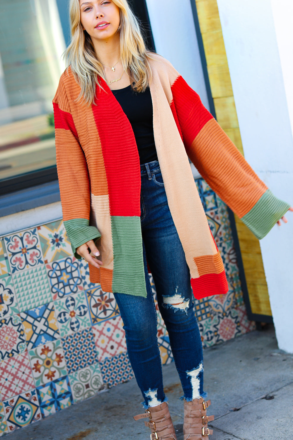 Made with soft knit fabric. this midweight colorblock open cardigan will be your fav cold weather piece this season. Pair with jeans and booties for a casual but cute look.