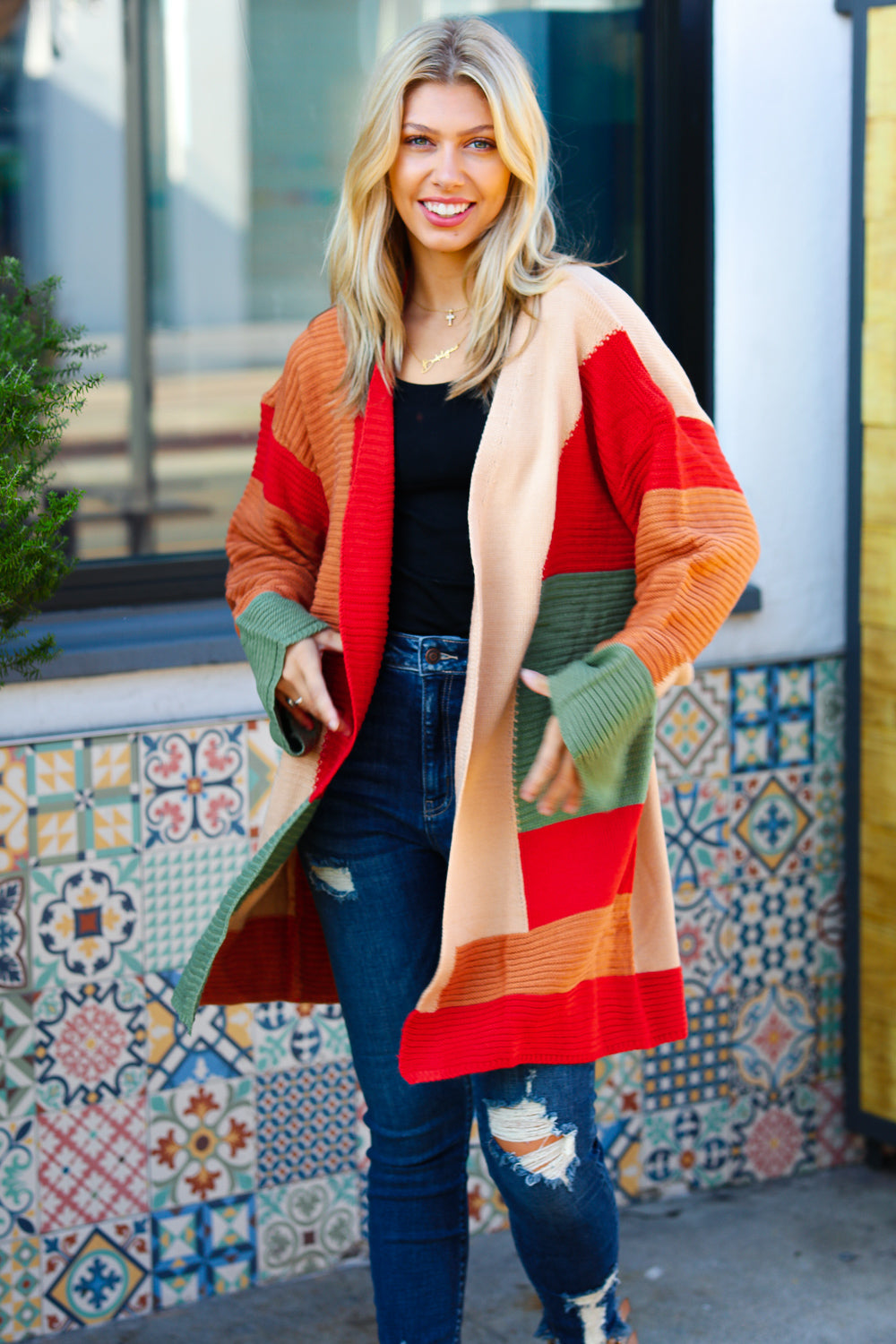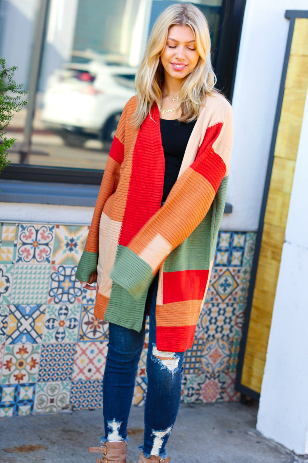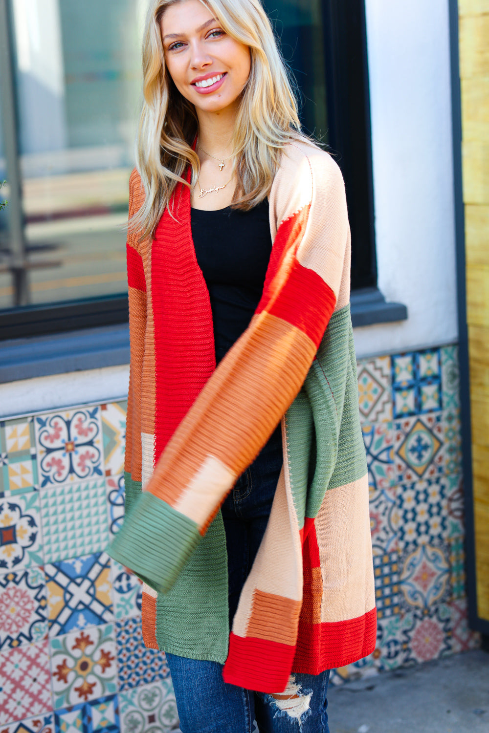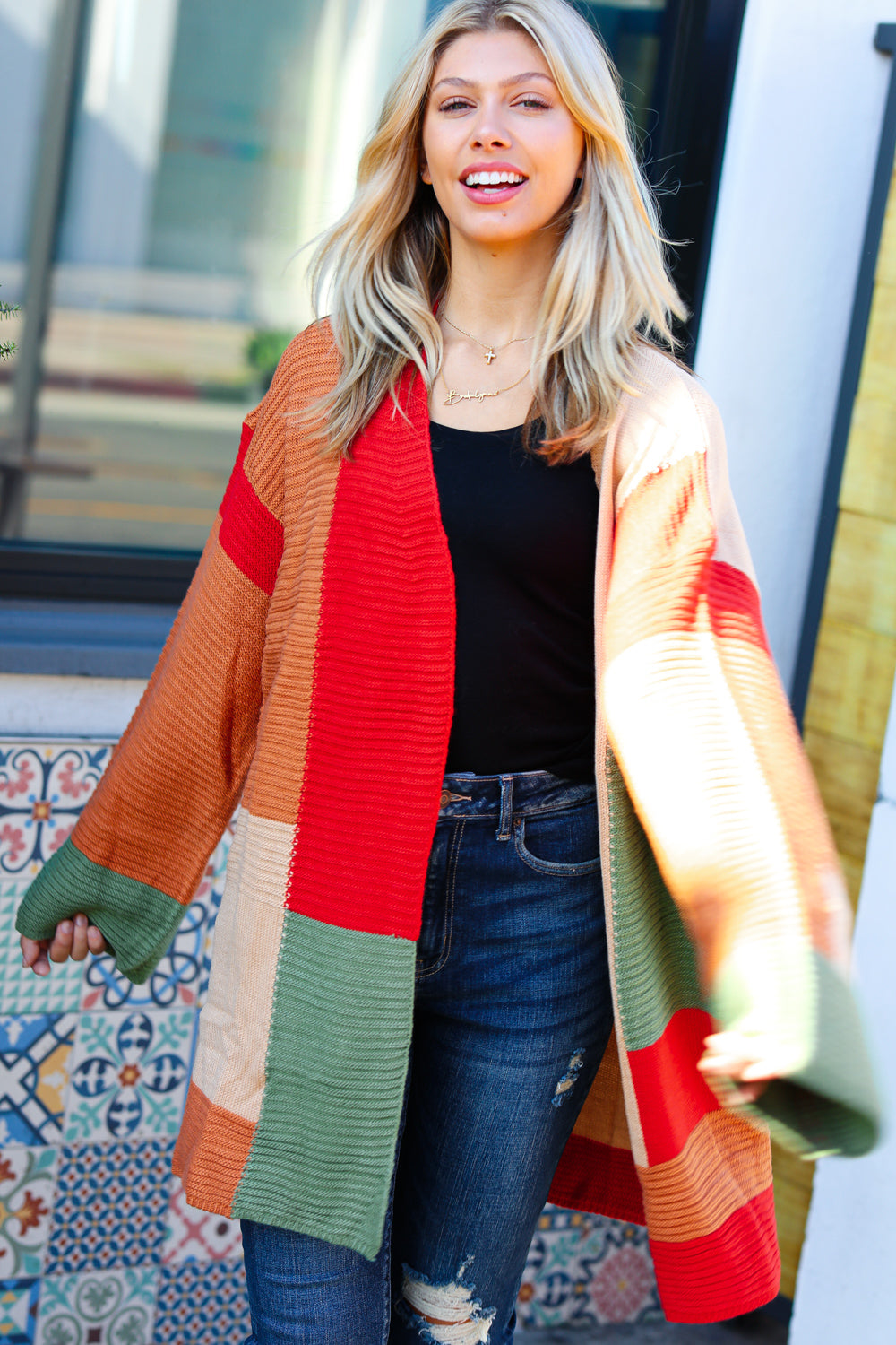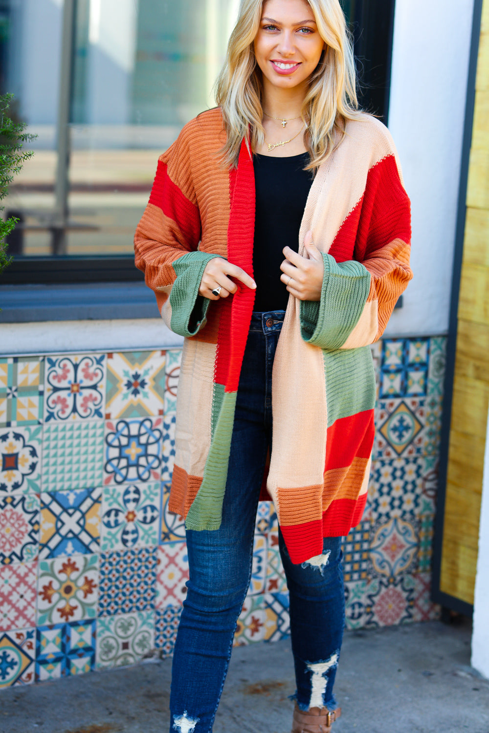 Made with soft knit fabric. this midweight colorblock open cardigan will be your fav cold weather piece this season. Pair with jeans and booties for a casual but cute look.