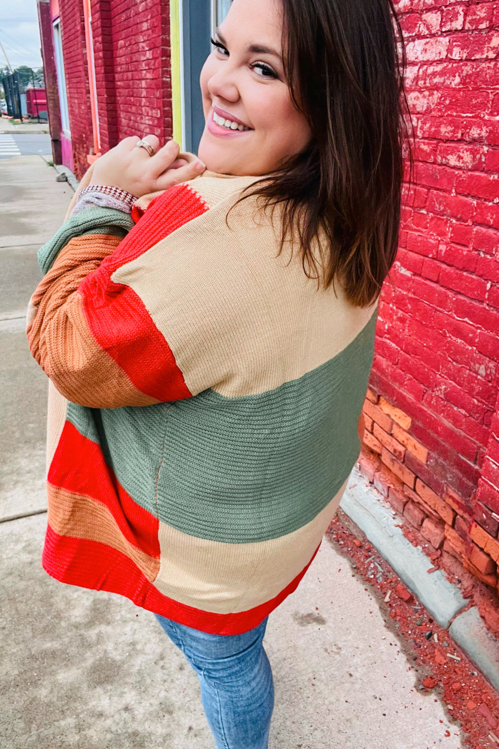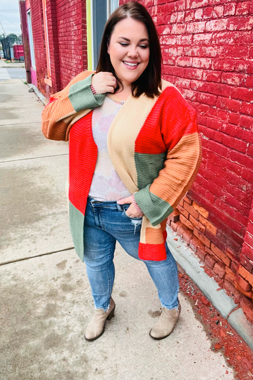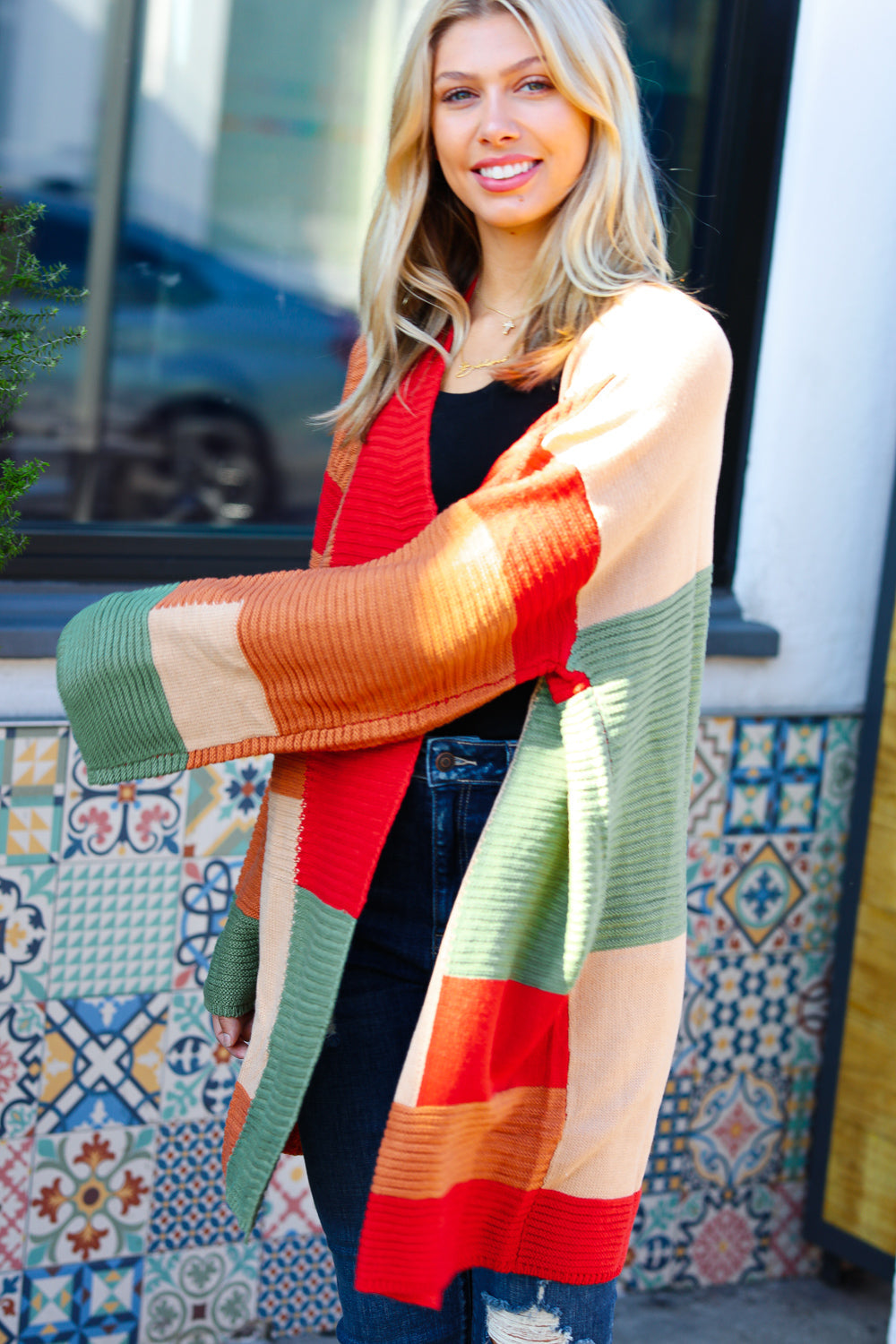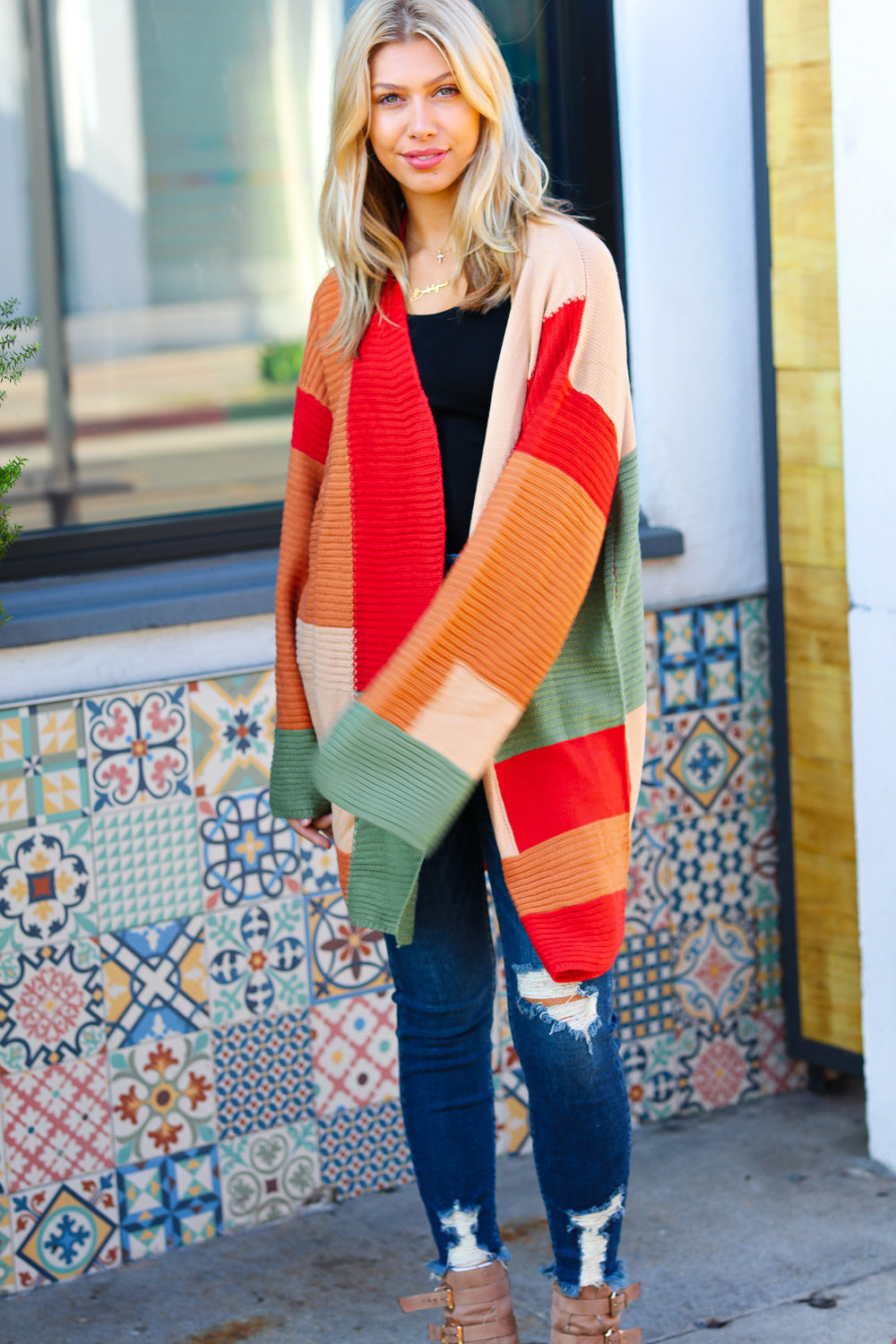 Made with soft knit fabric. this midweight colorblock open cardigan will be your fav cold weather piece this season. Pair with jeans and booties for a casual but cute look.