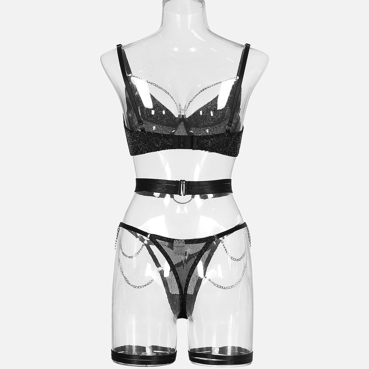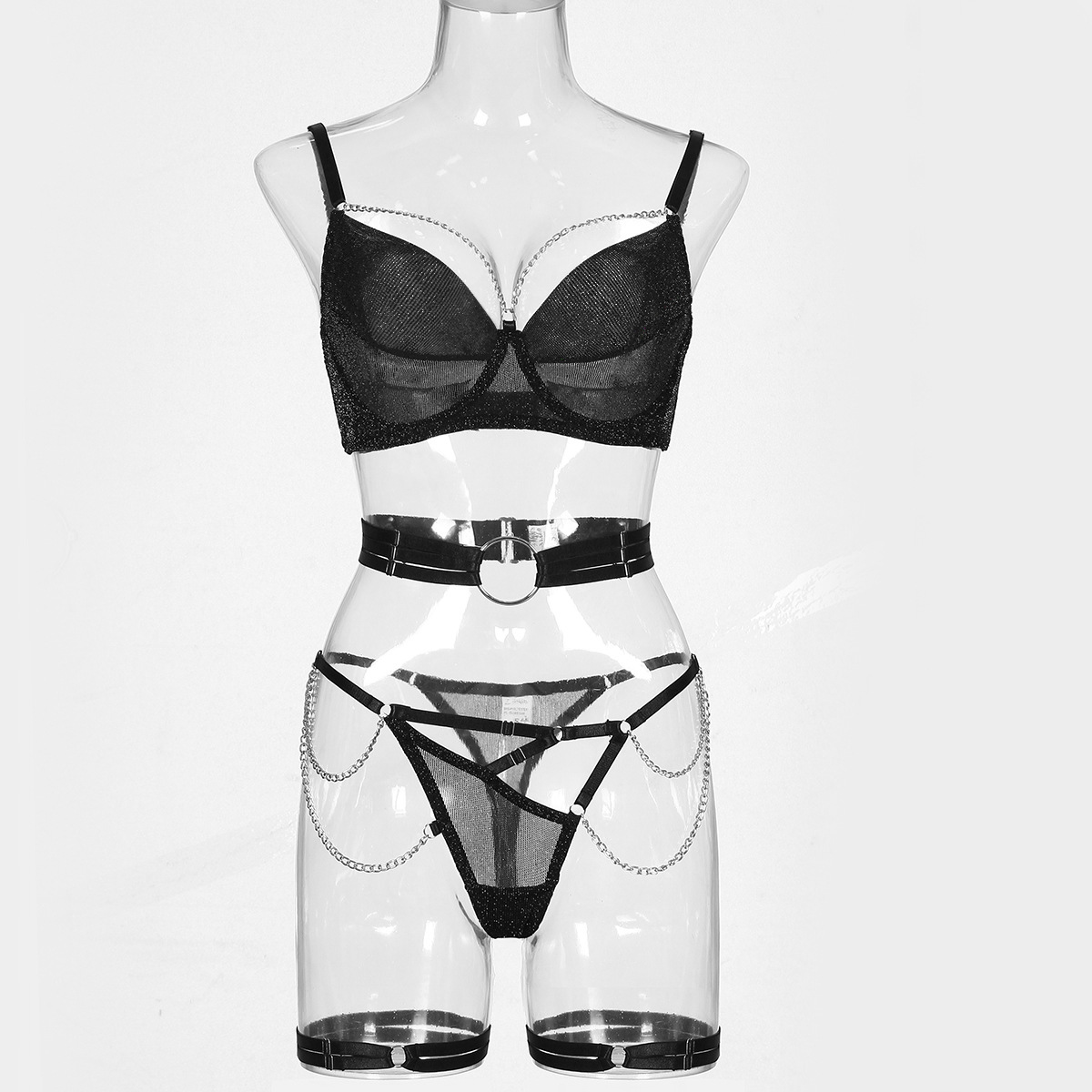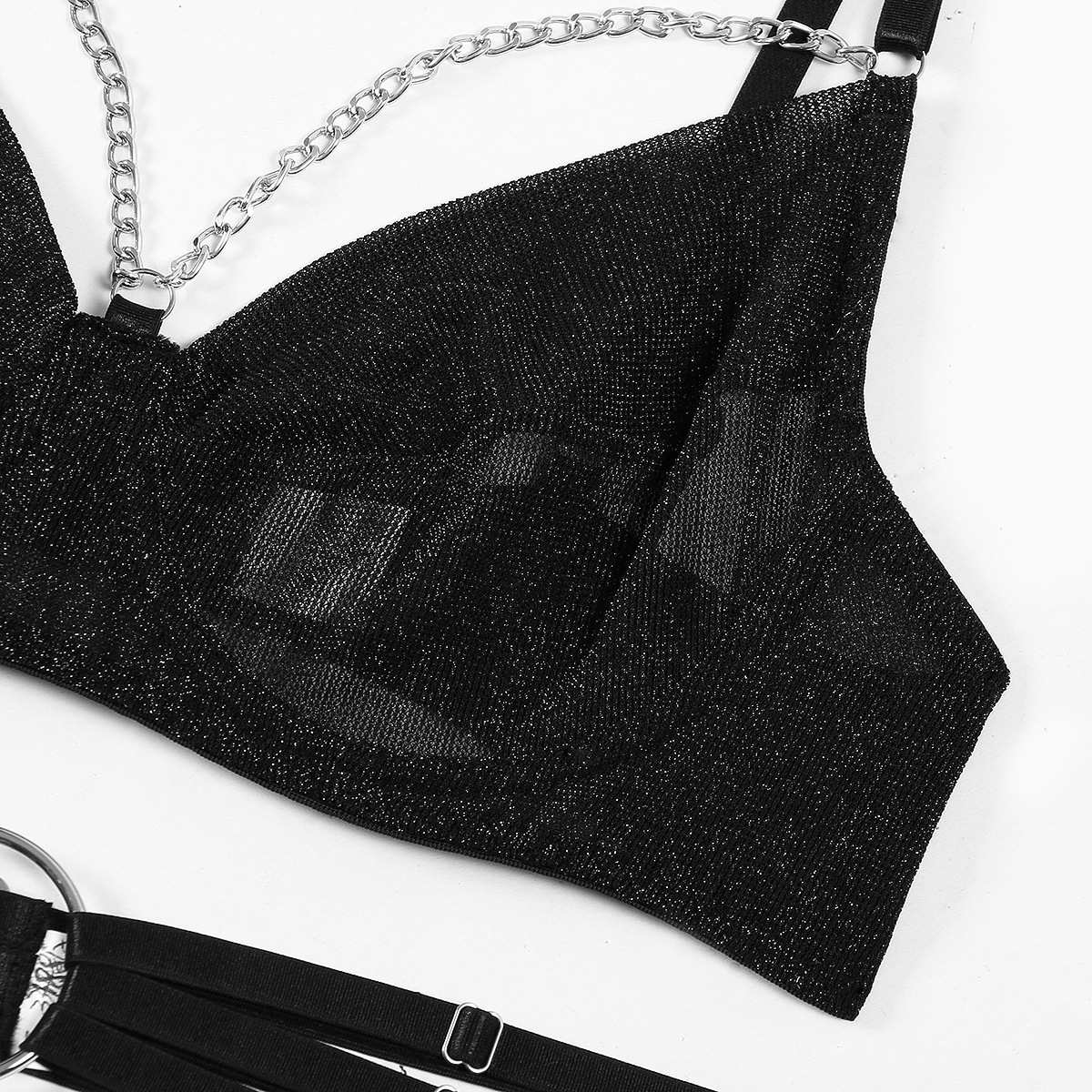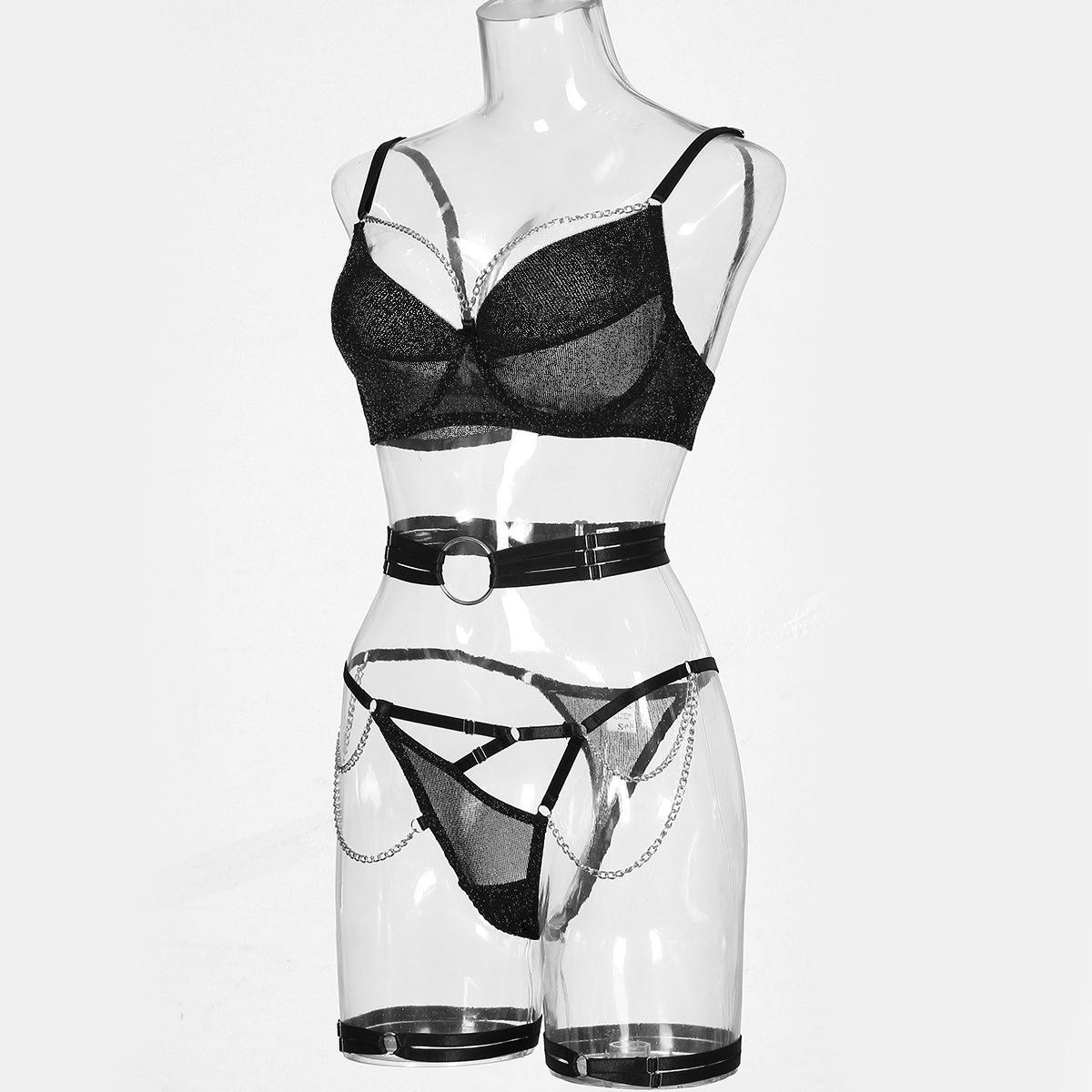Sexy Lingerie Set Highlight Cloth Chain Decoration Sexy Four Piece Set Women