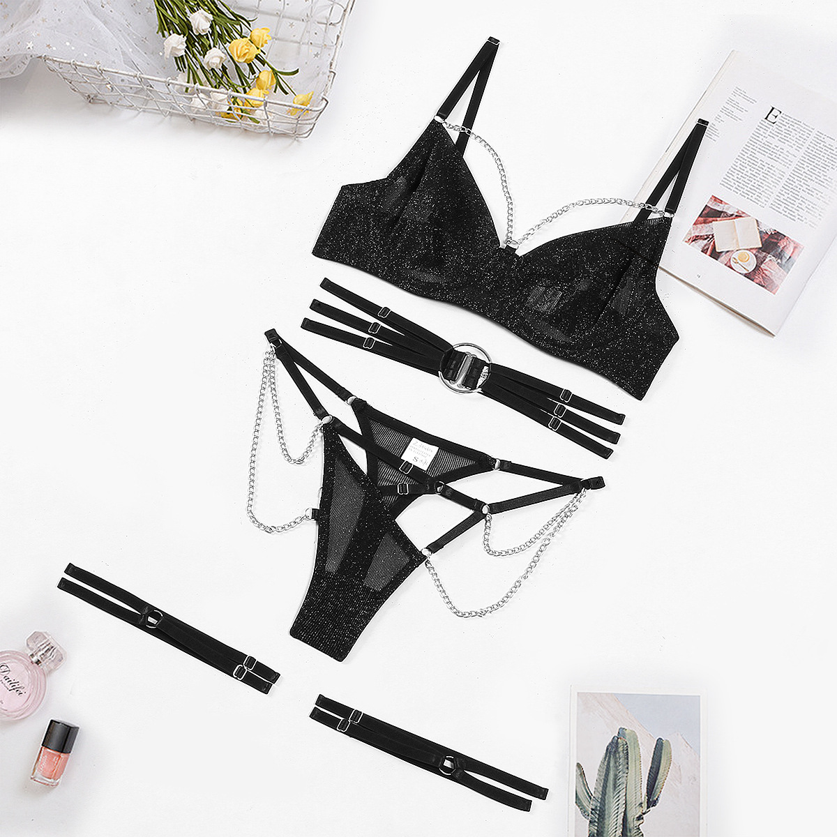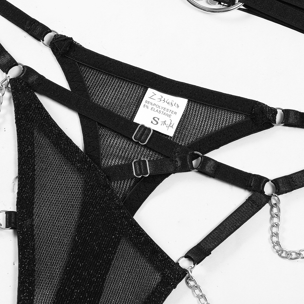 Decrease quantity for Sexy Lingerie Set Highlight Cloth Chain Decoration Sexy Four Piece Set Women