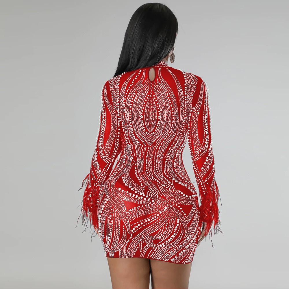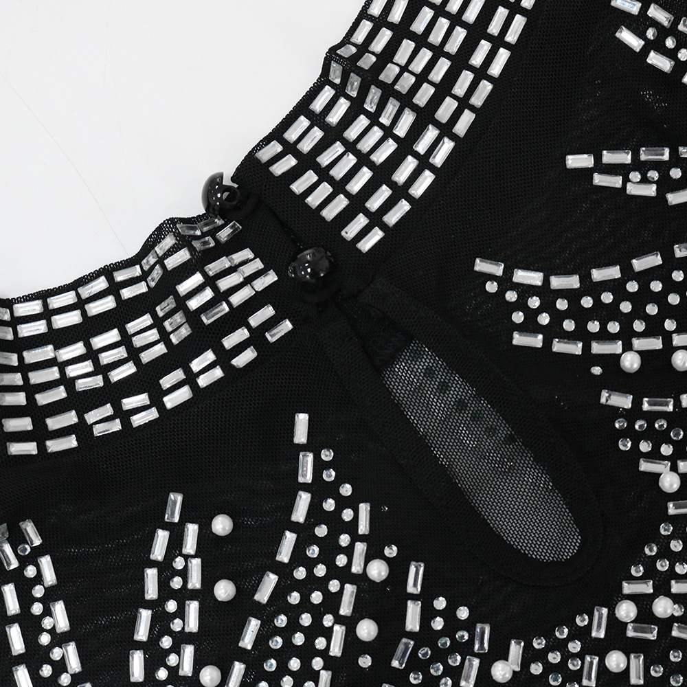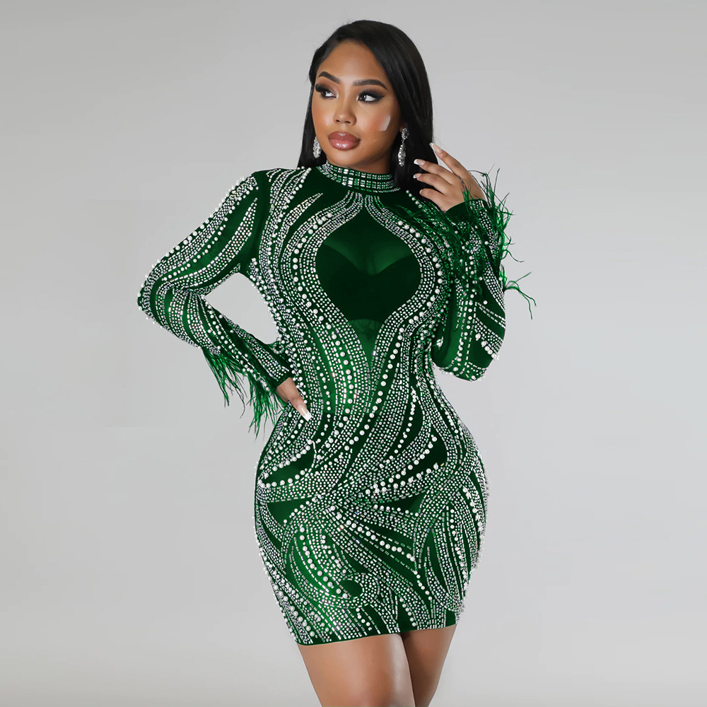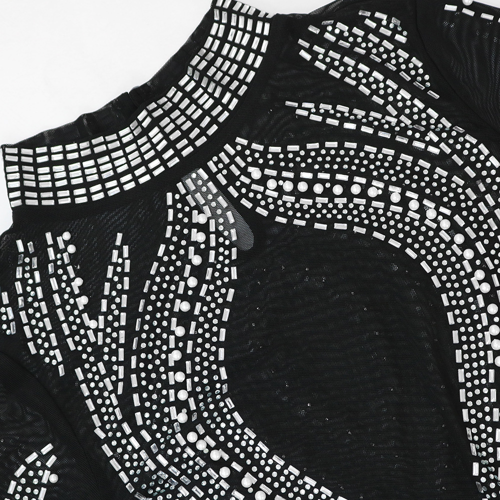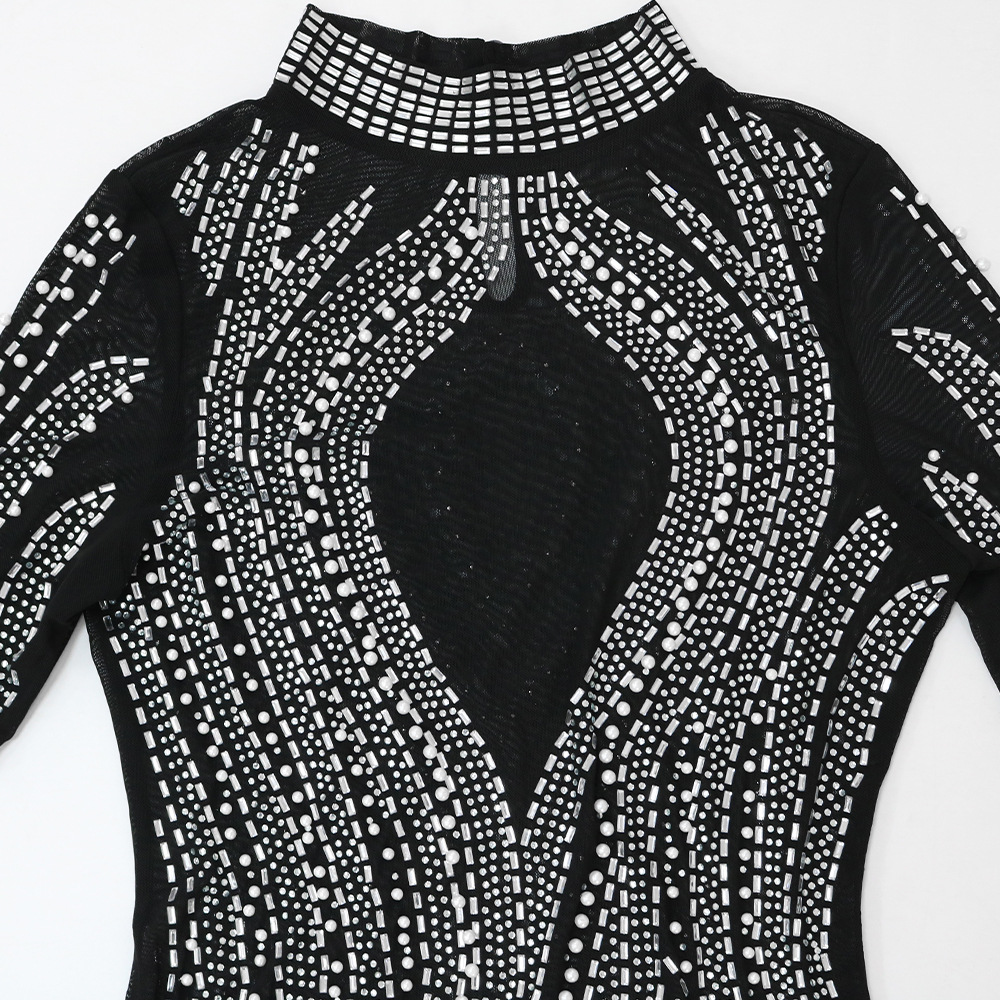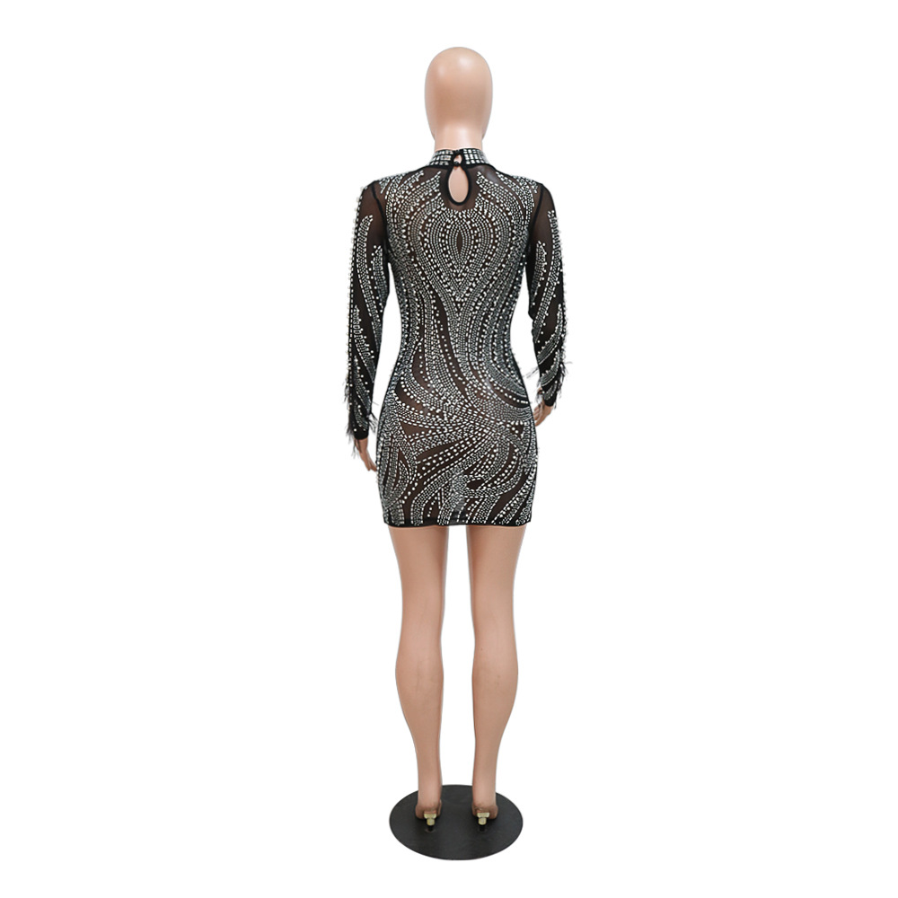 Sexy See Through Rhinestone Slimming Dress Sheath Long Sleeve Dress
