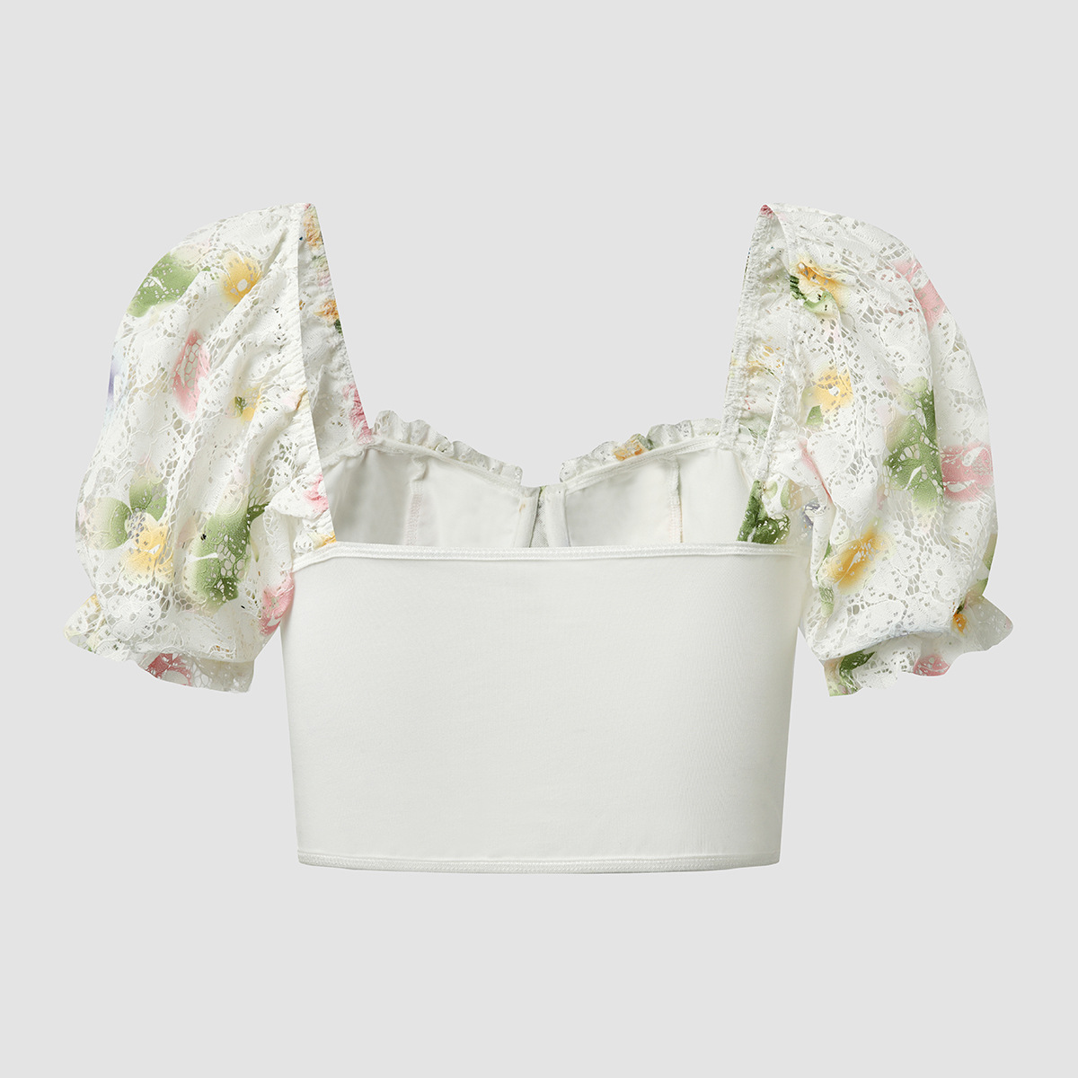 Increase quantity for Sexy Street Backless Sexy Puff Sleeve T shirt Steel Ring Boning Corset Waist Top for Women