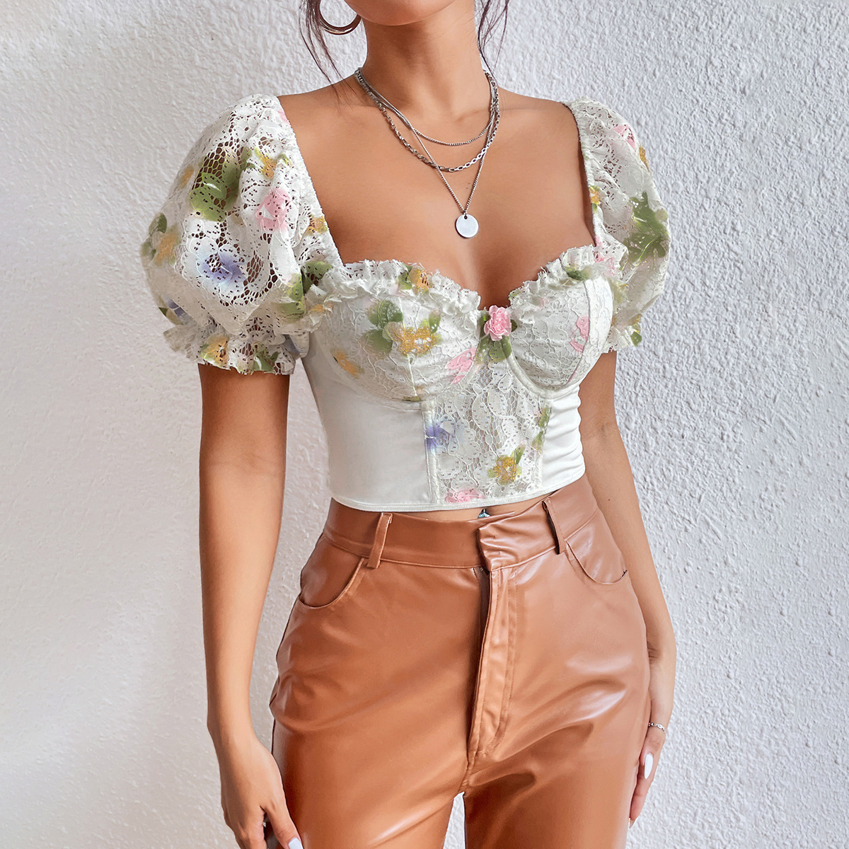Sexy Street Backless Sexy Puff Sleeve T shirt Steel Ring Boning Corset Waist Top for Women