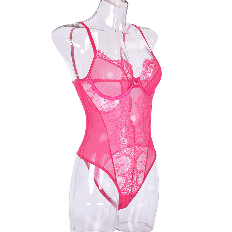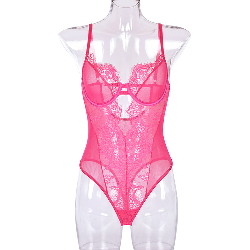 Sexy Underwear Women Clothing Lace Floral Border Mesh Sexy Sleeveless Jumpsuit
