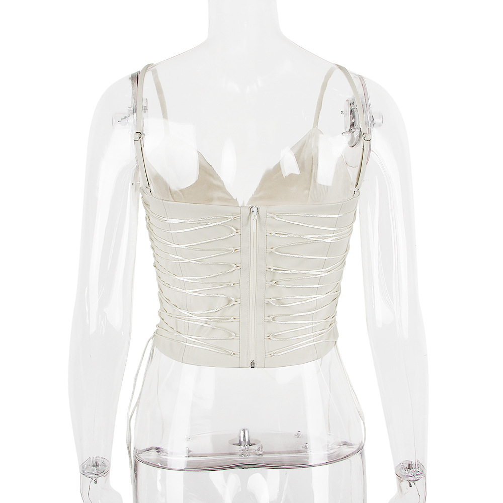 Sexy Women Clothing Faux Leather Deep V Plunge Strap Vest Women Slim Fit Backless Sexy Top Women Crisscross
