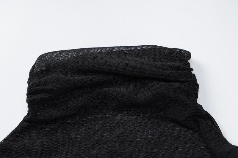 Decrease quantity for Sexy Women Clothing Sexy See through Turtleneck Slim Mesh Oversleeve Short Top One