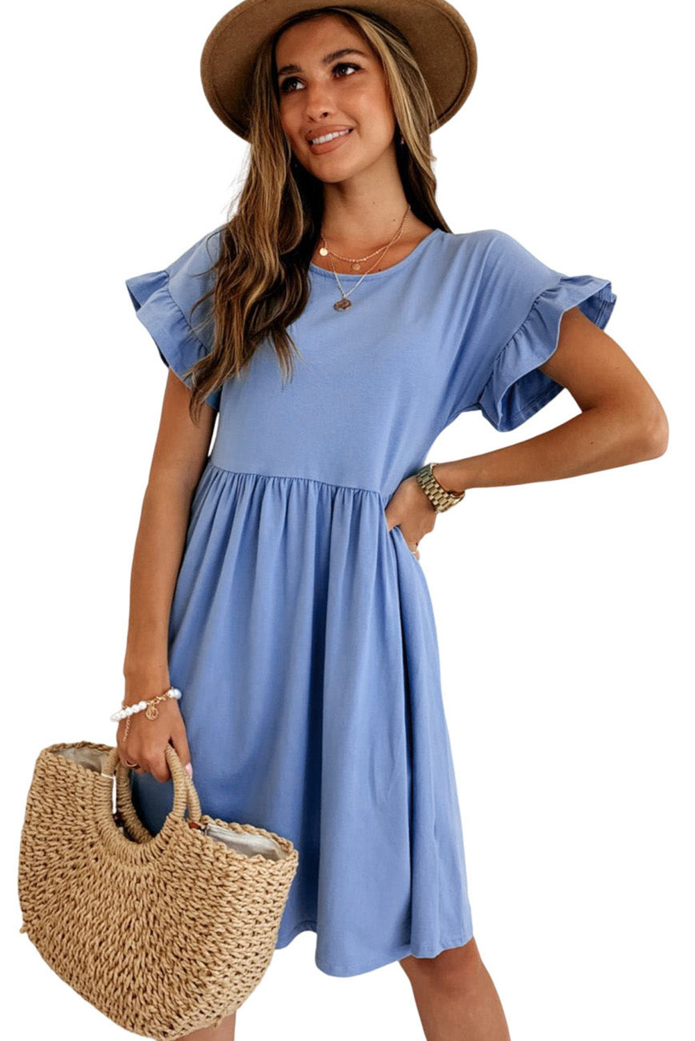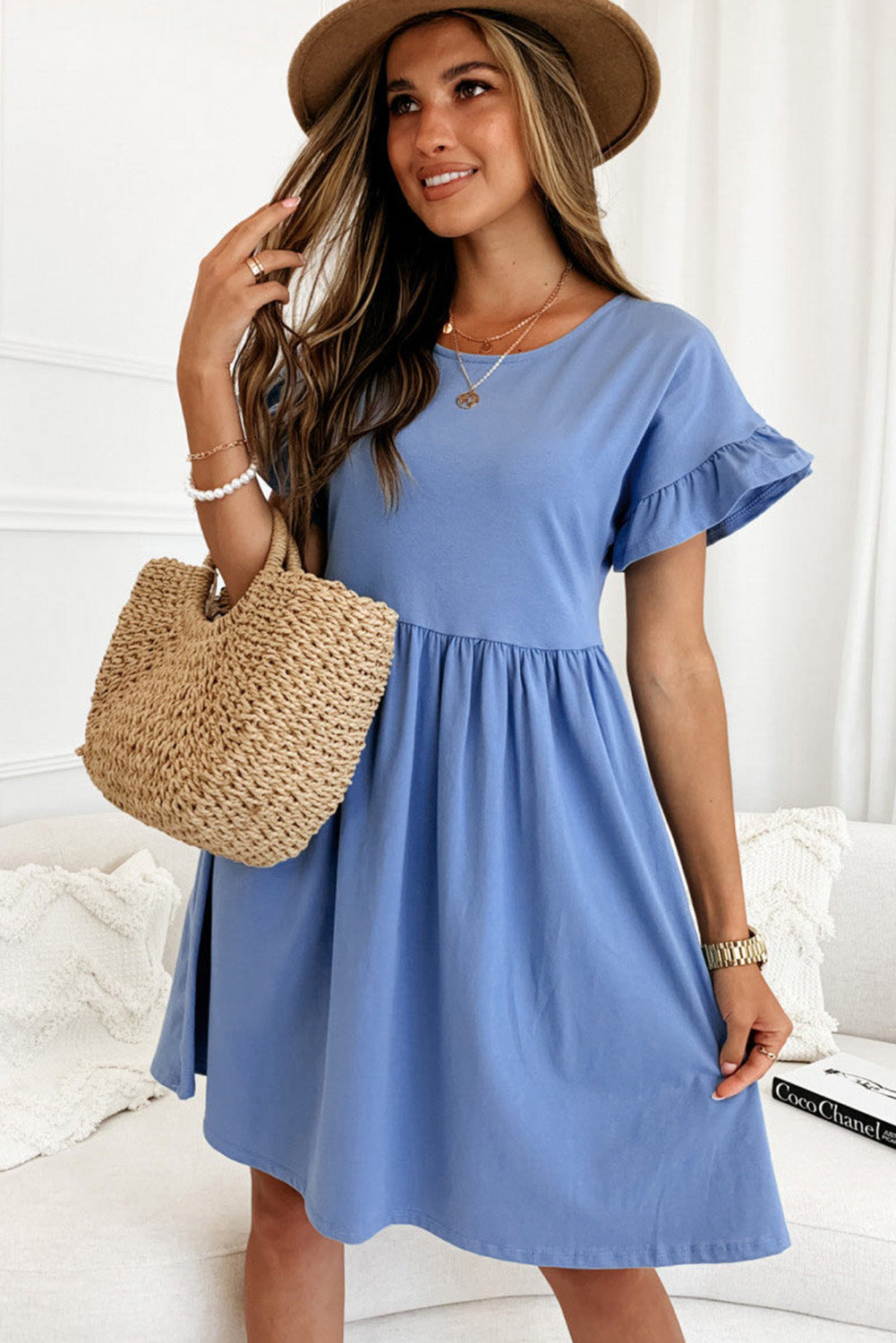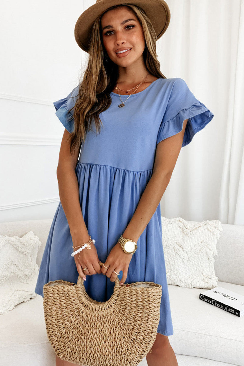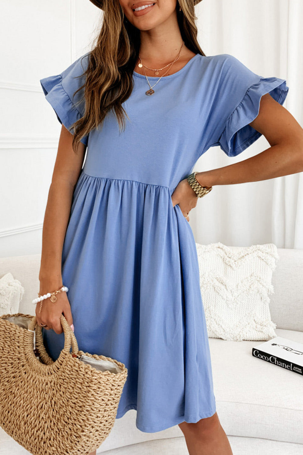 Sky Blue Round Neck Ruffle Sleeve Loose Dress