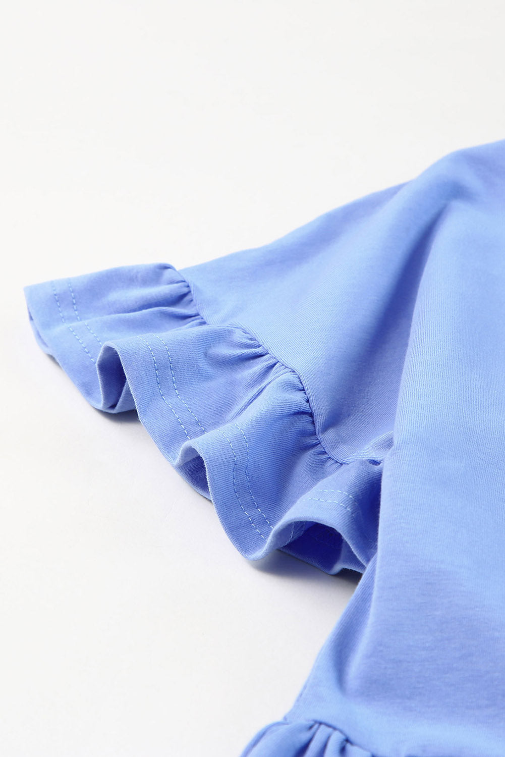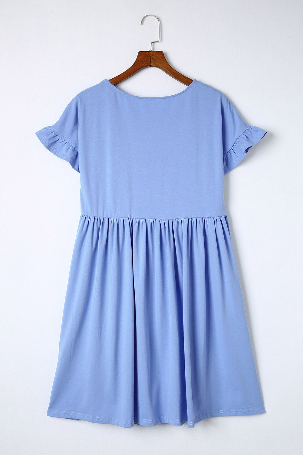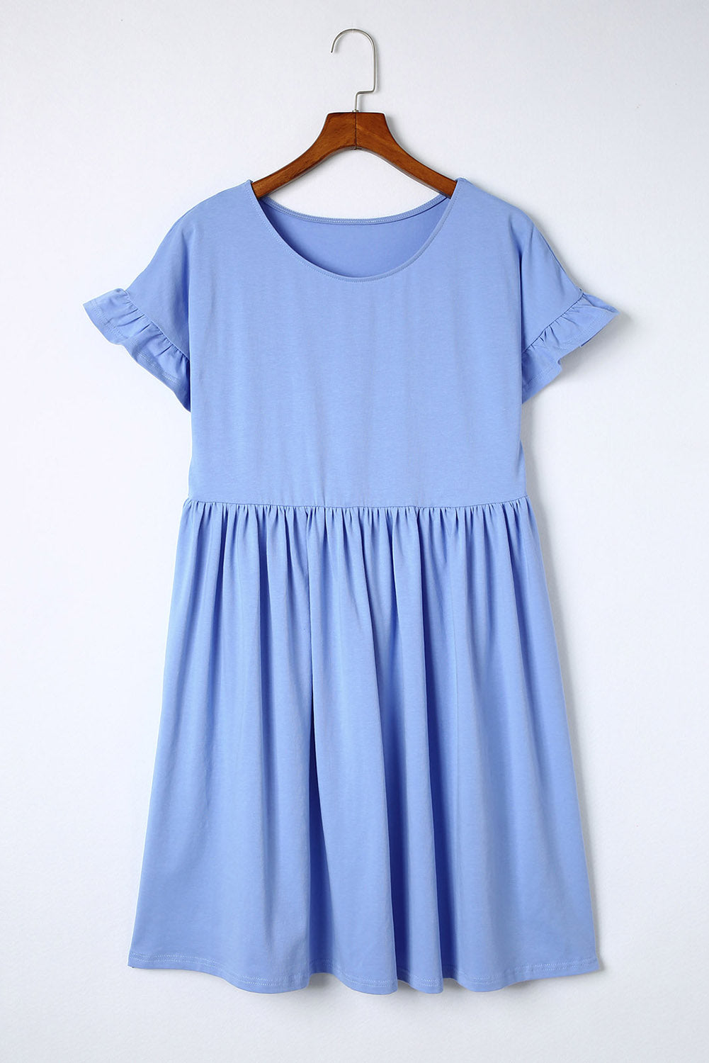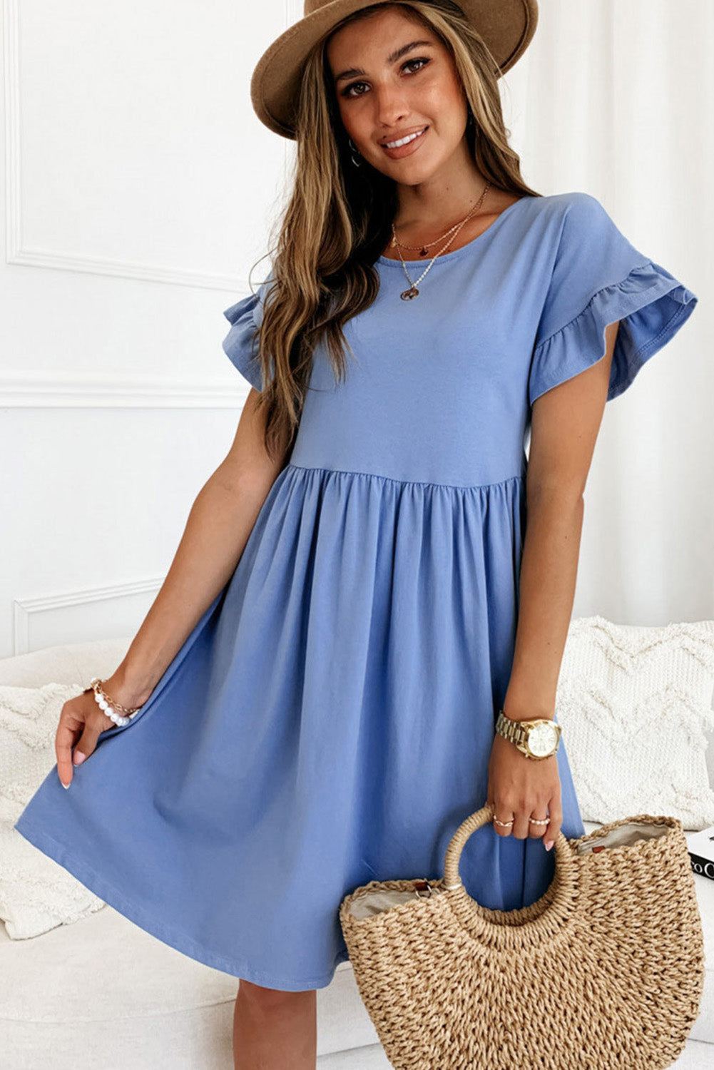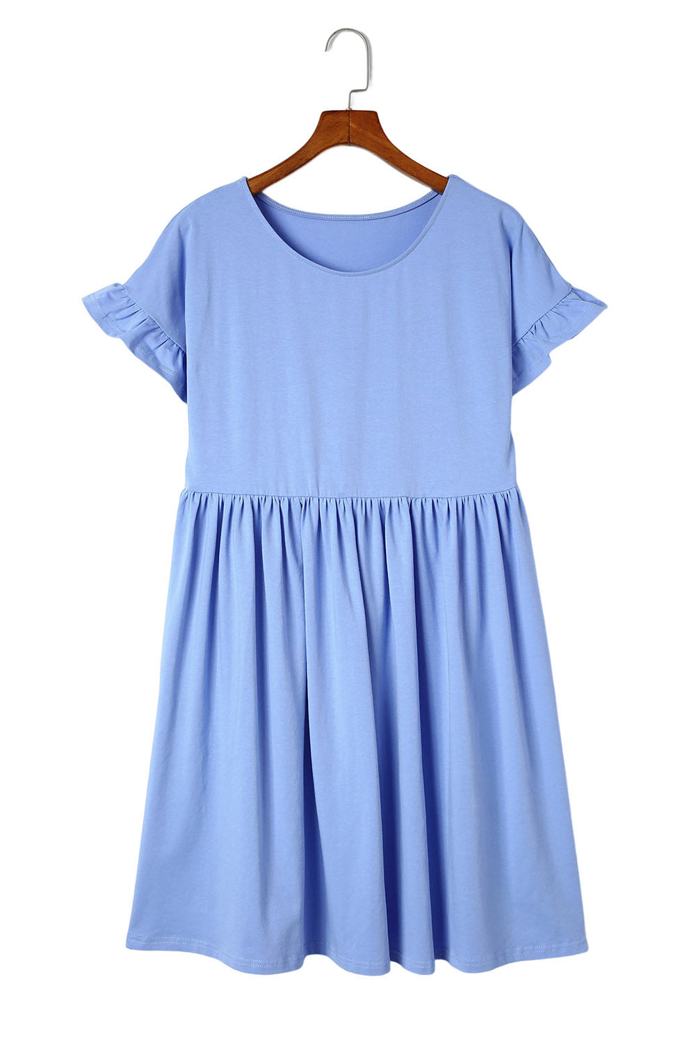 Sky Blue Round Neck Ruffle Sleeve Loose Dress