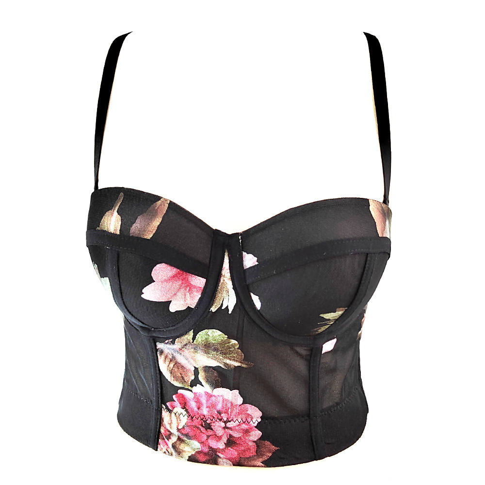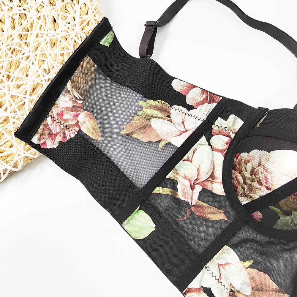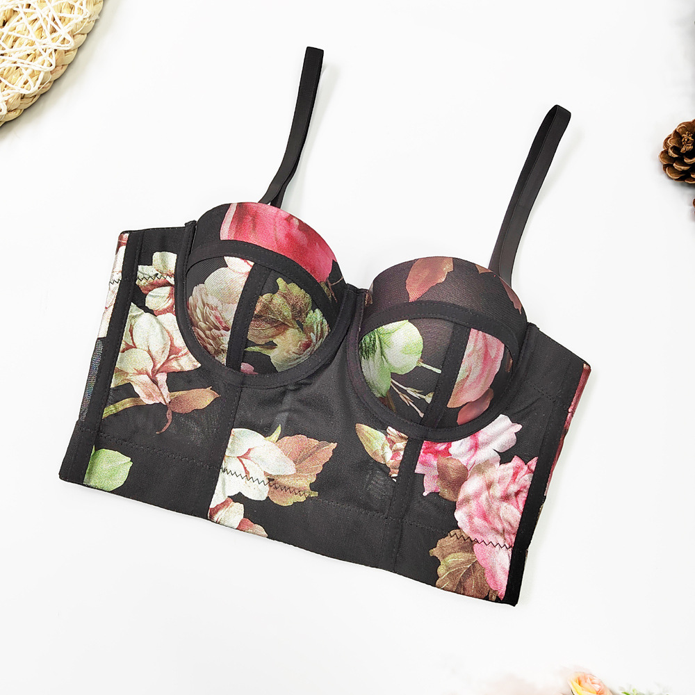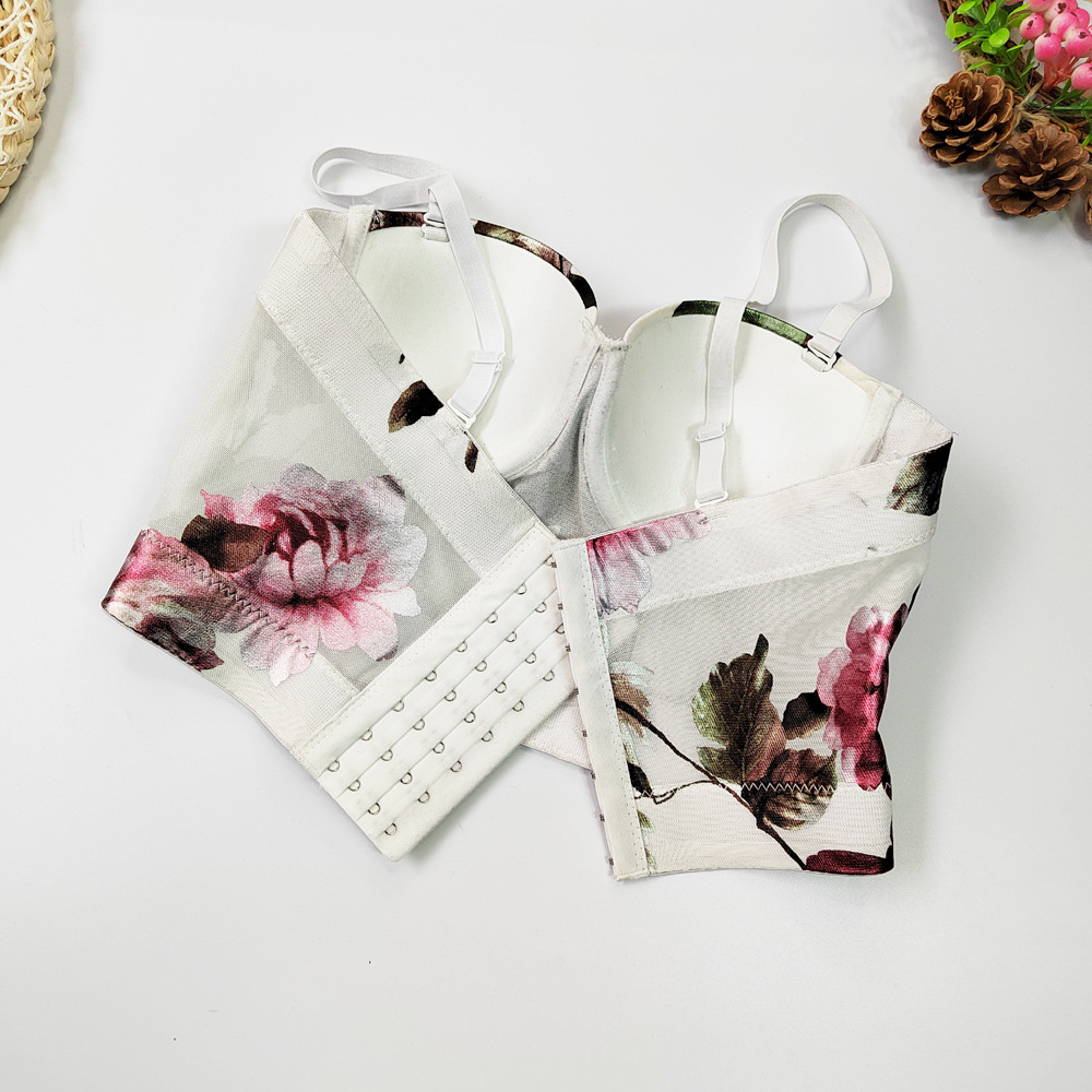 Spring Summer Net Yarn Floral Vest with Chest Pad Shaping Top Breathable Chest Support Slimming Sling Boning Corset Boning Corset Corset