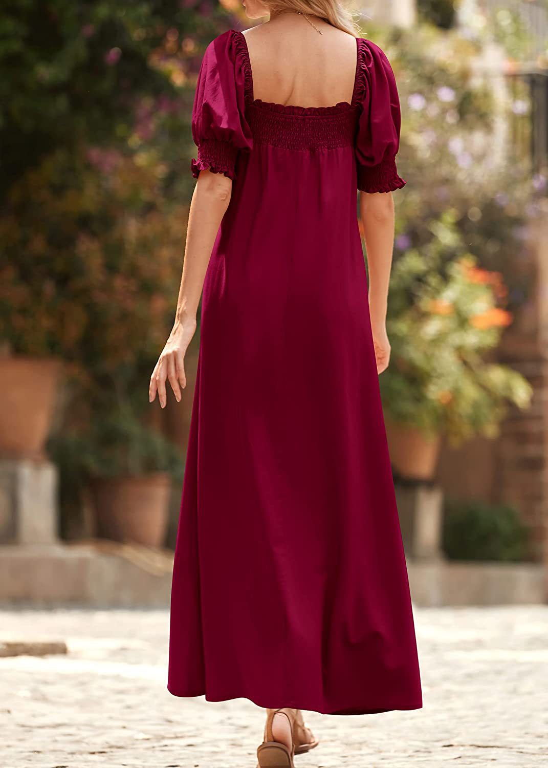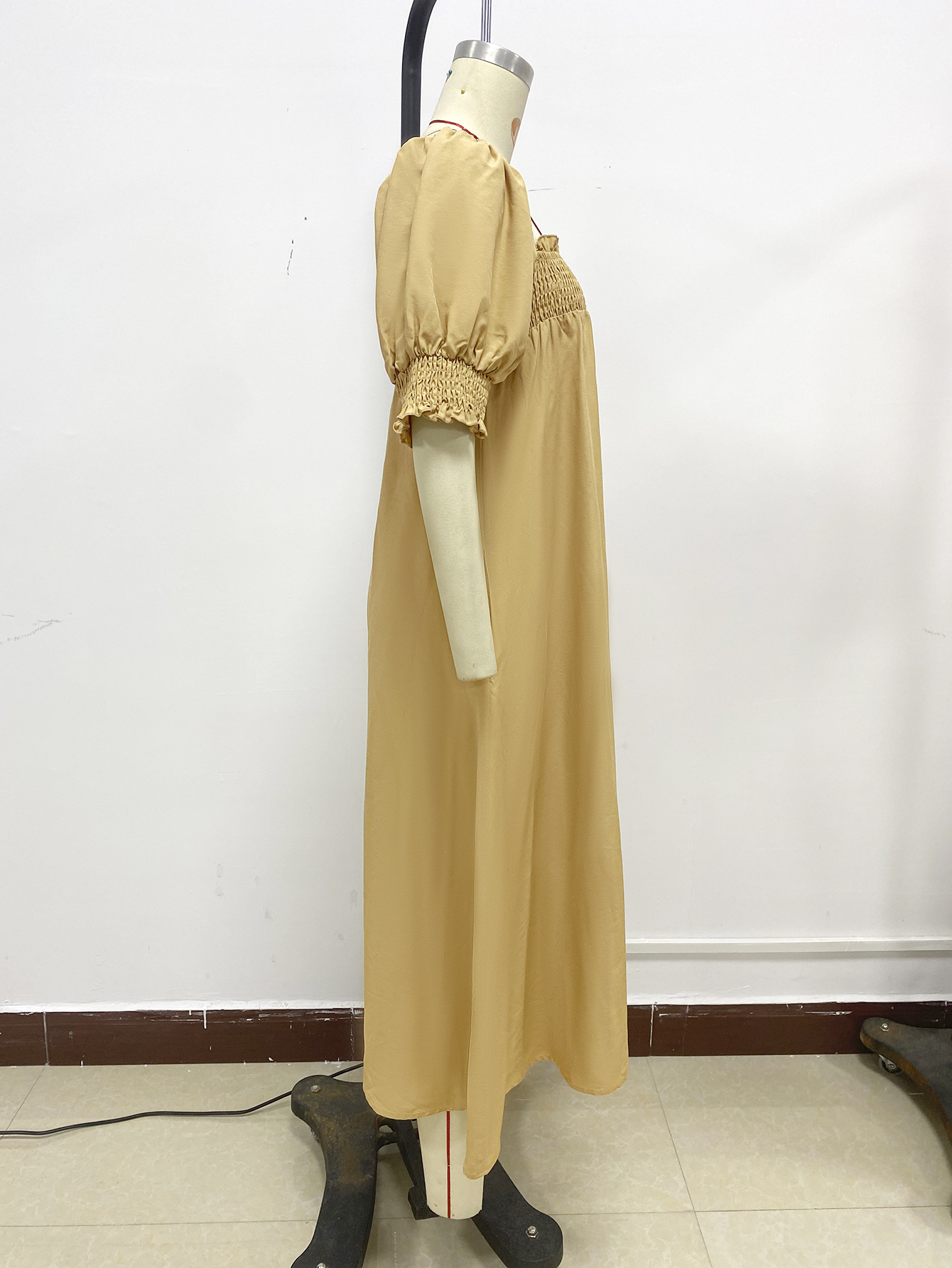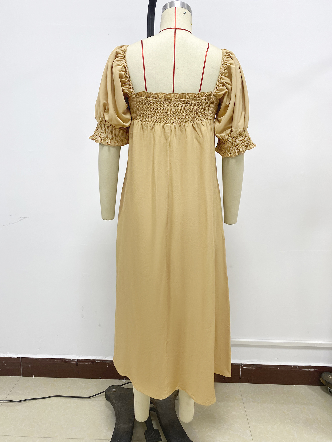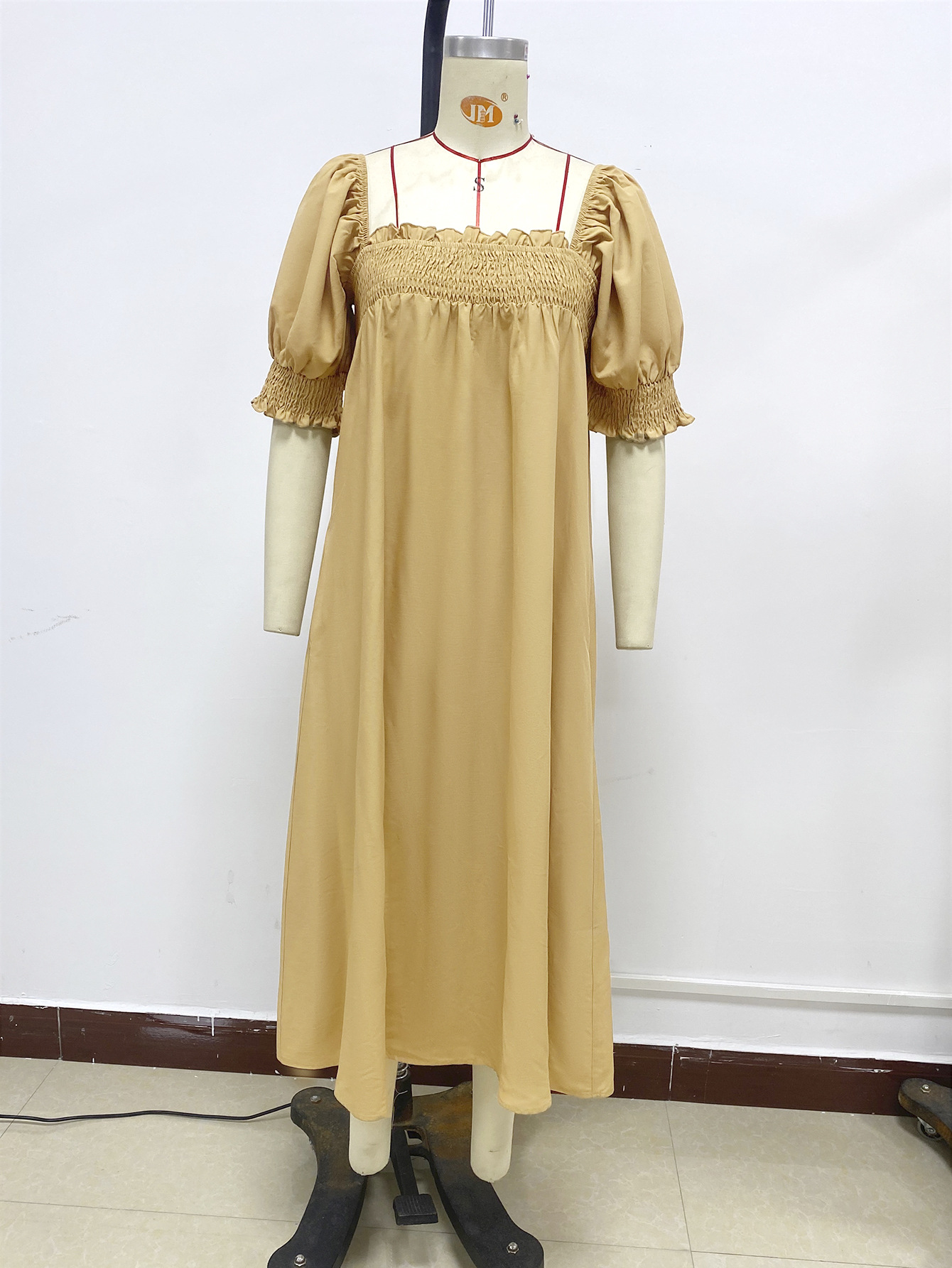 Spring Summer Puff Sleeve Square Collar Dress Solid Color Loose Casual Pocket Maxi Dress