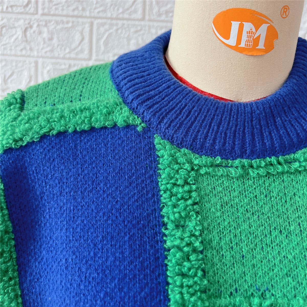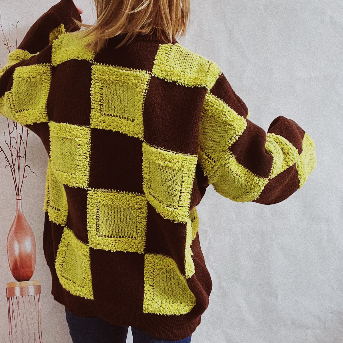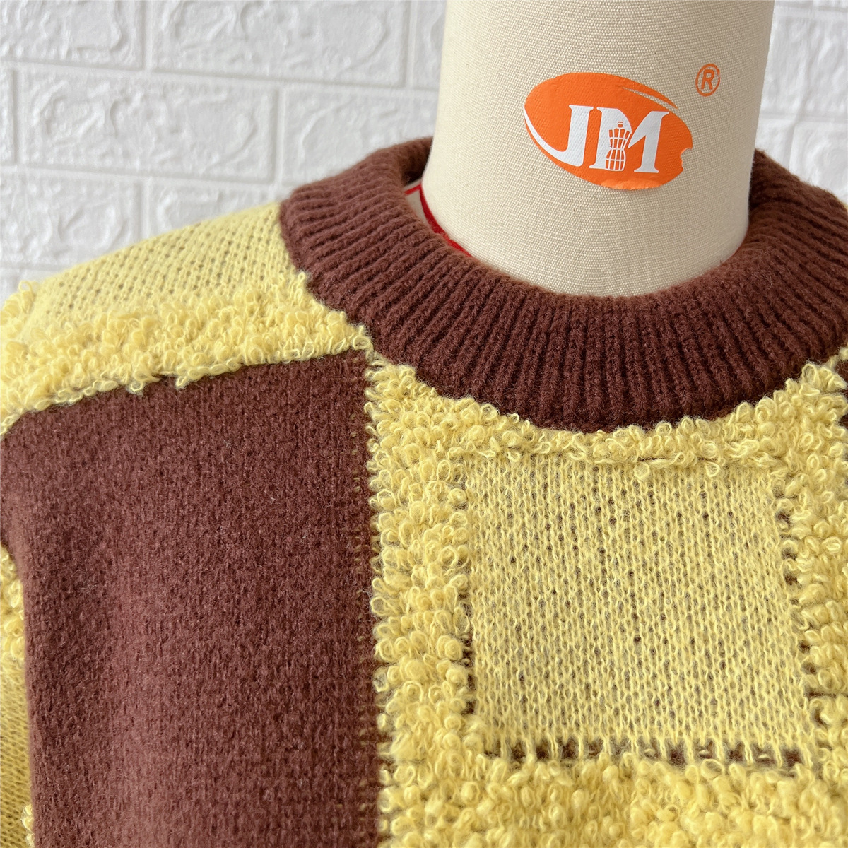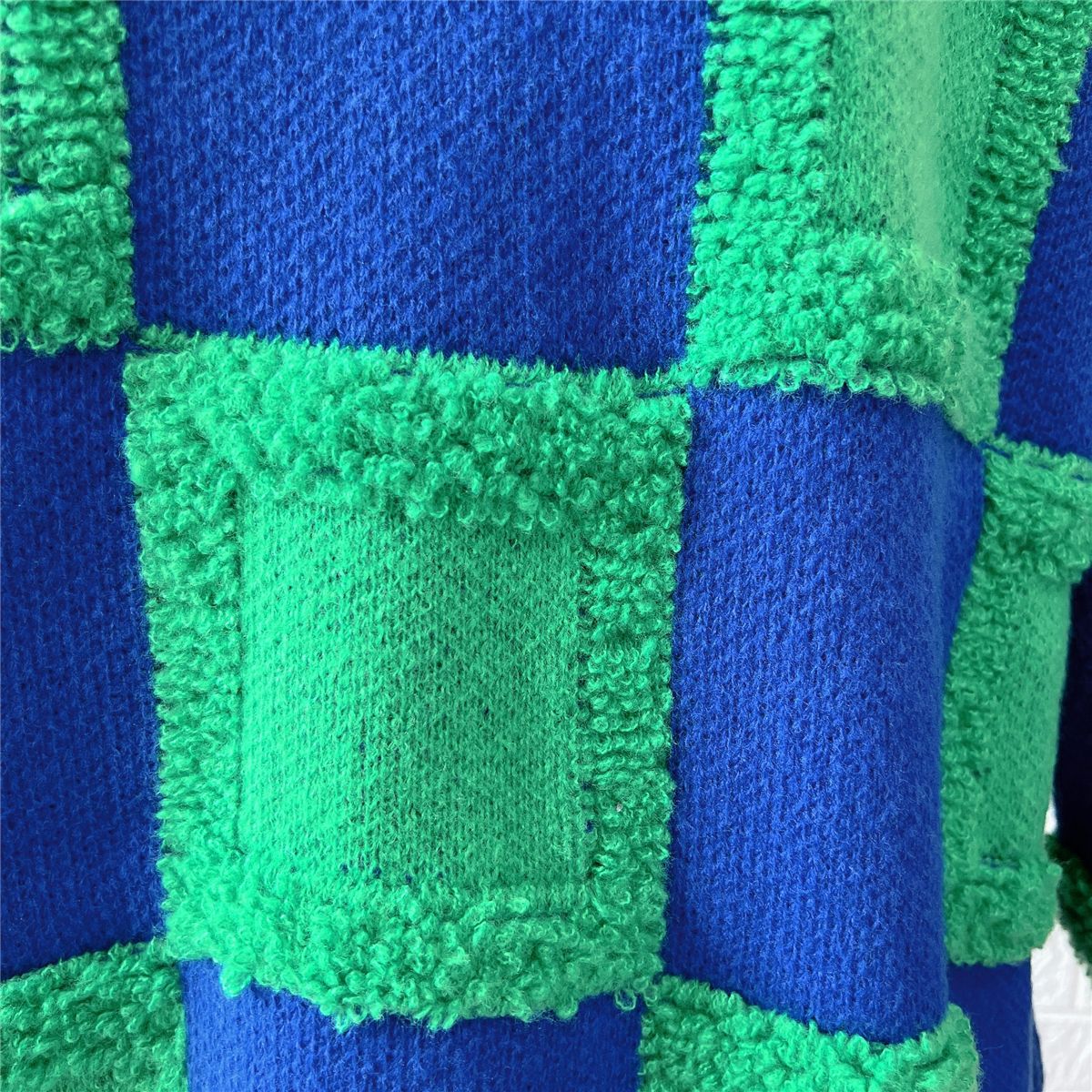Street Cool Loose Checkered Thick round Neck Long Sleeved Knitted Pullover Sweater Women