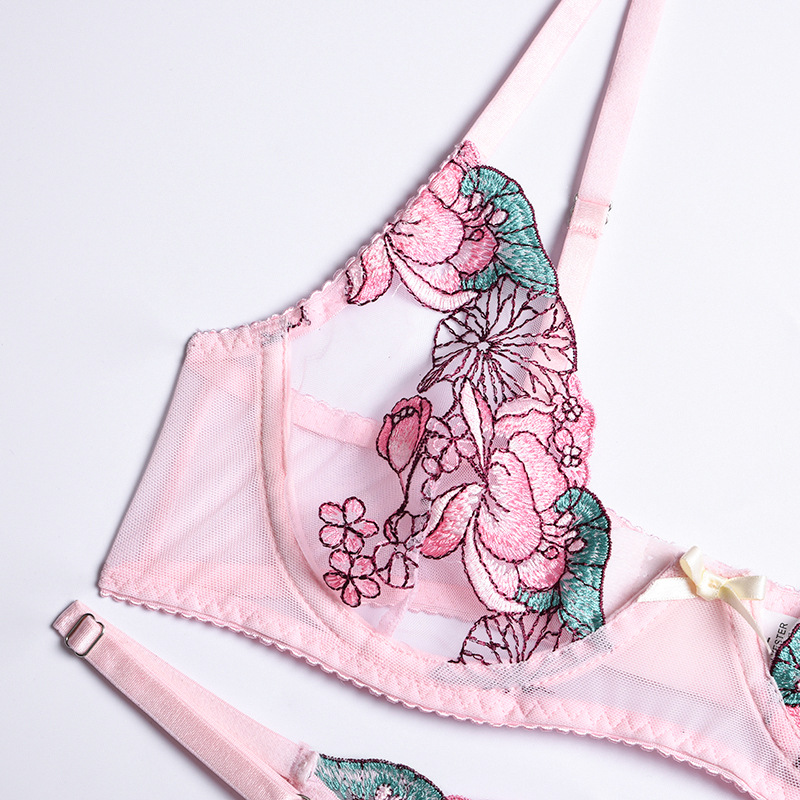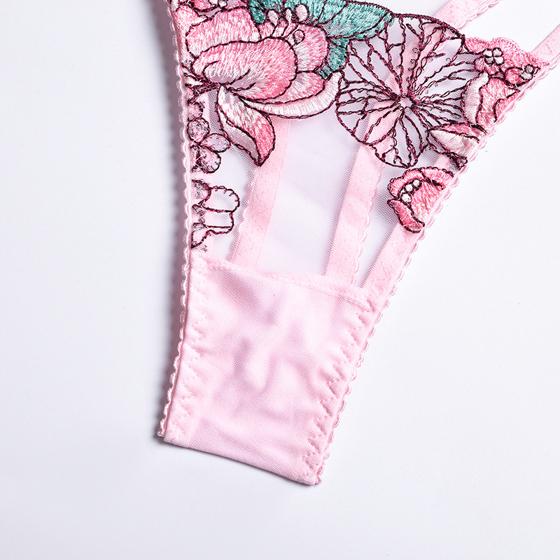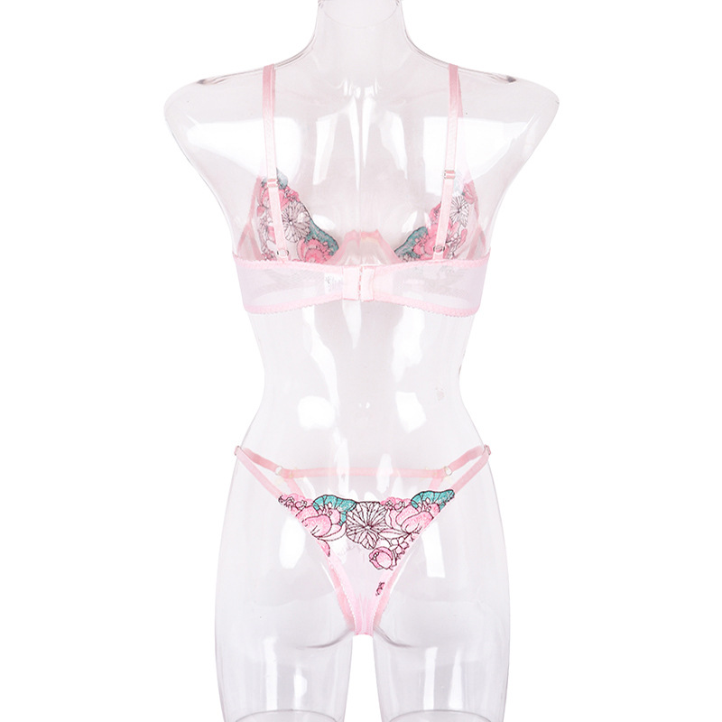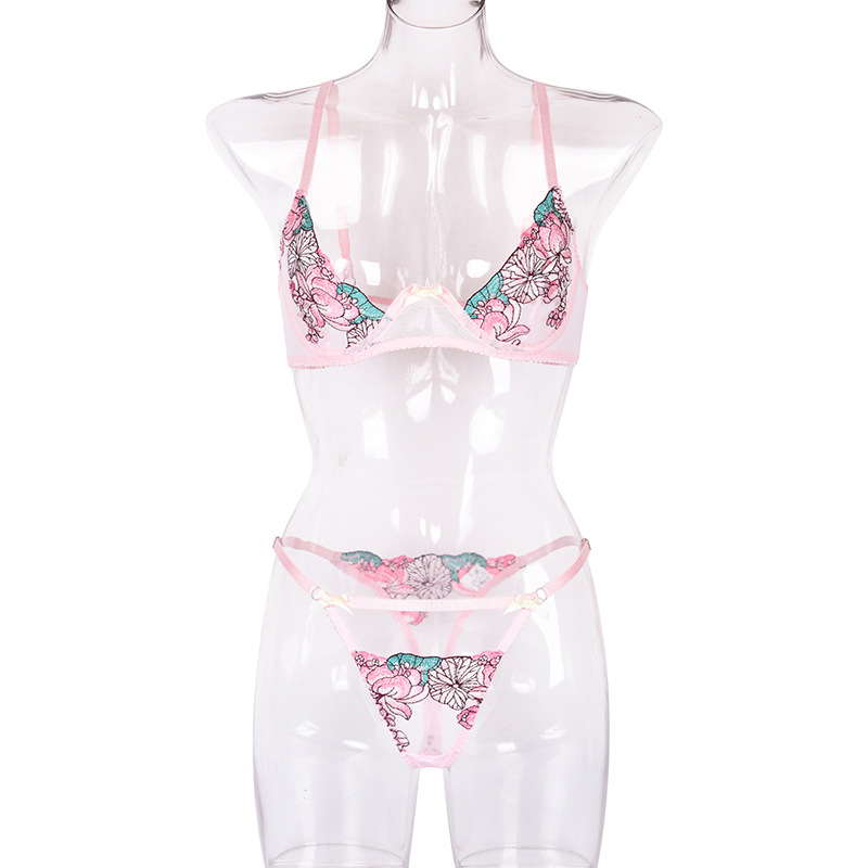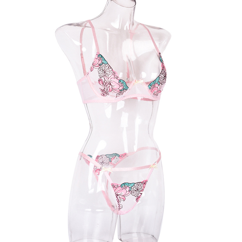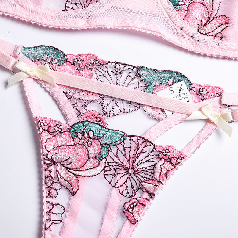Summer Arrival Women Clothes Lace Floral Border Mesh Embroidery Floral Sexy Underwear Two-Piece