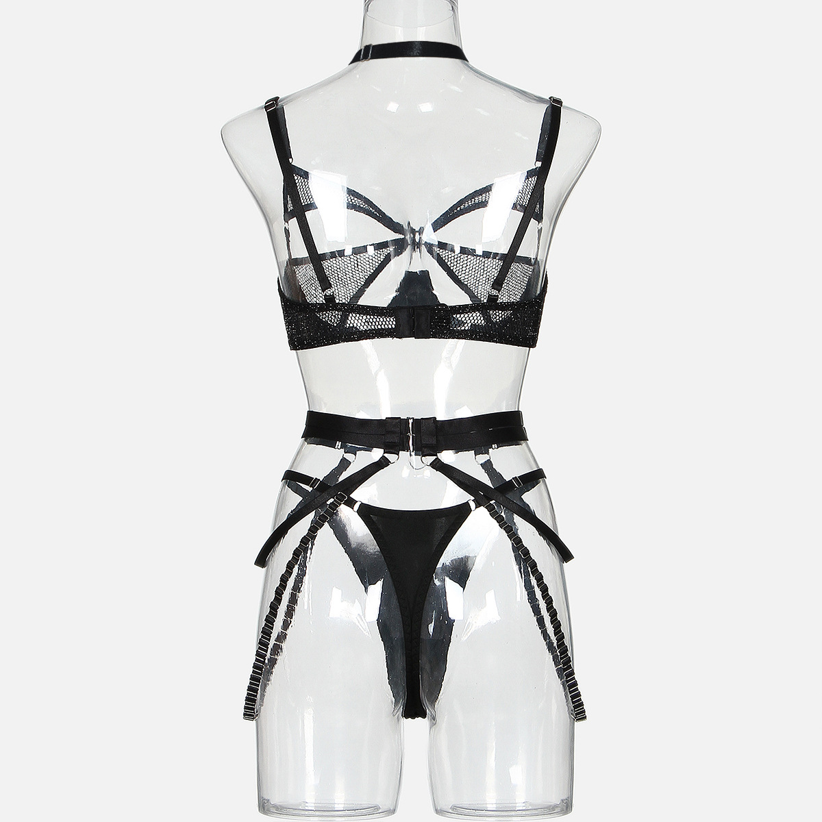 Increase quantity for Summer Bra Mesh Splicing Mesh Hollow Out Cutout Steel Ring Push up Sexy Underwear Four Piece Set