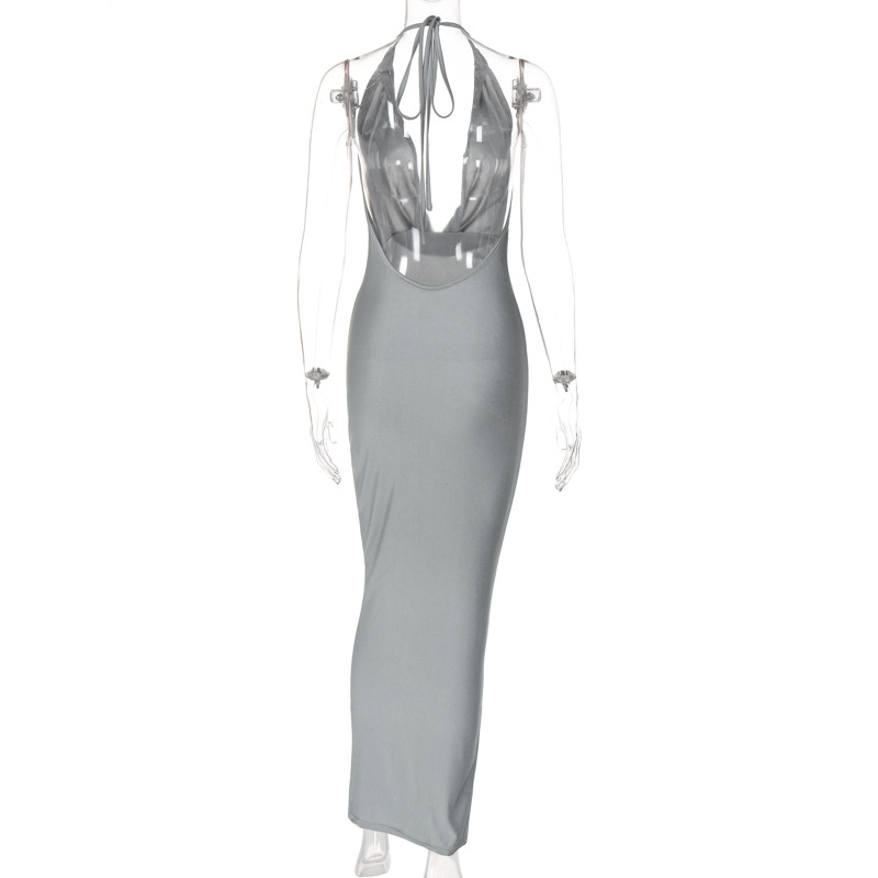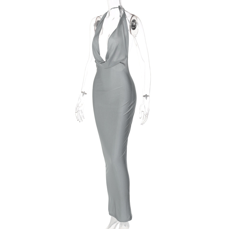Summer Elegant Sexy V neck Halter Backless Slim Sleeveless Dress