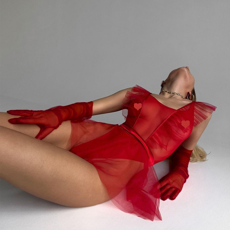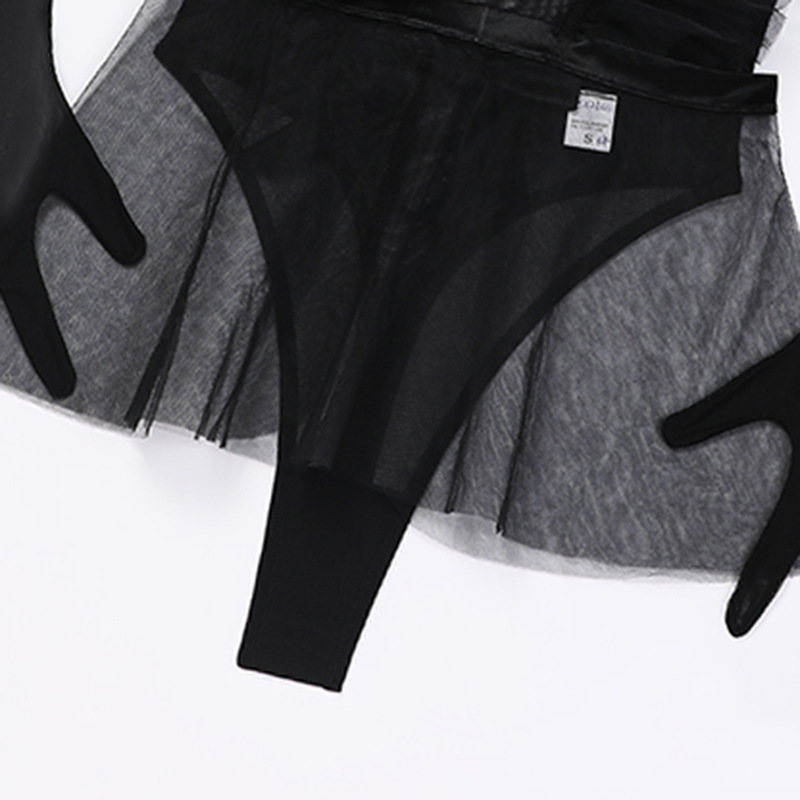 Summer Popular Sexy Mesh Jumpsuit Gloves Three Piece Set Women