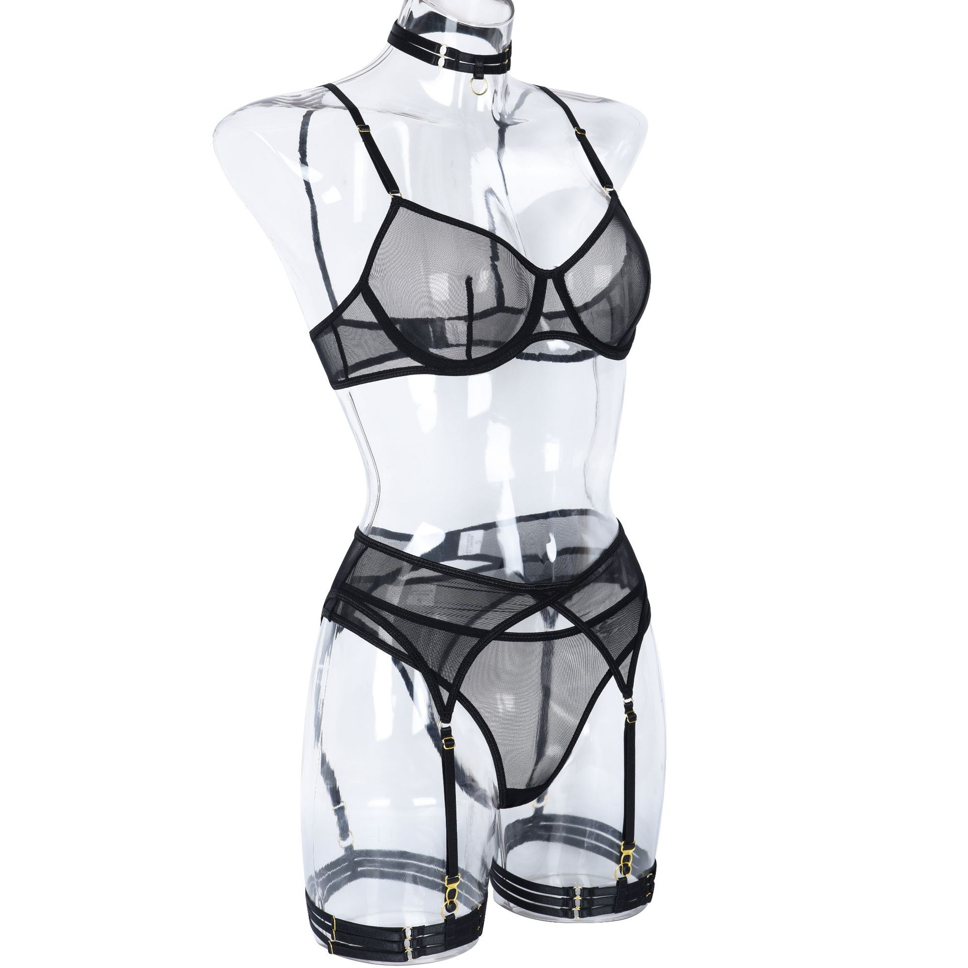Decrease quantity for Summer Women Clothing Sexy Underwear Mesh Comfortable Slimming Push up Four-Piece Set with Steel Ring