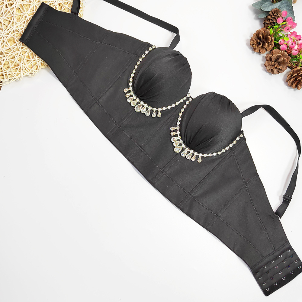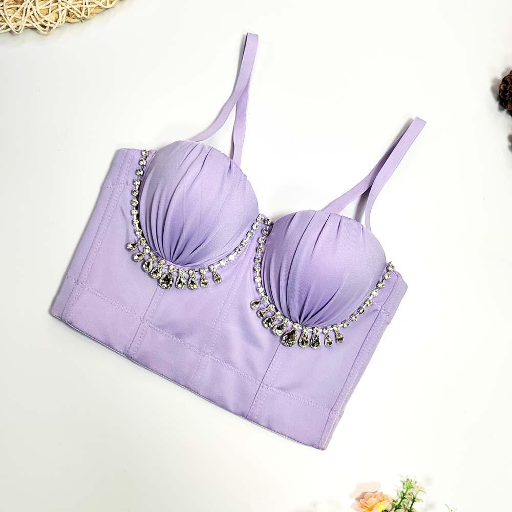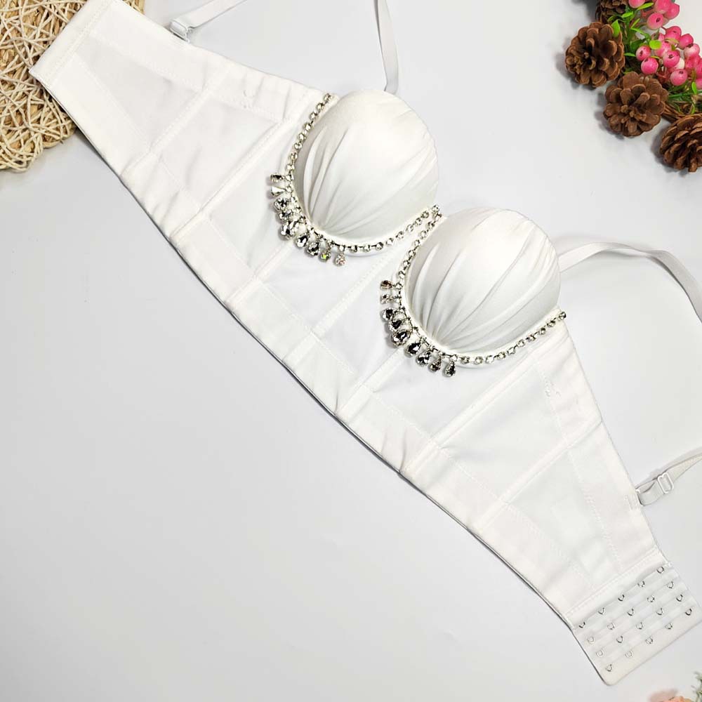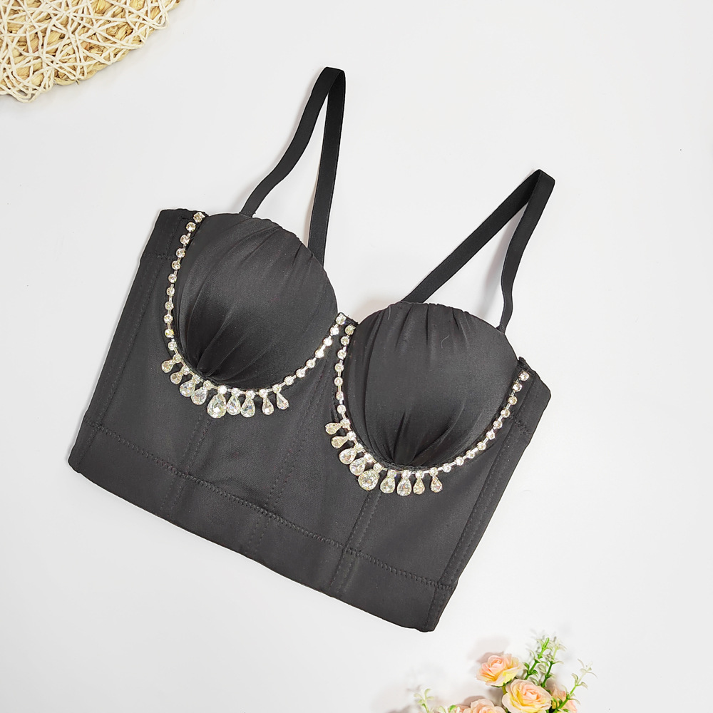 Decrease quantity for Sweet Fresh Pleated Suspender Vest Short Tight Stretch Shaping Bra Tube Top with Steel Ring Beaded Top