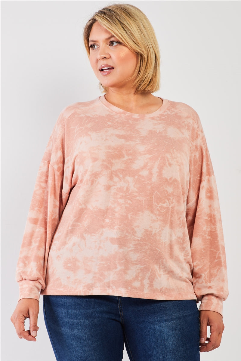 Plus Marsala Tie-dye Print Crew Neck Long Sleeve Loose Fit Sweatshirt