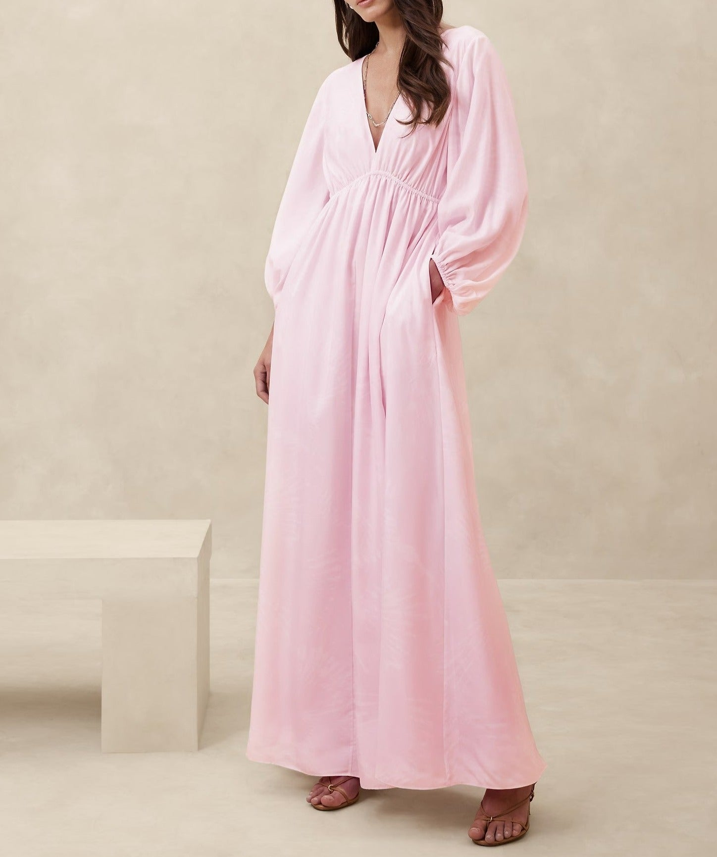 We cut this dramatic backless dress from luxurious mulberry silk habotai. revered for its beautiful softness and understated shine. This special fabric is also sandwashed. a special finish that adds an almost velvet-like handfeel.
