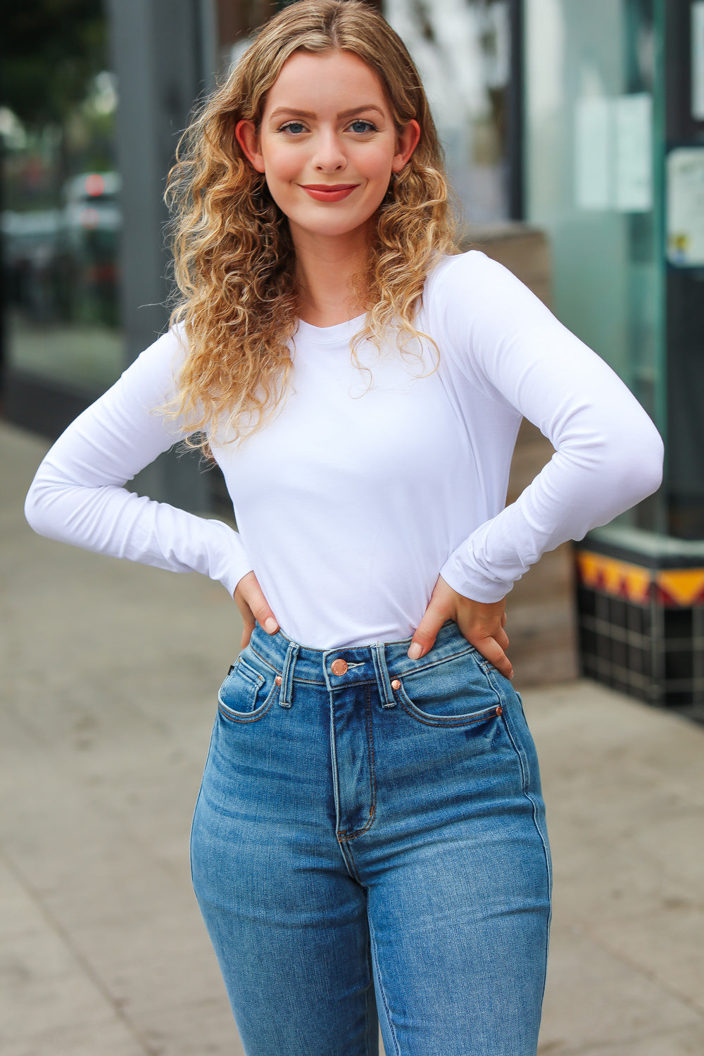 Simple Solutions White Cotton Crew Neck Long Sleeve T-Shirt