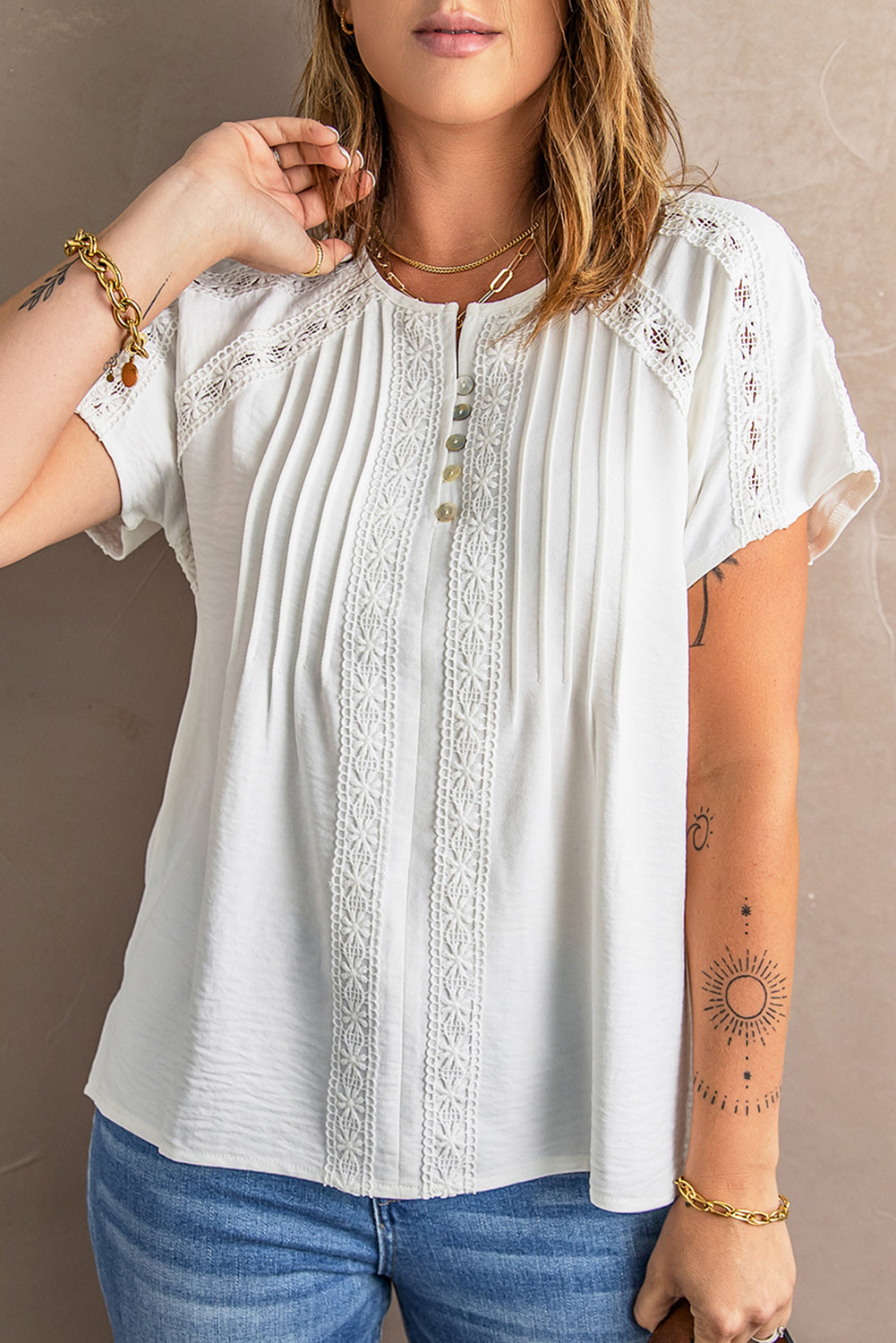 •This short sleeve blouse goes well with shorts. jeans and skirts