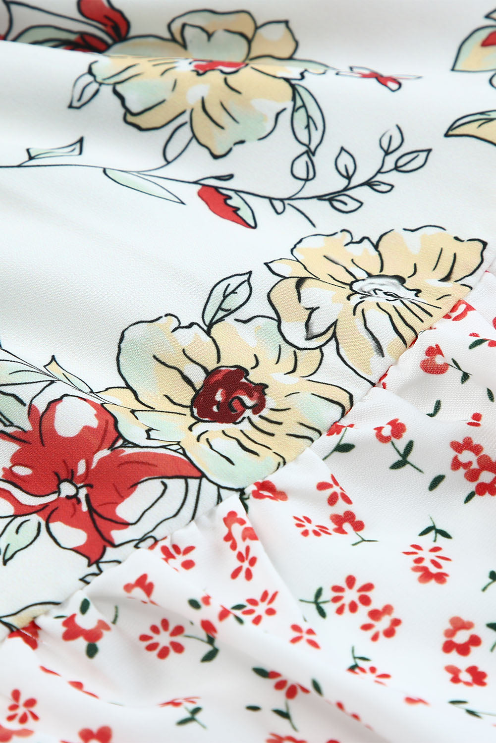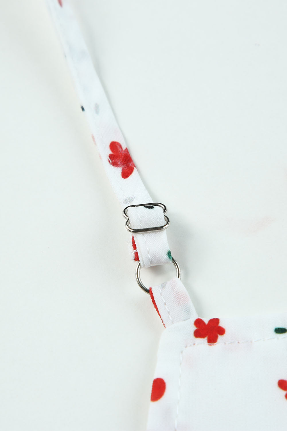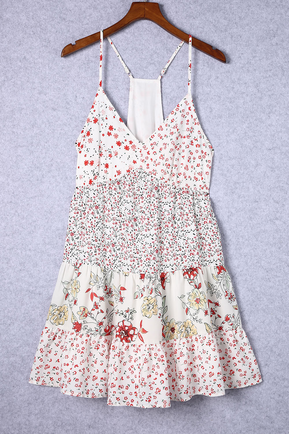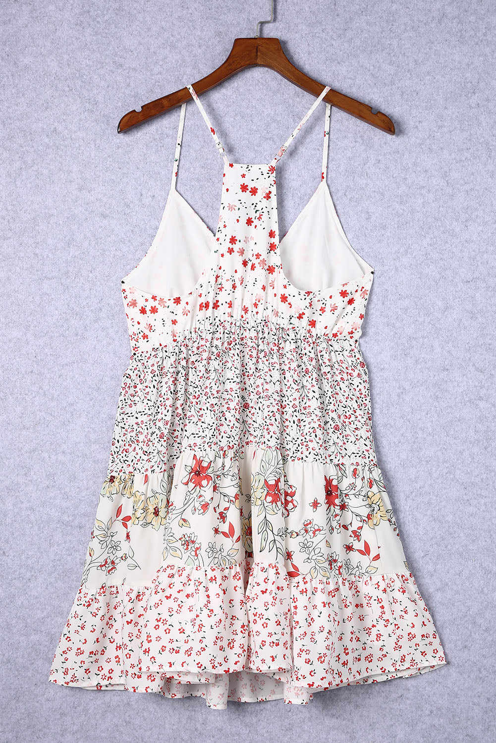 White Floral Ruffled Spaghetti Strap Mini Dress
