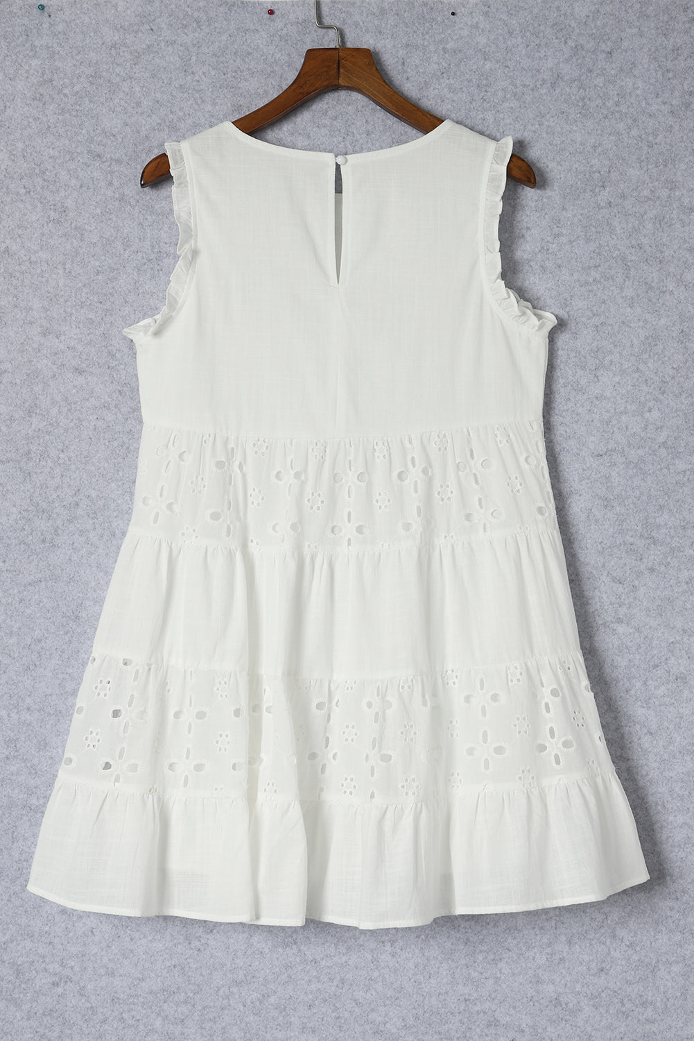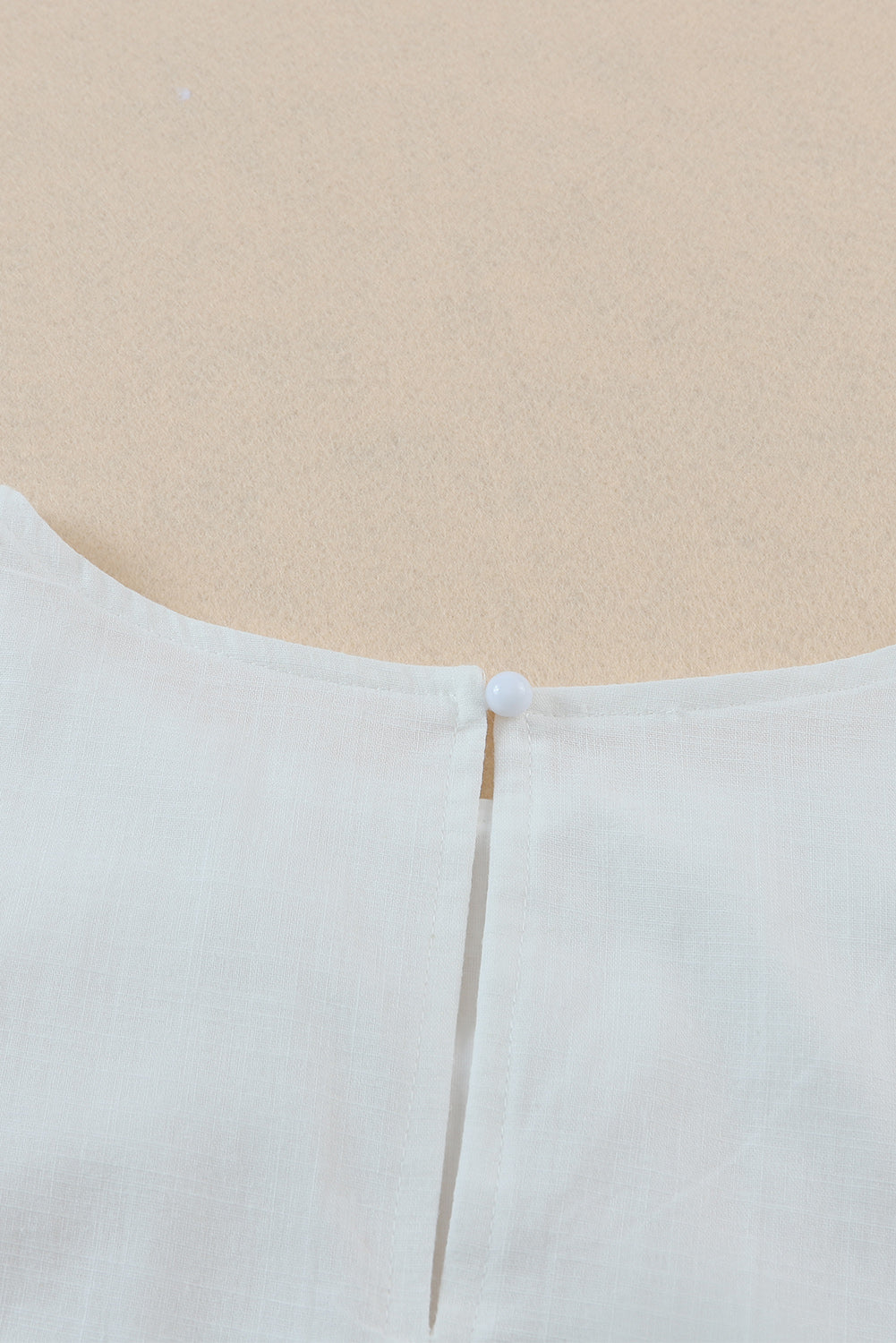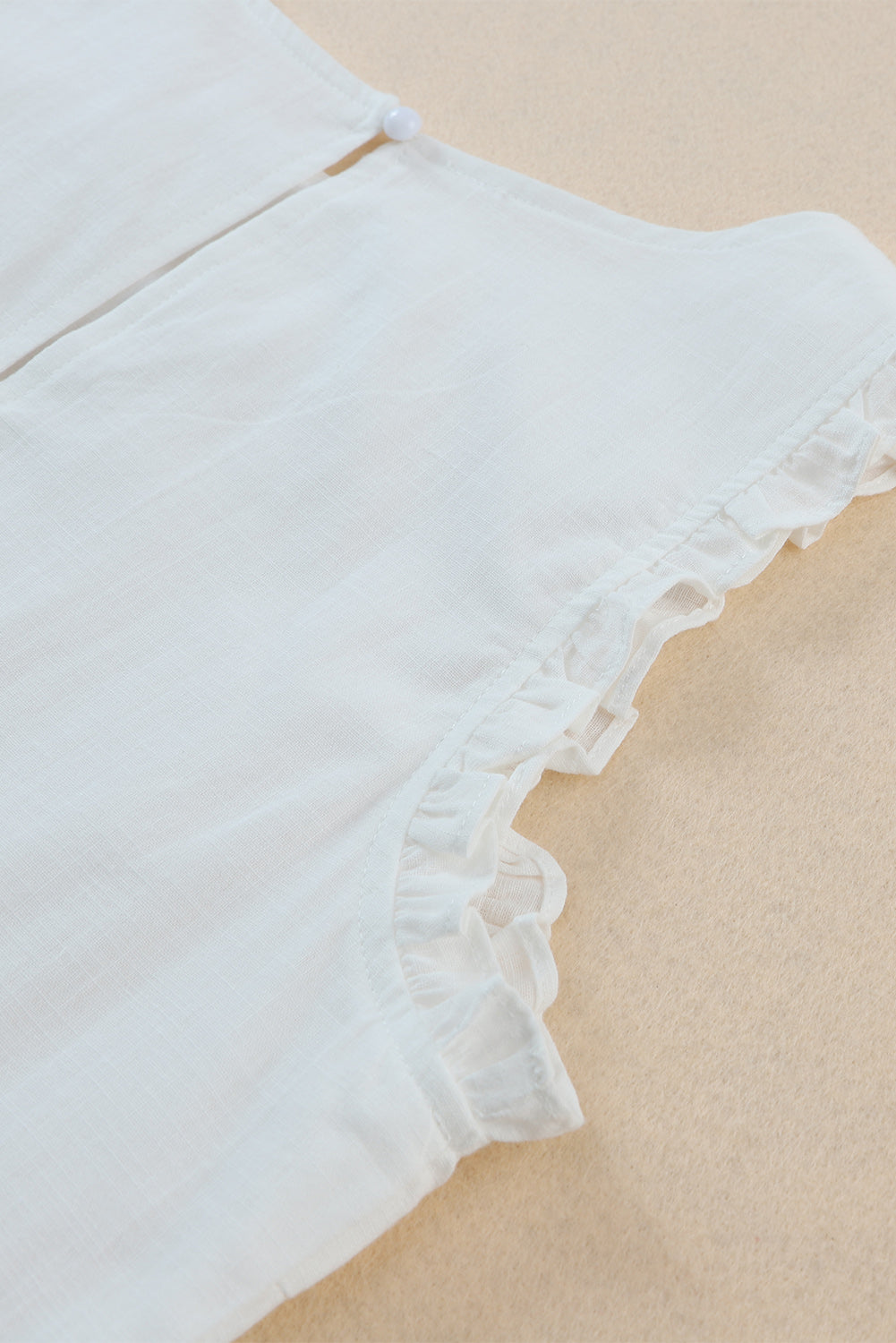 • It features a crew neck. sleeveless. sophisticated frill trim. and soft fabric