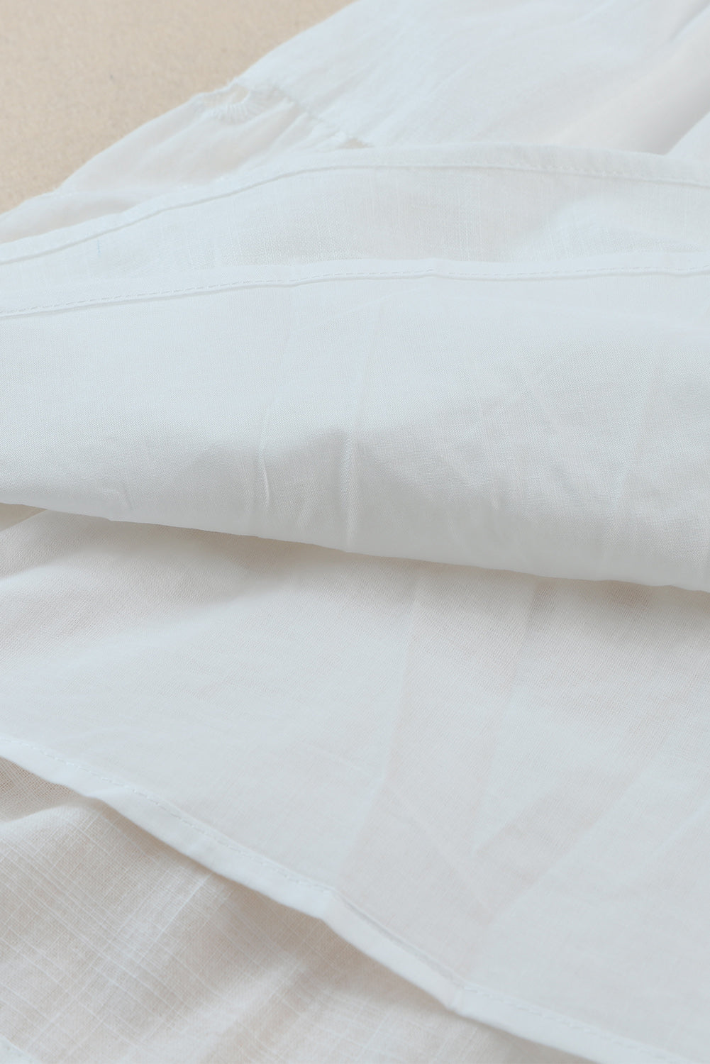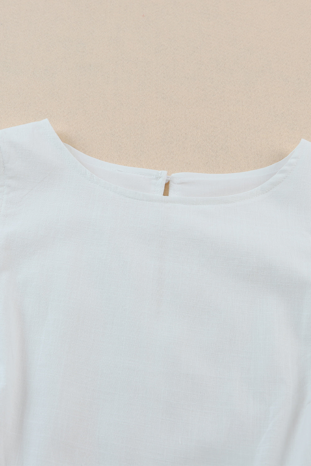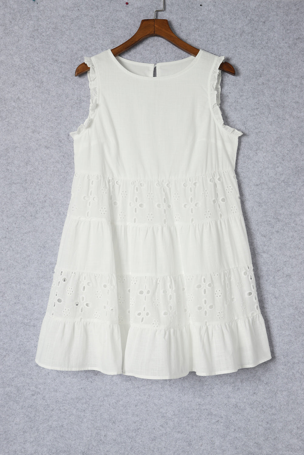 • It features a crew neck. sleeveless. sophisticated frill trim. and soft fabric
