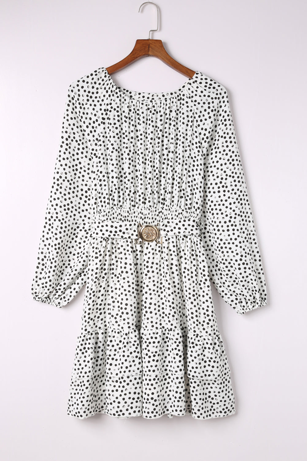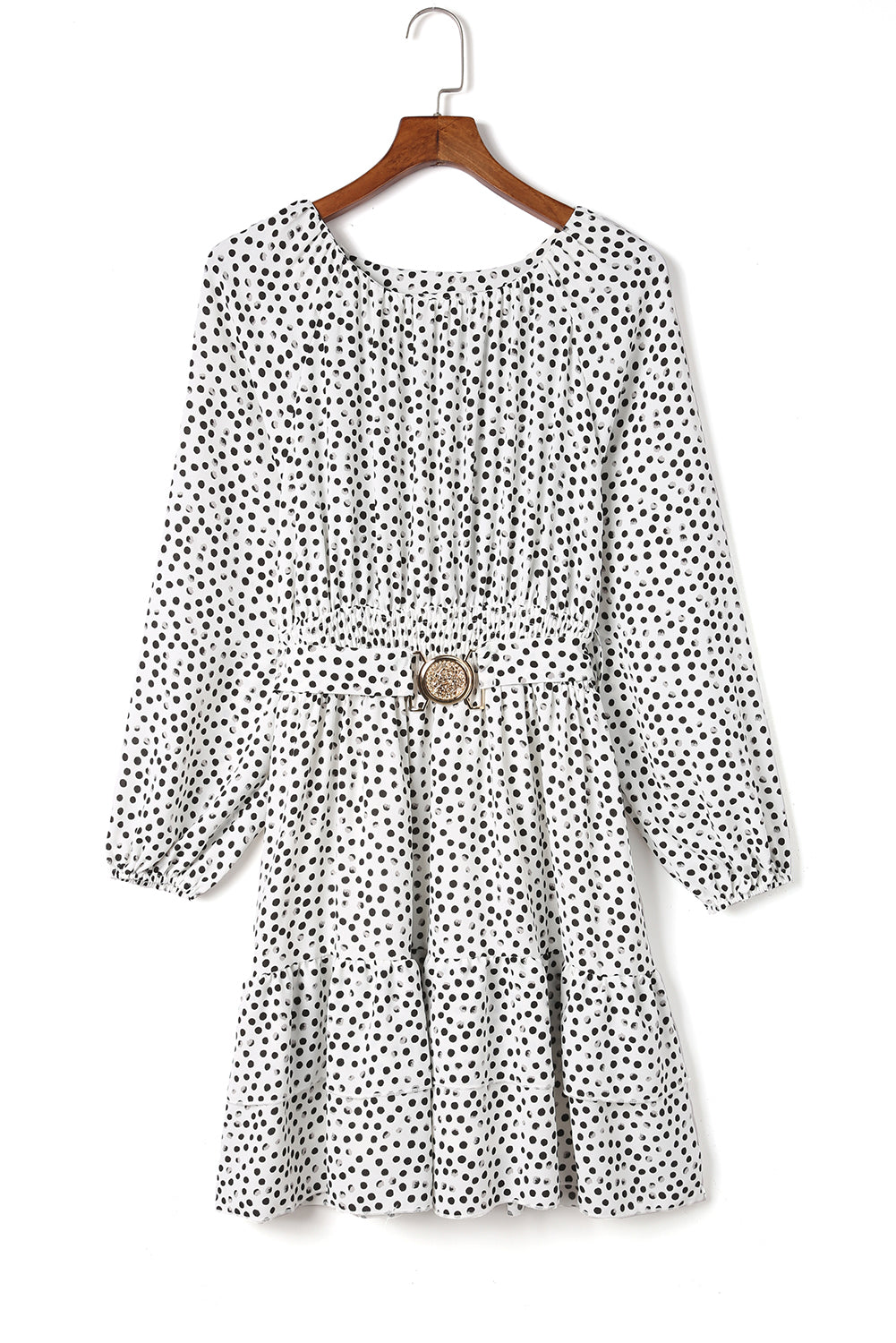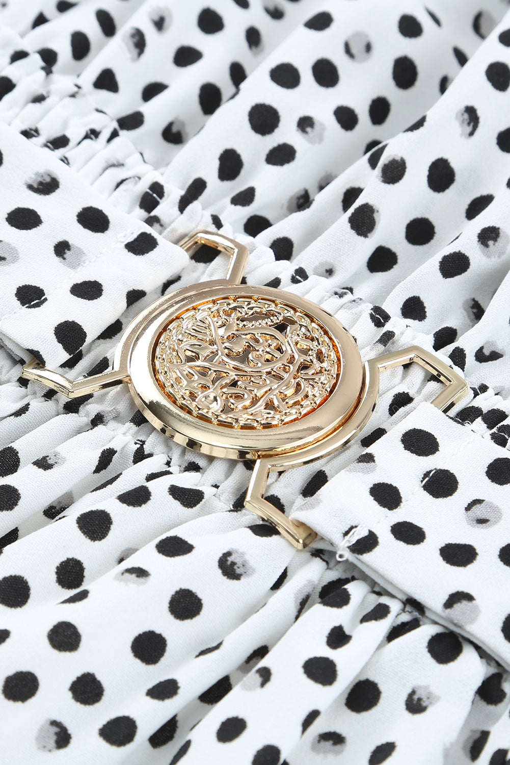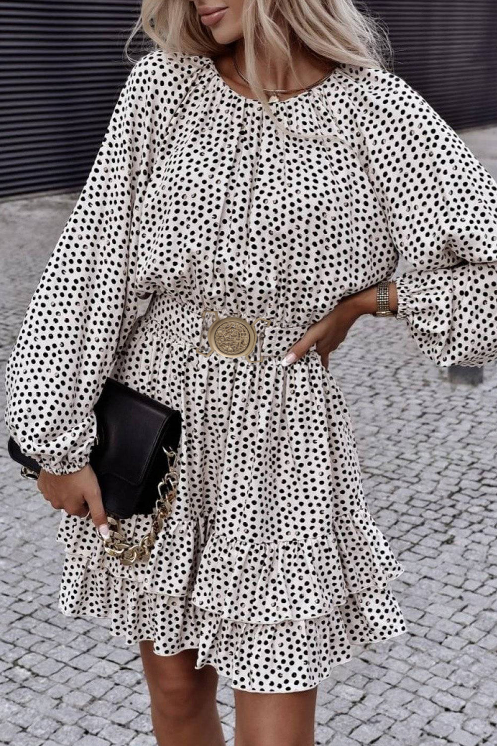 • Classic round neck.graceful bubble sleeves. double layered ruffled hemline