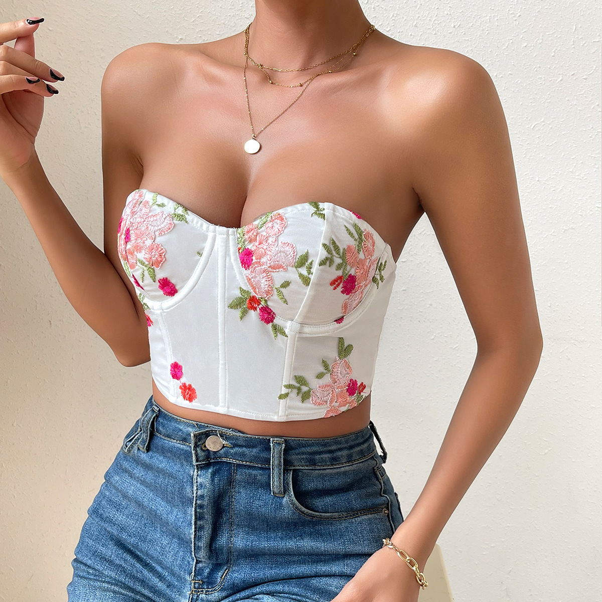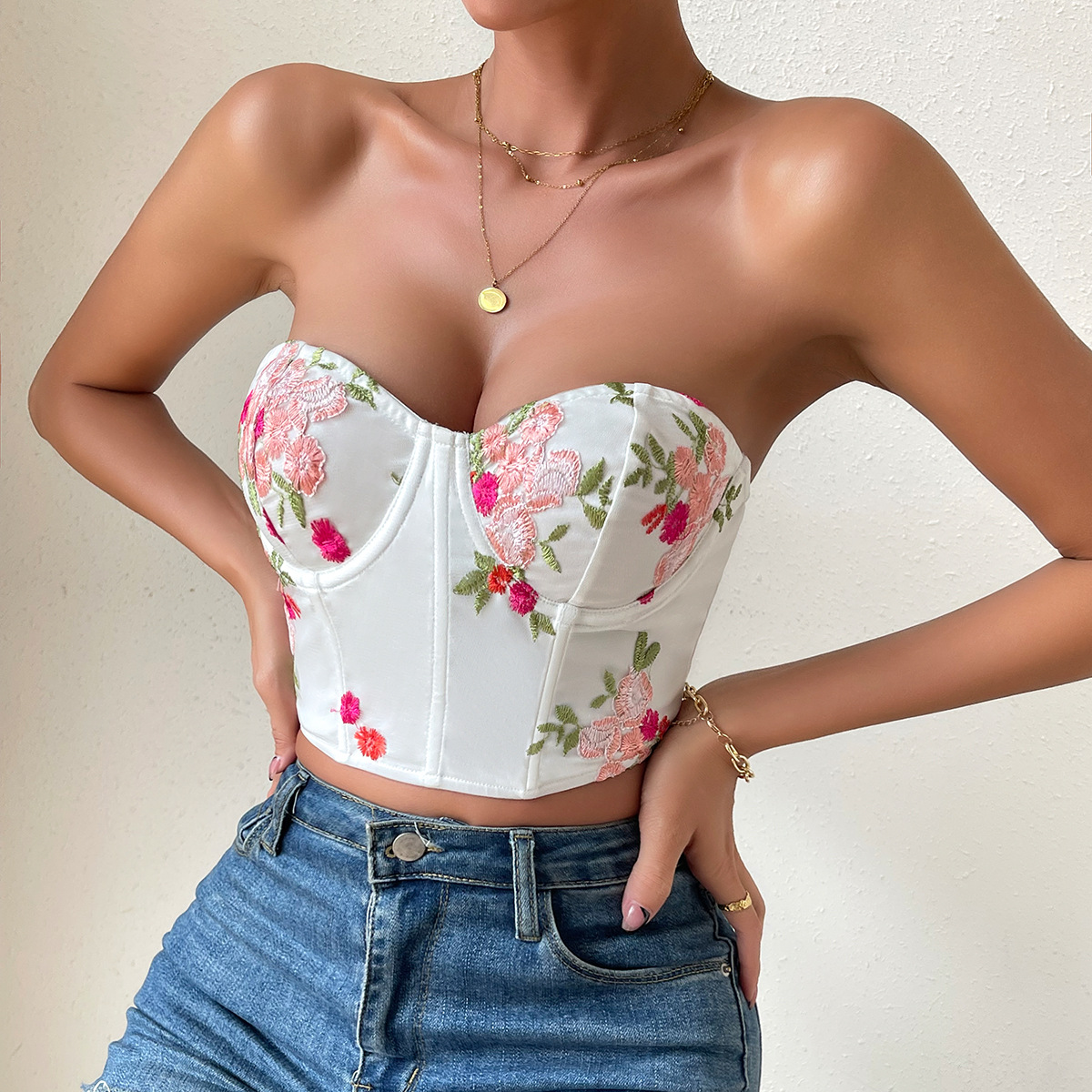 Women Sexy Low Cut Sexy Embroidery Short Top Steel Ring Boning Corset Bone Clothes